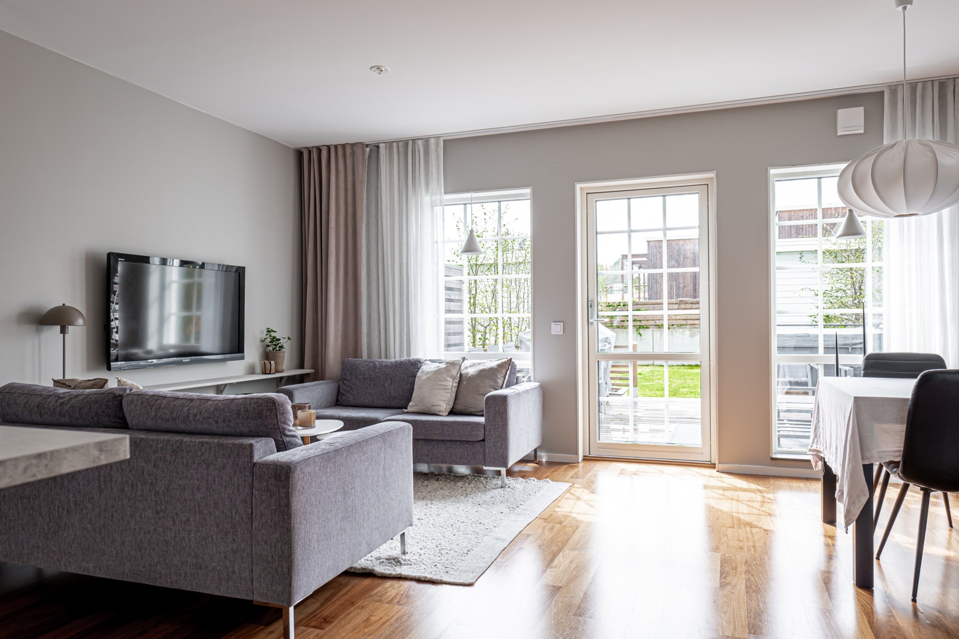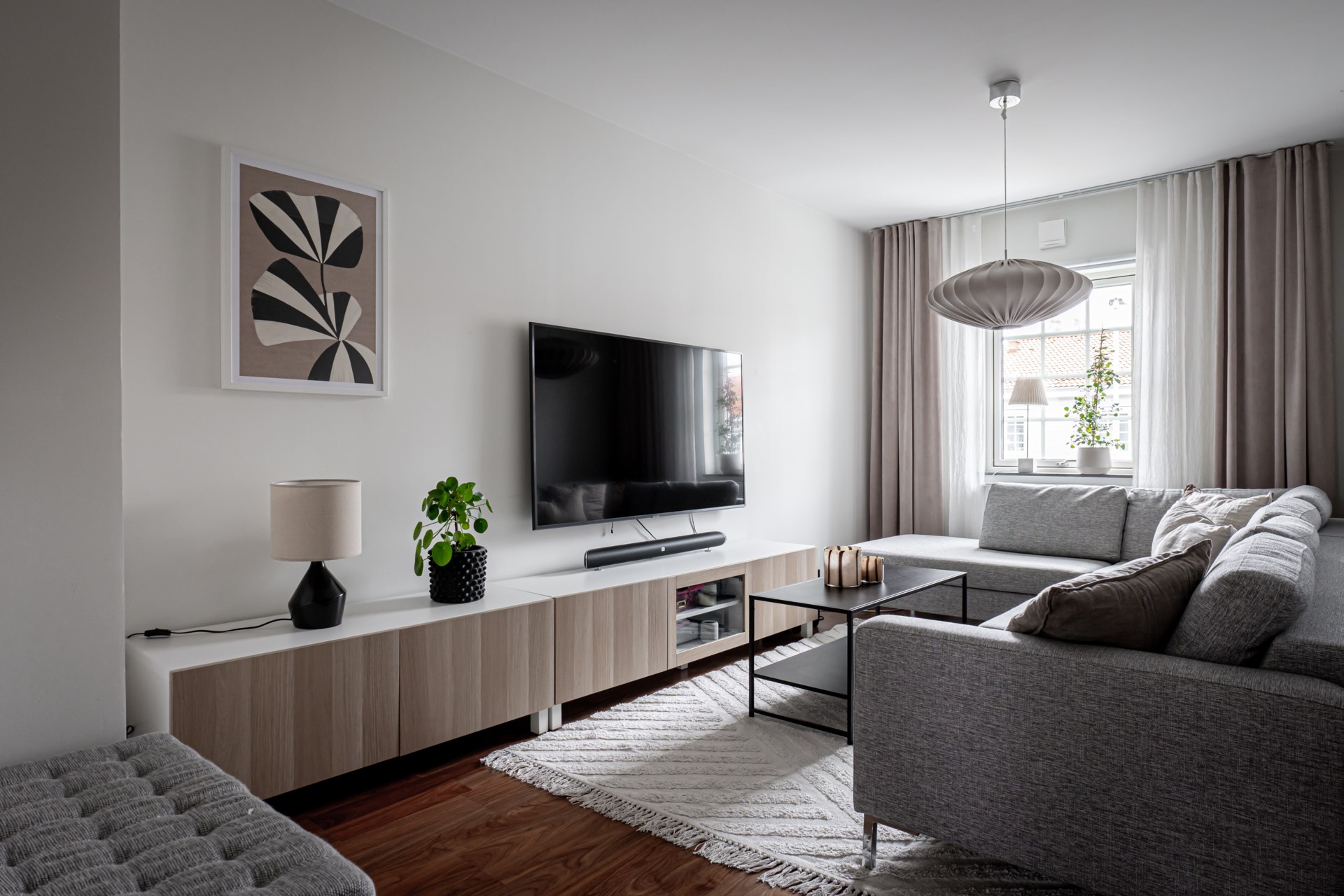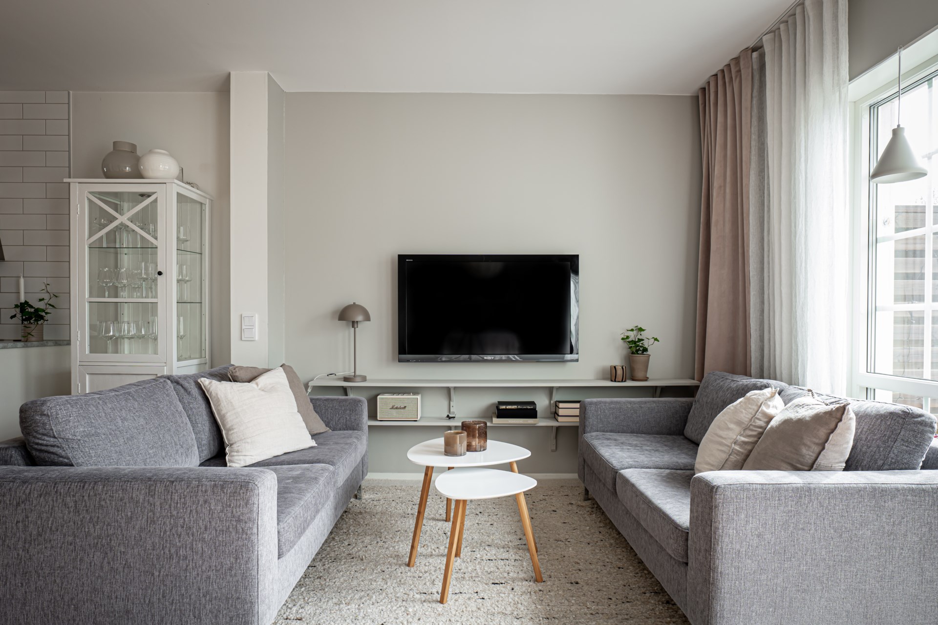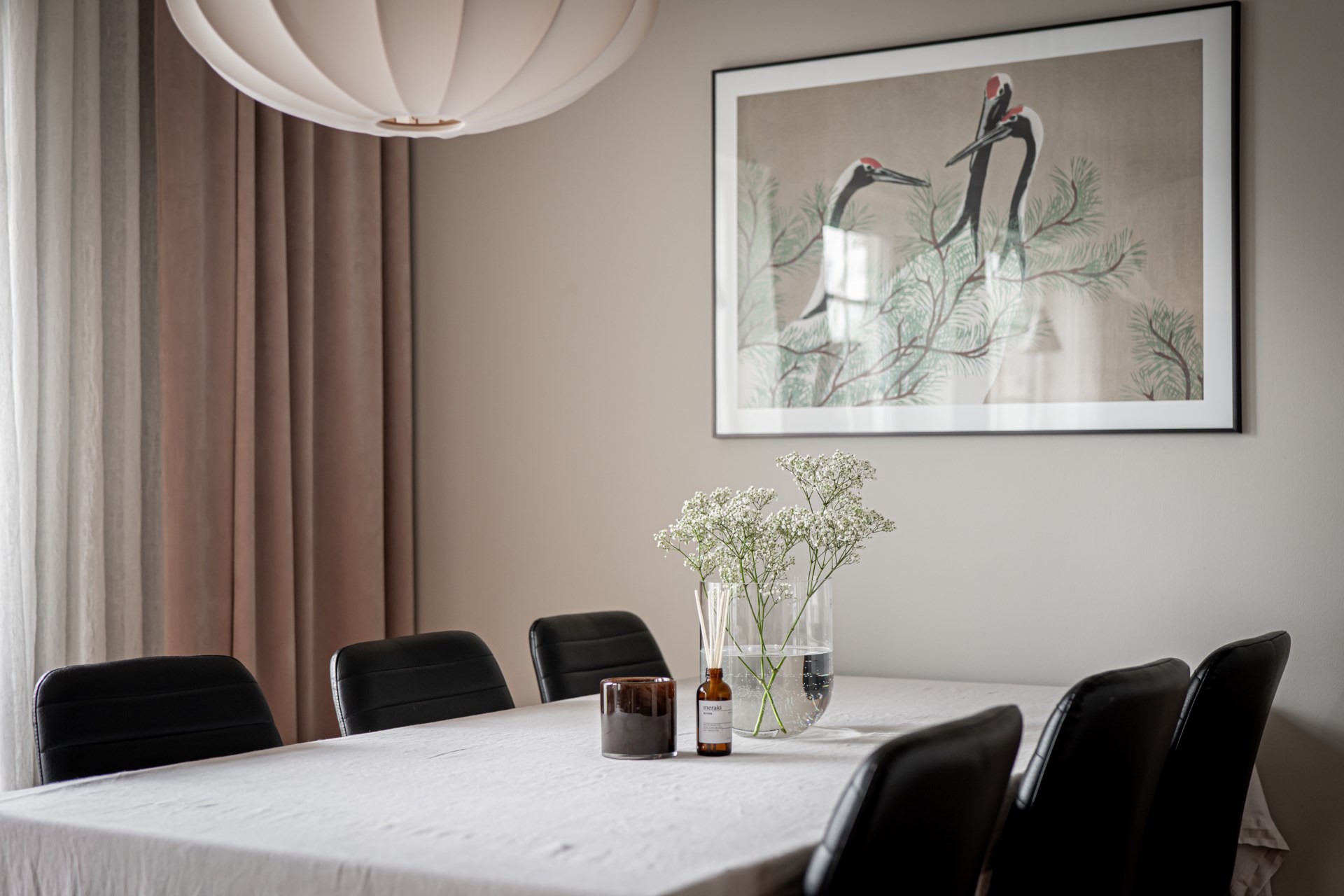 - Allmän beskrivning: Välkommen in i en praktisk hall med klinkergolv och ljusa väggar. Direkt till höger finner ni tvättstugan och sedan det första badrummet. Till vänster om hallen finner ni en matplats men som idag används som extra förvaringsplats med fem stycken garderober. Ni kommer sedan till det fina köket som öppnar upp sig mot vardagsrummet. Vardagsrummet har ett härligt ljusinsläpp genom de stora fönstren ut mot trädgården. I vardagsrummet finns det möjlighet att möblera med både soffgrupp och matgrupp. Från vardagsrummet kan ni öppna upp mot altanen och baksidan som vetter mot söder. Under trappan har ni ett förråd som ger er extra med förvaring. Tar ni sedan trappan upp till andra våningen har ni först ett mysigt allrum med plats för soffa och tv. Här uppe har ni sedan tre sovrum samlade. Det större sovrum har plats för en dubbelsäng, här inne finns även en skjutdörrsgarderob. På övre plan har ni även det andra badrummet och en klädkammare.