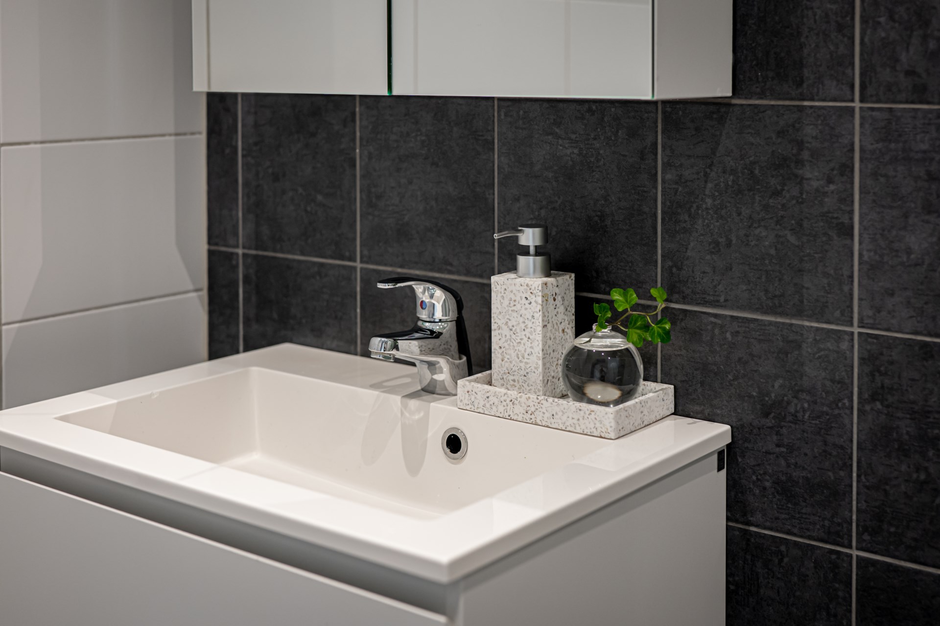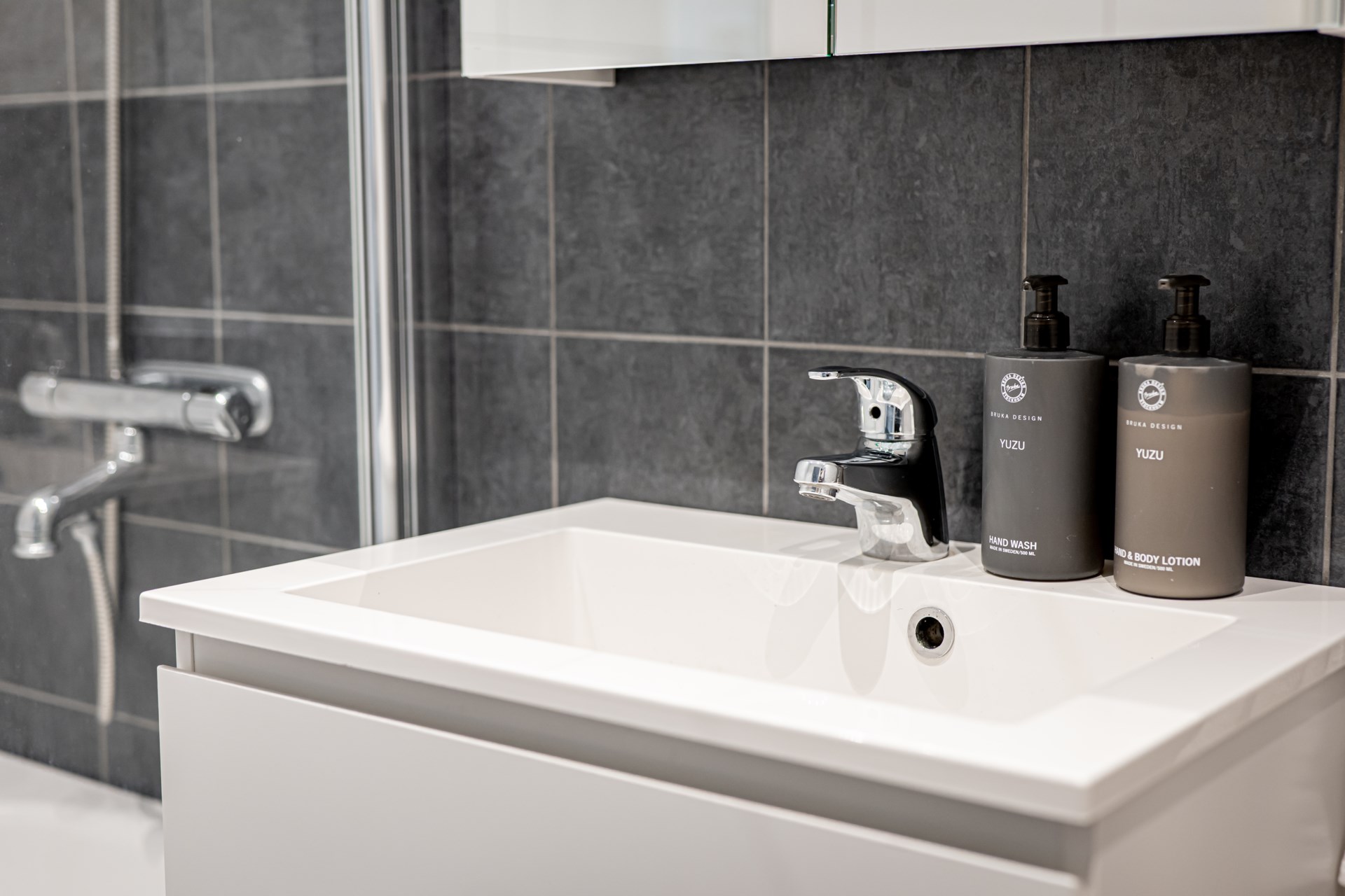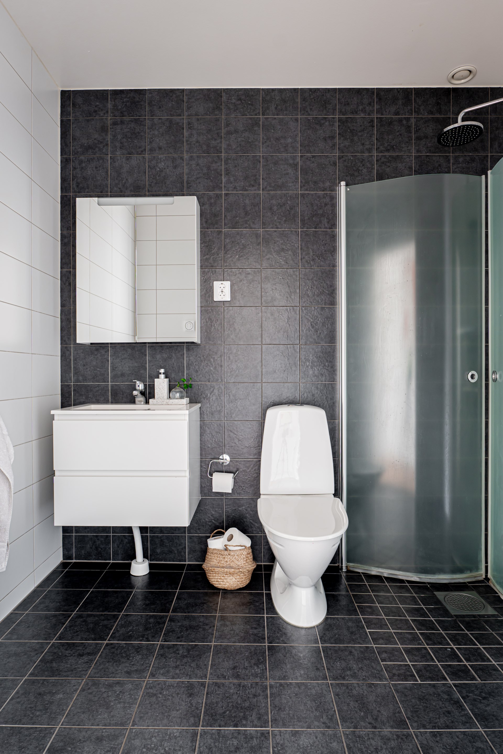 - Badrum: Badrummet är helkaklat med klinker på golvet. I badrummet har ni wc, kommod, spegelskåp och dusch.