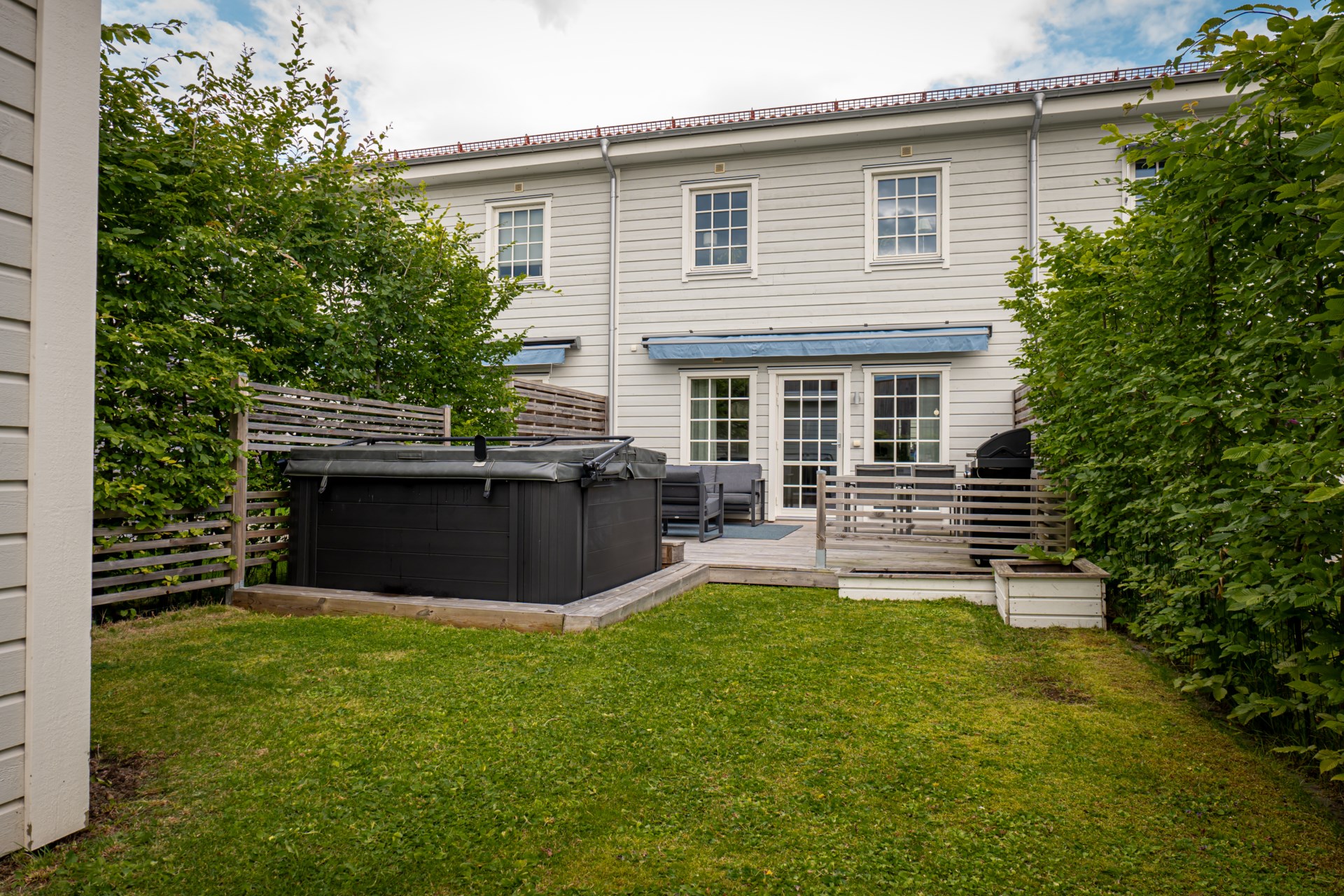 Radhusen på Gnistvägen är uppförda så sent som 2018 och känslan av nytt sitter fortfarande i väggarna. Här får ni tre sovrum, allrum och ett fint och ljust vardagsrum. Den smarta planlösningen ger både privatliv och möjlighet till samvaro, med ljusa och öppna ytor där familjen kan samlas för middagar och mysiga kvällar. Enhetliga och ljusa ytskikt är genomgående för hela bostaden och här är det lätt att trivas. På baksidan har ni er egna trädgård med altan. Här finns det plats för barnens lek och fina grillkvällar. Här har ni även ett spabad där ni kan njuta av värmen samtidigt som solen går ner. Med minimal biltrafik och gott om grönområden är detta en trygg miljö för barn att växa upp i. Lekplatser och vackra promenadstråk lockar till utforskning och ger möjligheter till roliga äventyr för både små och stora.-