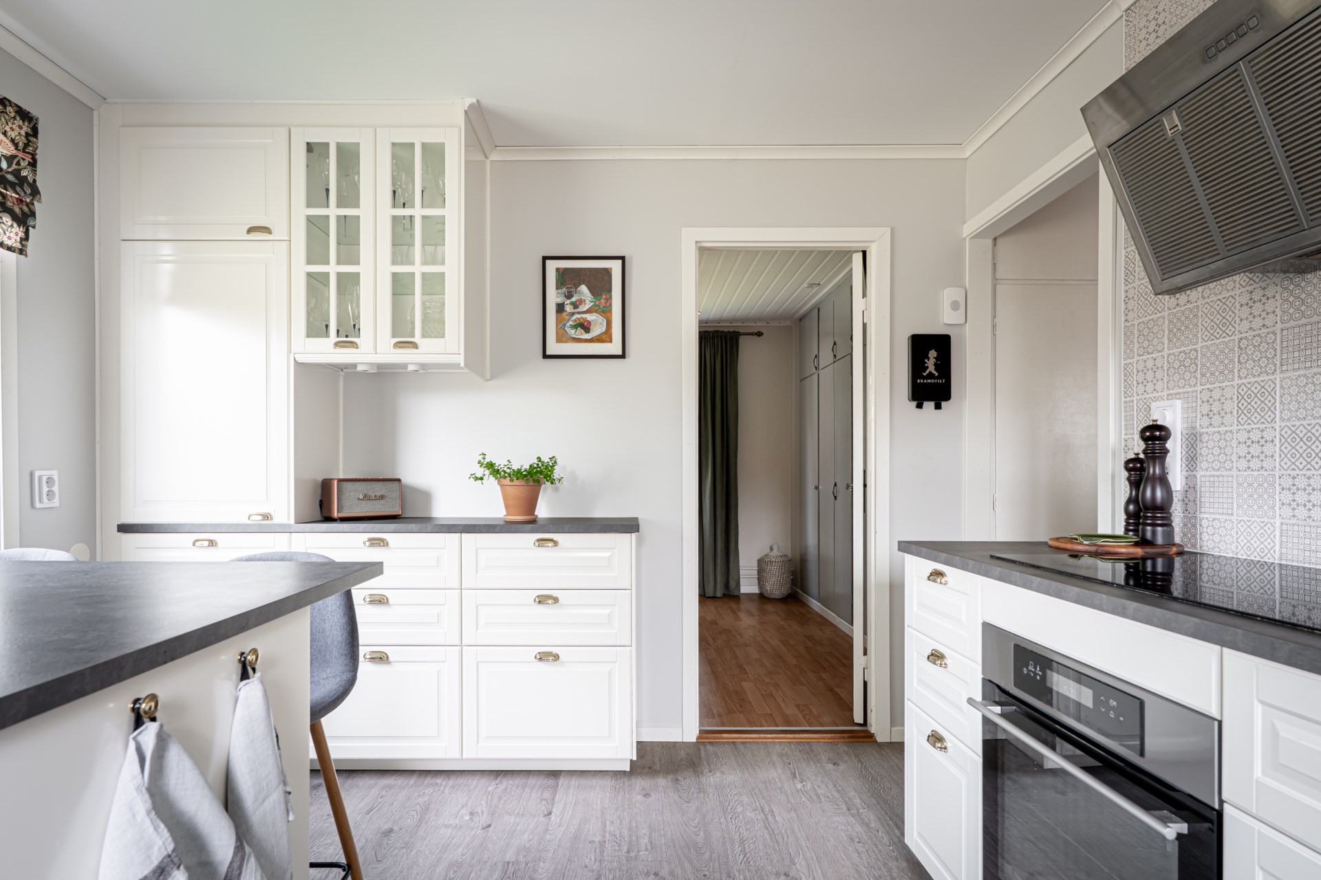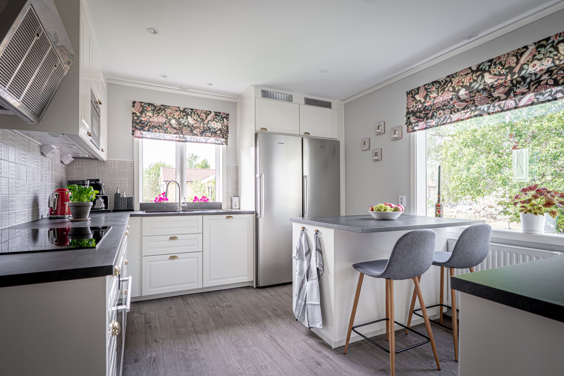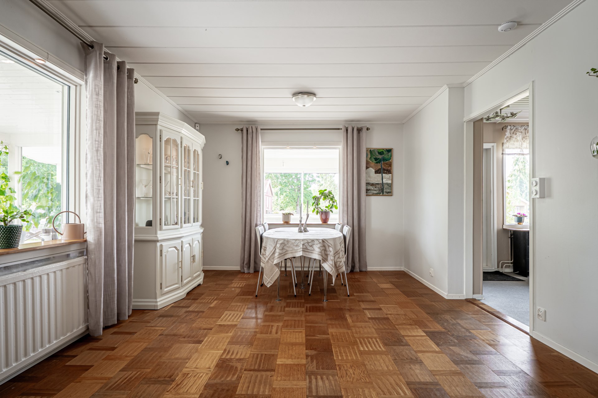 Välkommen till ett hus som kombinerar generösa sociala ytor med fina möjligheter att anpassa efter framtida behov. Här möts du av ett rymligt och inbjudande vardagsrum där ljuset flödar in och där det finns plats för både stora möblemang och många gäster. För den som önskar fler sovrum finns möjlighet att enkelt dela av och skapa ytterligare rum, vilket gör huset flexibelt för olika livsskeden.Köket renoverades 2020 och är modernt utformat med smakfulla materialval, bra arbetsytor och utrustning som gör vardagen bekväm. Det är en naturlig samlingsplats för både vardagsmåltider och middagar med vänner.