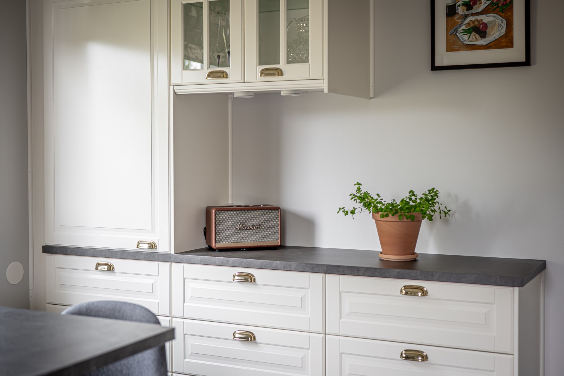 En trappa ner finner ni källaren som bjuder på gott om plats och förvaringsmöjligheter. I källaren har ni även tvättstuga och ingång till garaget. - Kök: Ljust och fint IKEA-kök från 2020 med gott om bänkyta för matlagning. Köket är utrustat med spishäll, fläkt, ugn, integrerad diskmaskin samt kyl och frys i fullhöjd.