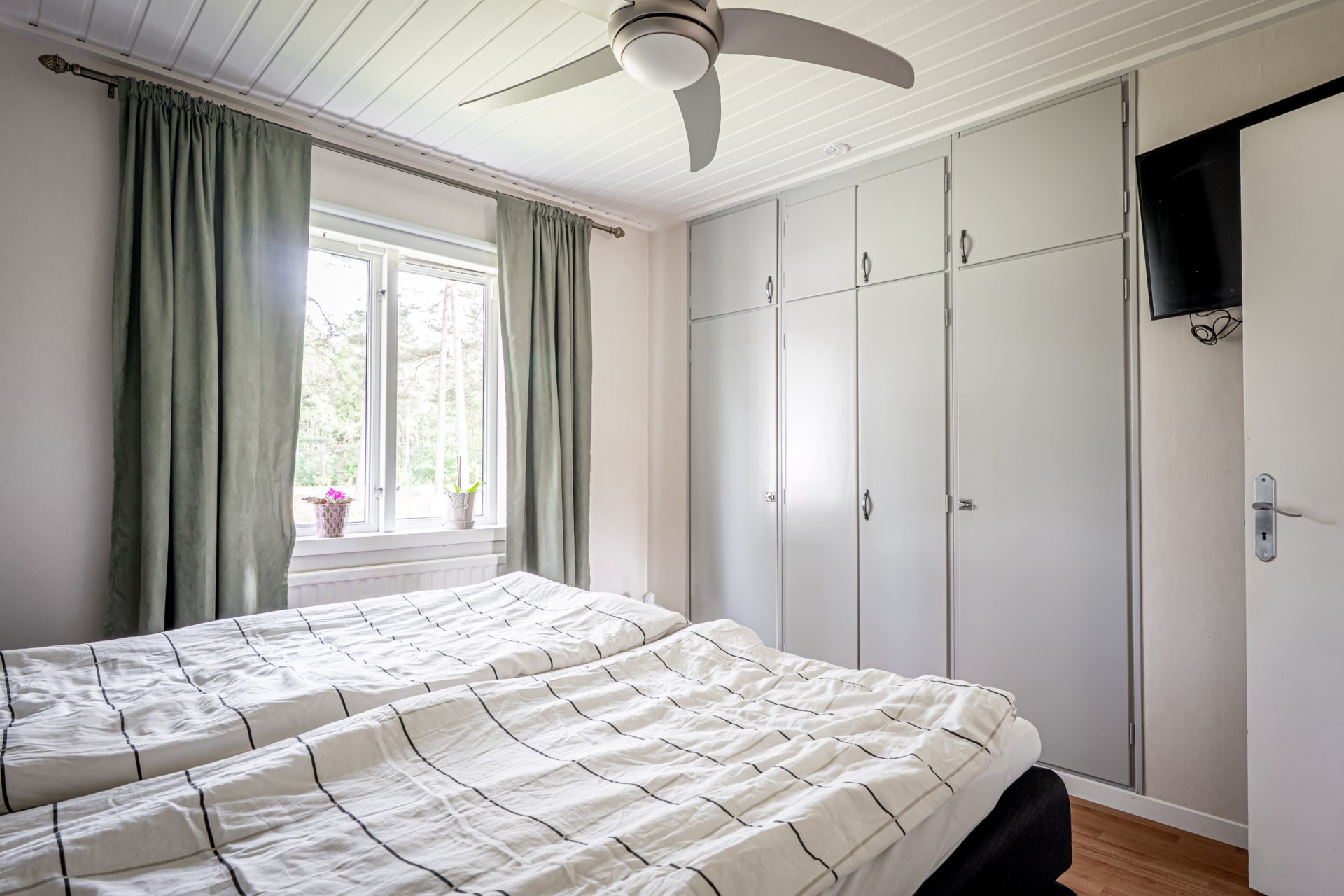 - Allmän beskrivning: En stor hall välkomnar er in när ni kliver in i huset. I hallen finns plats för avhängning av ytterkläder. Här finns även möjlighet till att möblera med byrå om så önskas. I hallen har ni även en öppen spis som värmer gott och skapar stämning under kyligare dagar. Vid hallen finner ni badrummet och sedan köket som renoverades 2020. Från köket når ni det större sovrummet som rymmer en dubbelsäng. Längs med ena väggen i sovrummet har ni garderober som rymmer gott om kläder. Det andra sovrummet nås från hallen och även detta är i bra storlek. Här finns det plats för säng och skrivbord om så önskas. På högra sidan hallen har ni sedan ett stort vardagsrum med plats för både soffgrupp och matbord. Från vardagsrummet har ni utgång till det stora uterummet som blir en naturlig förlängning av huset. Här samlas man gärna hela familjen och njuter av en god middag.