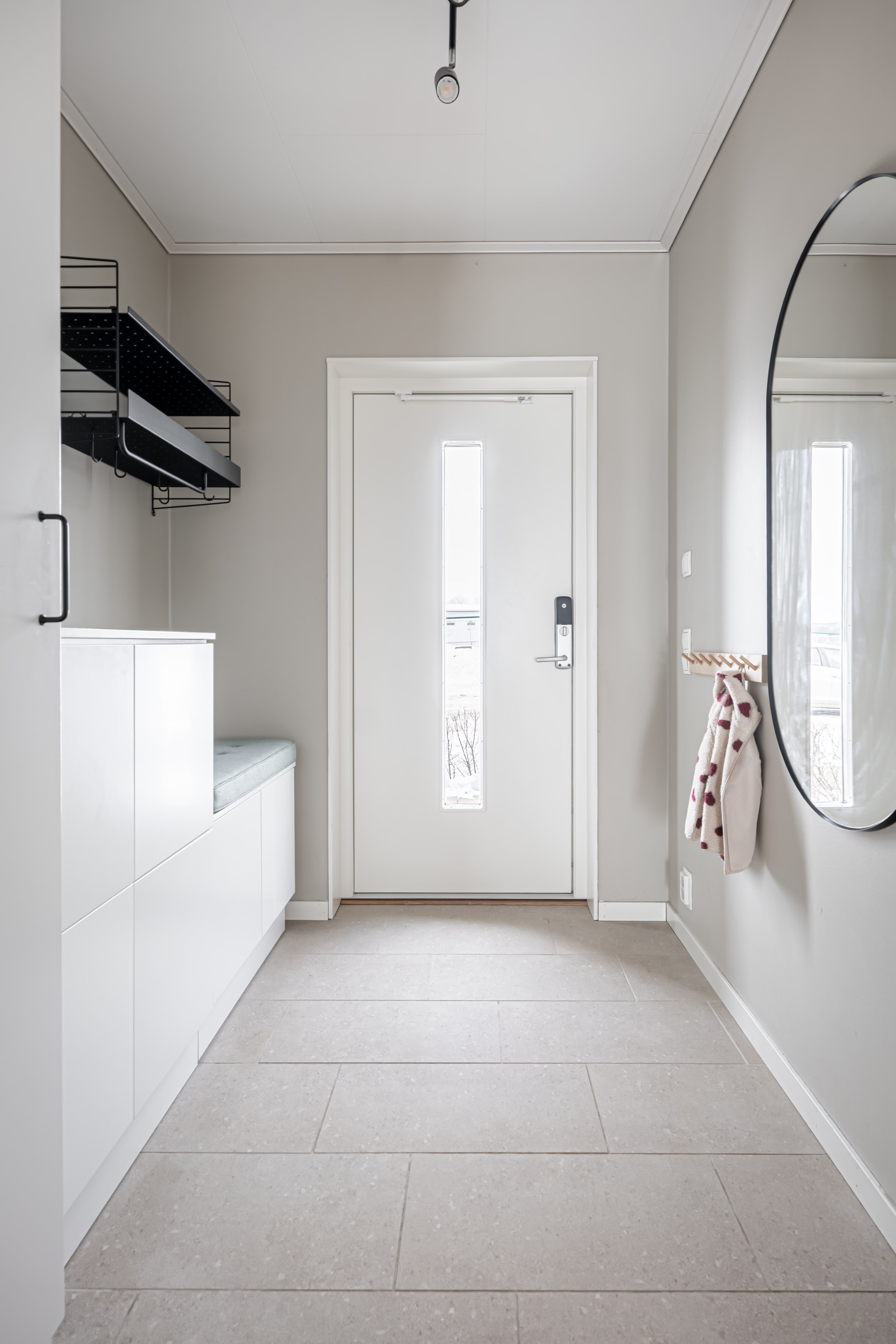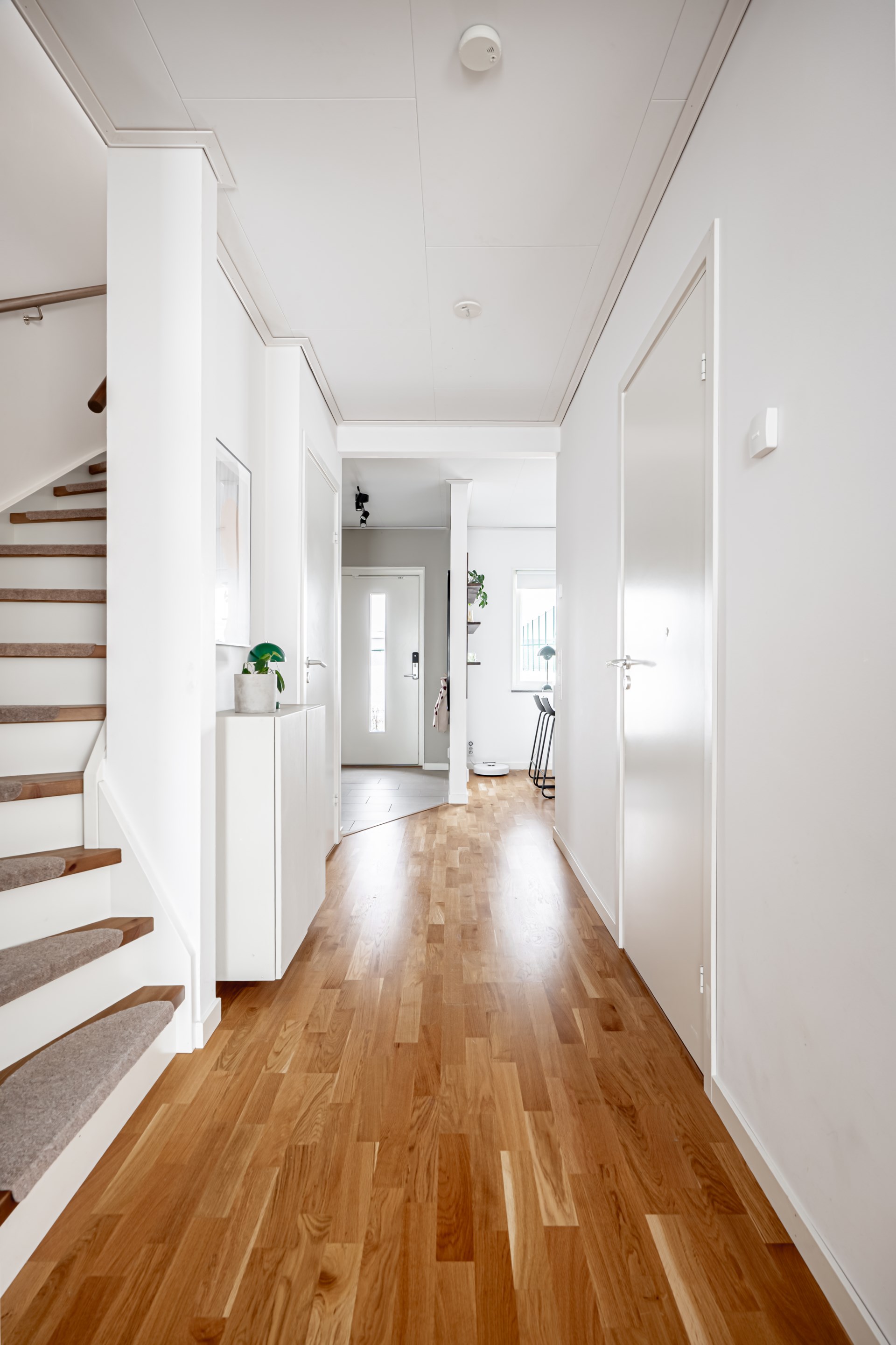 - Allmän beskrivning: Redan i entrén möts du av en ljus och inbjudande hall med klinkergolv och skön golvvärme som sträcker sig över hela entréplanet. Till vänster väntar det moderna köket – en perfekt plats för matlagning och gemenskap. Intill ligger ett fräscht badrum med stilrent klinkergolv, ljusa kaklade väggar samt både tvättmaskin, torktumlare och värmepumpen.