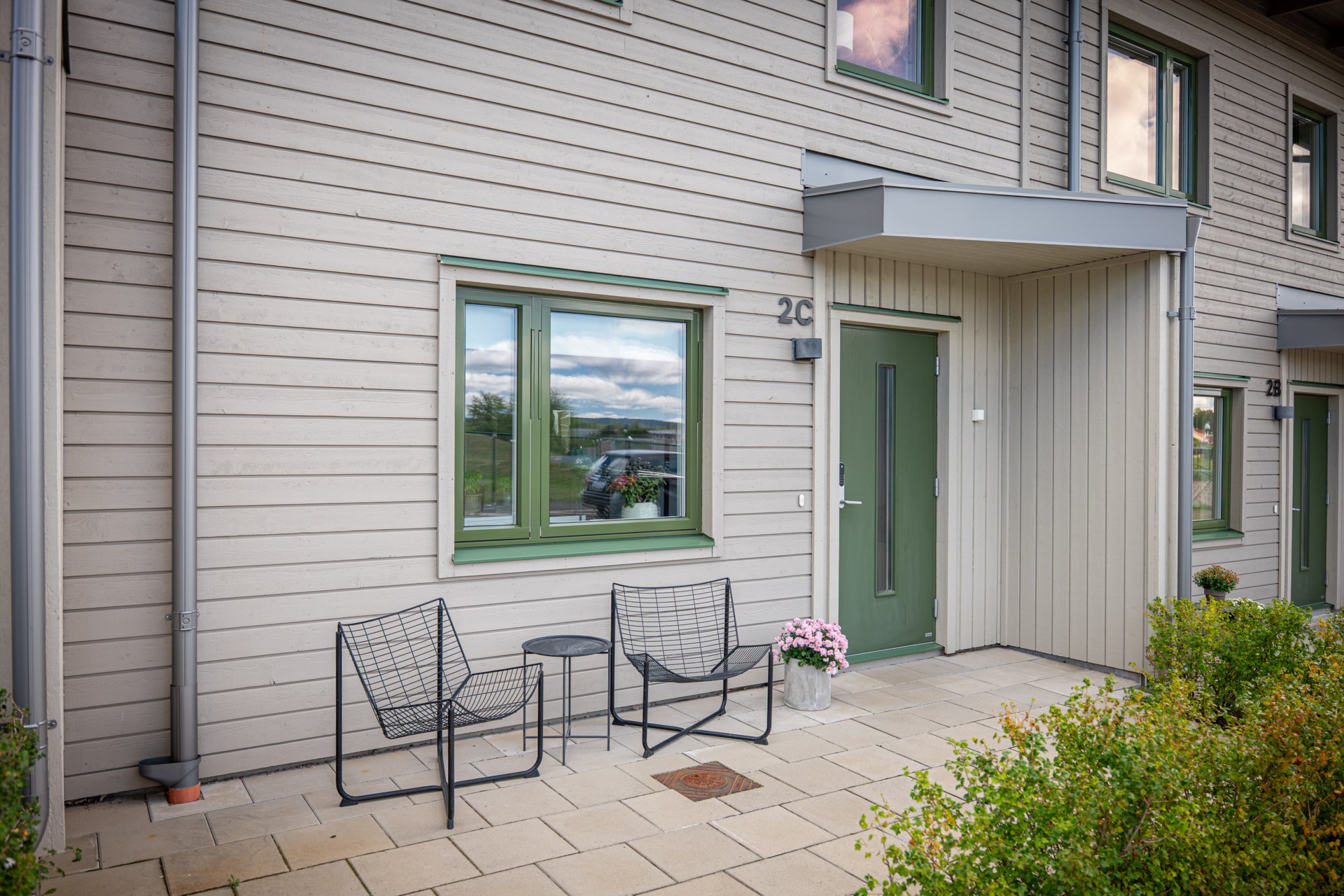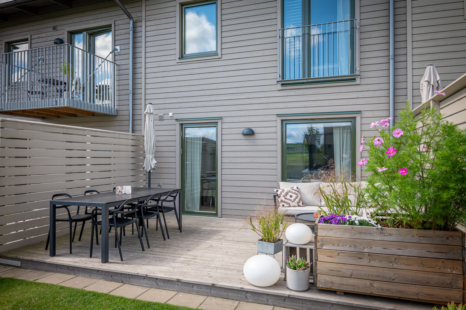 Balkong, uteplats och bilplats