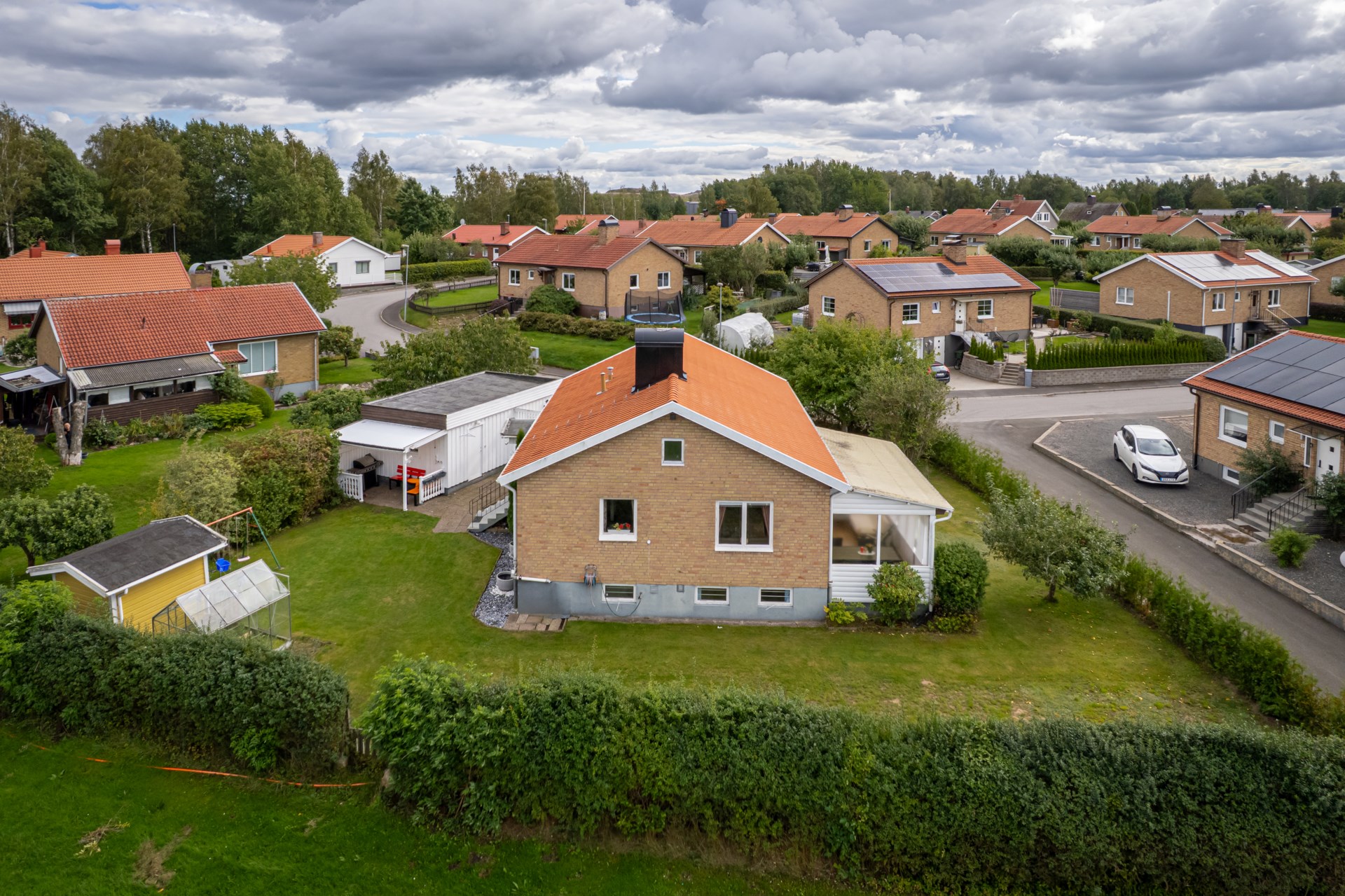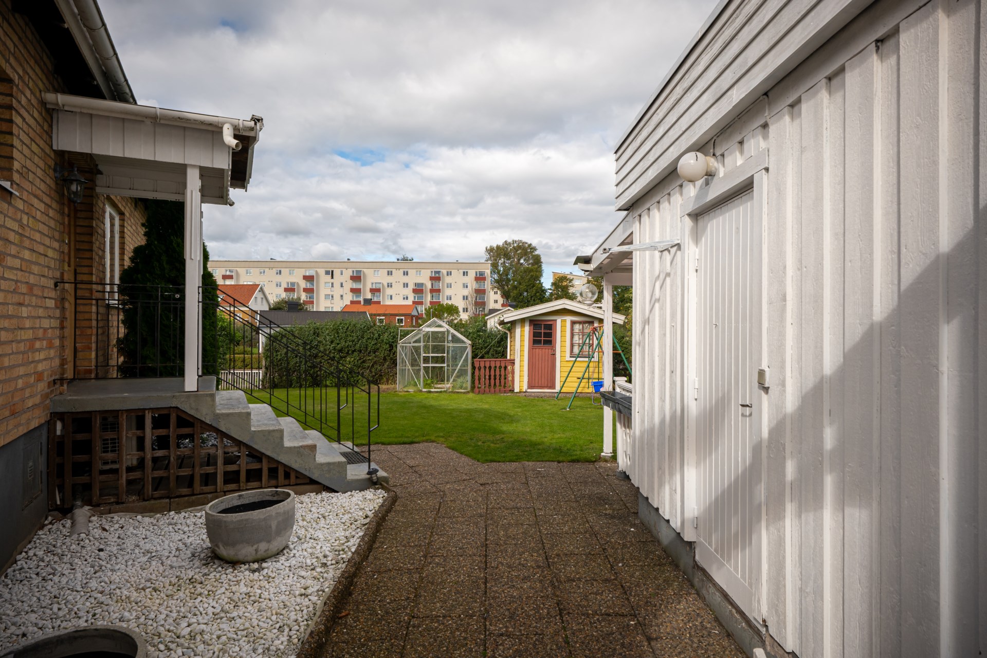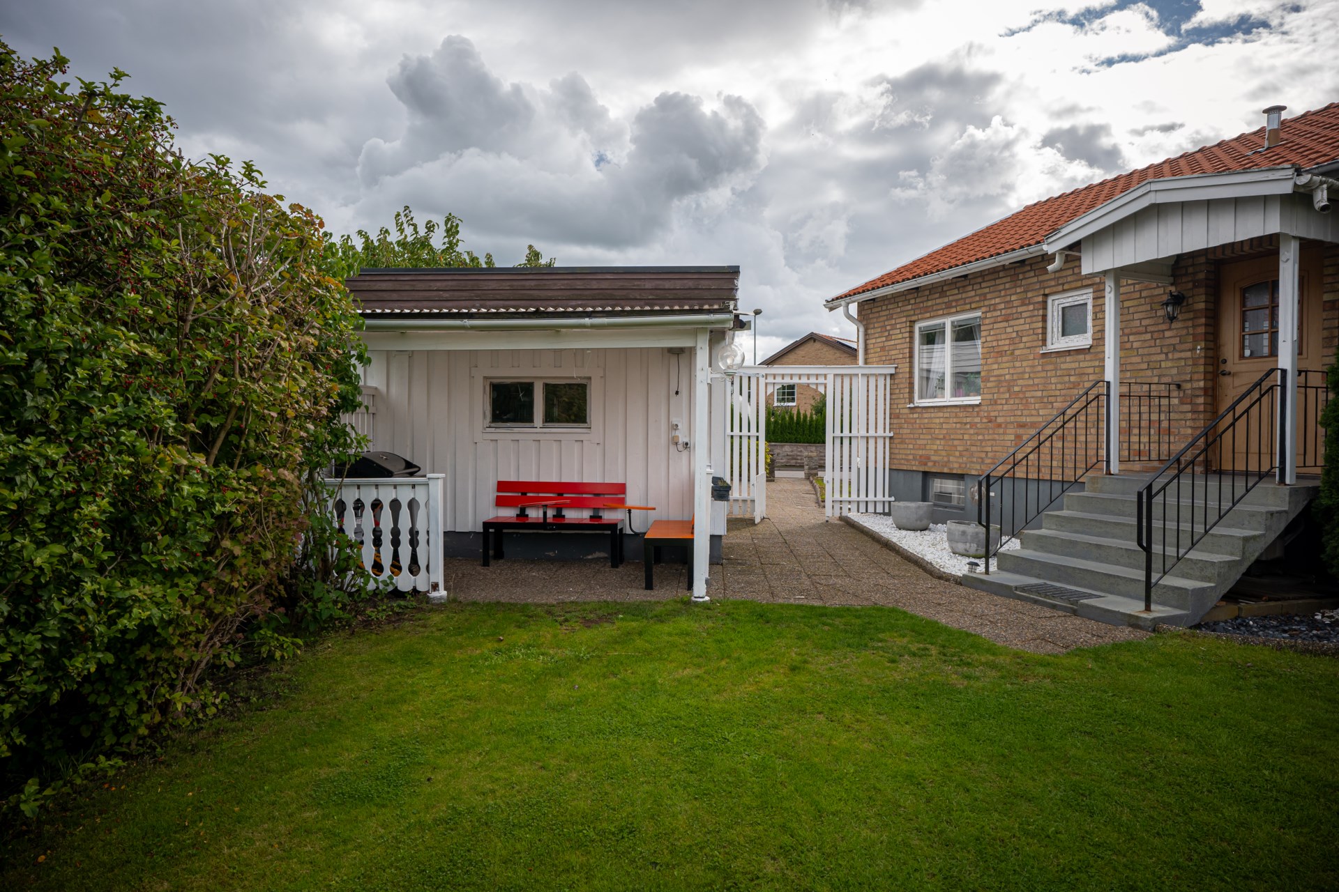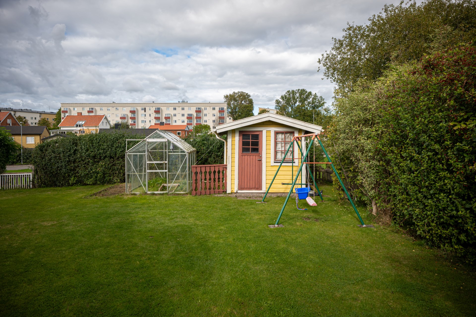 Trädgården ramar in huset fint och bjuder på en grönskande plats att njuta av under årets varmare månader. Den lugna gatan bidrar till en trygg och rofylld boendemiljö, samtidigt som närheten till både natur och stadens bekvämligheter gör läget svårslaget.