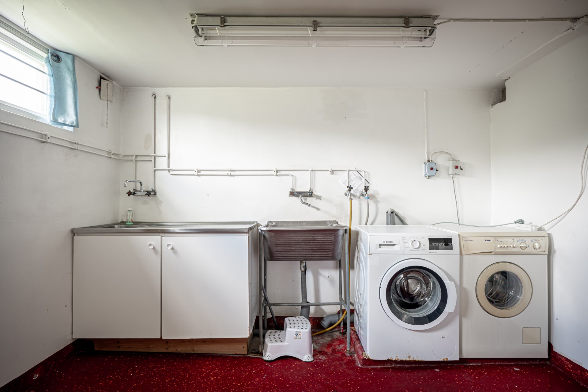 - Tvättstuga: Tvättstugan är belägen i källaren och är utrustad med tvättmaskin, torktumlare och tvättho. Här finns även gott om plats att hänga upp tvätt för torkning.