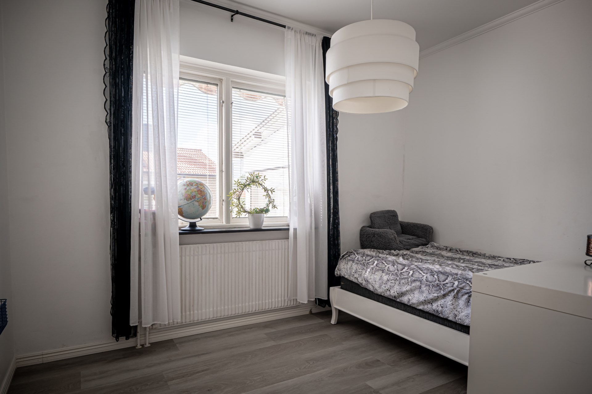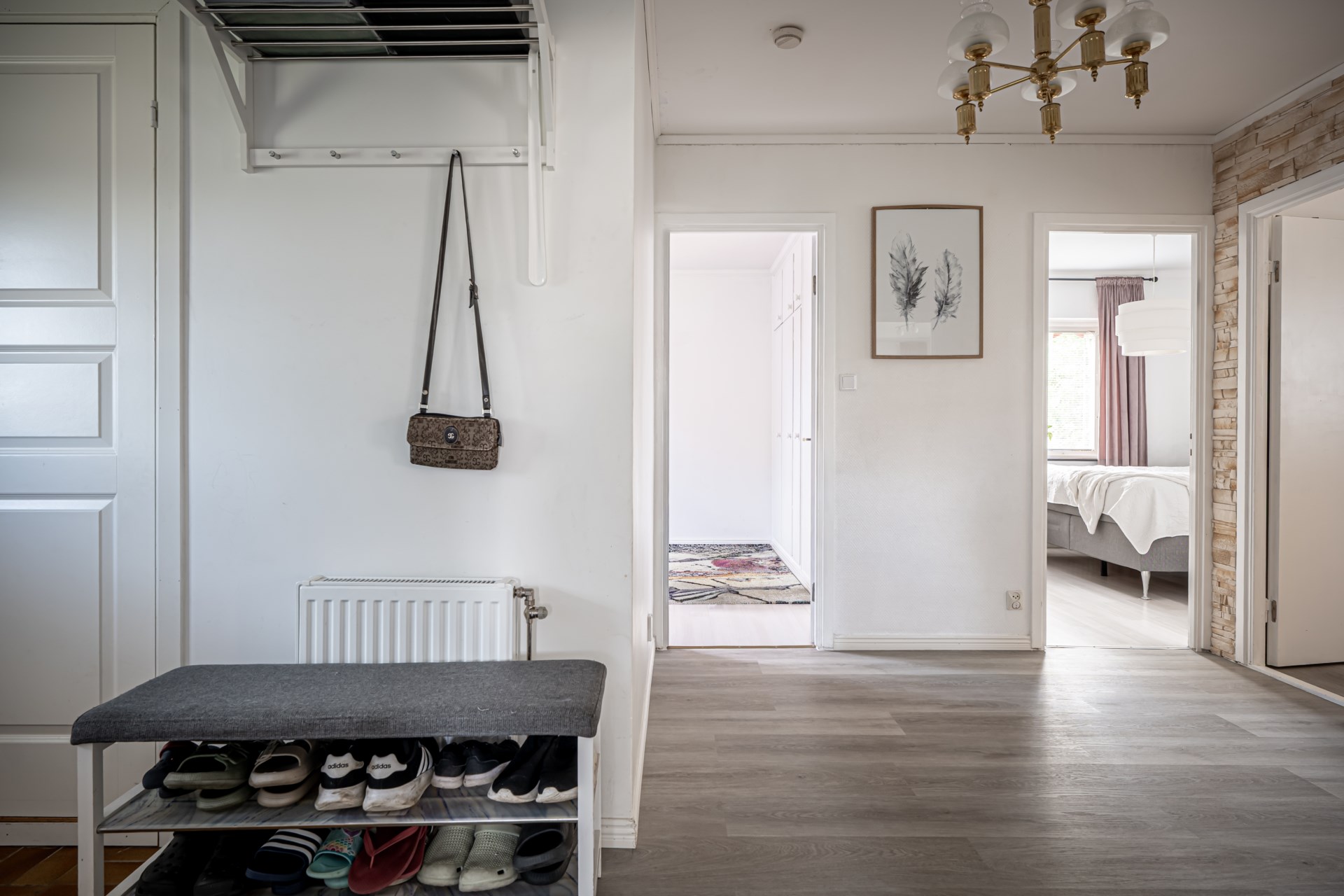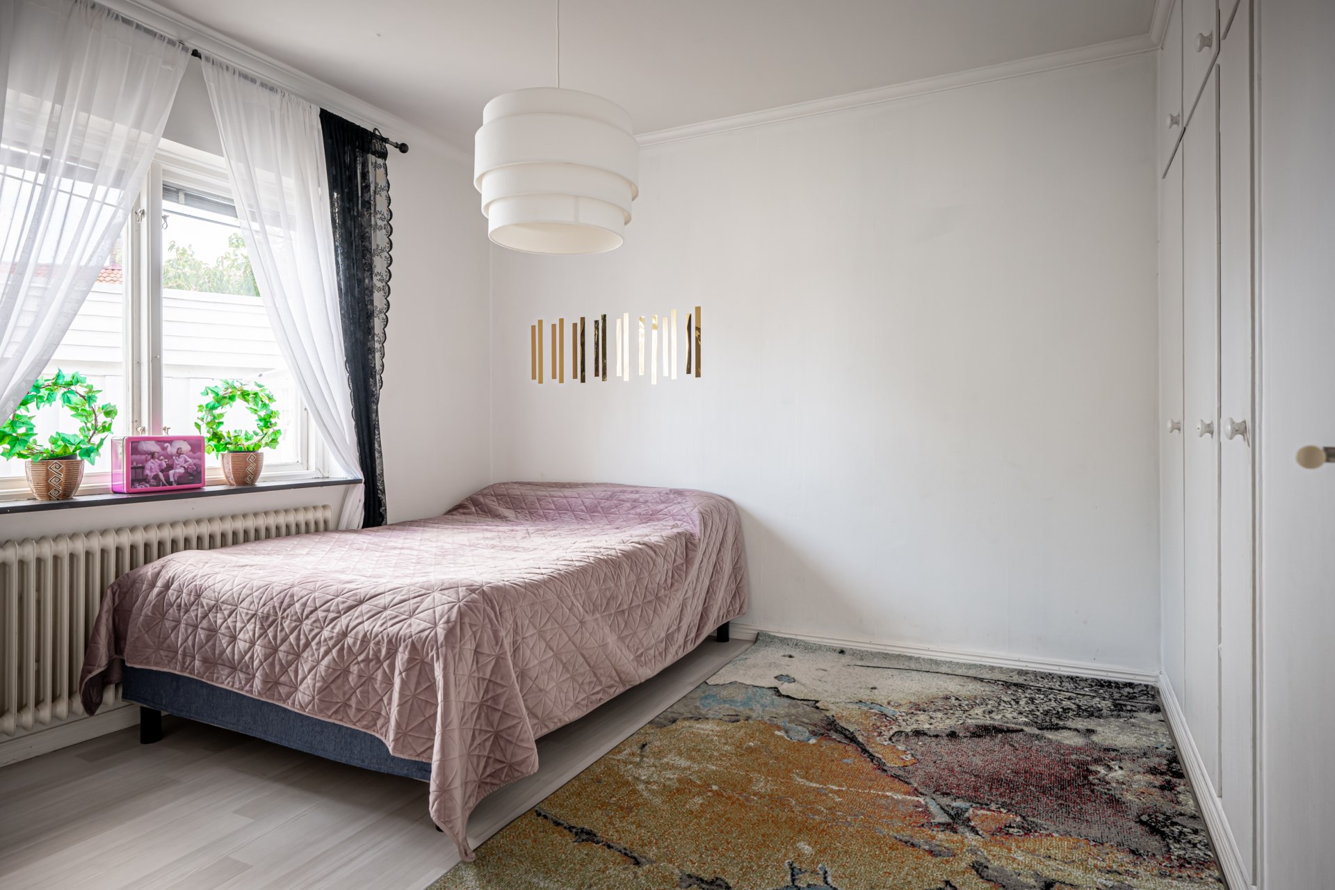 Vidare in i huset finns tre rymliga sovrum, två av dem med praktiska inbyggda garderober. Här får hela familjen gott om plats att trivas.