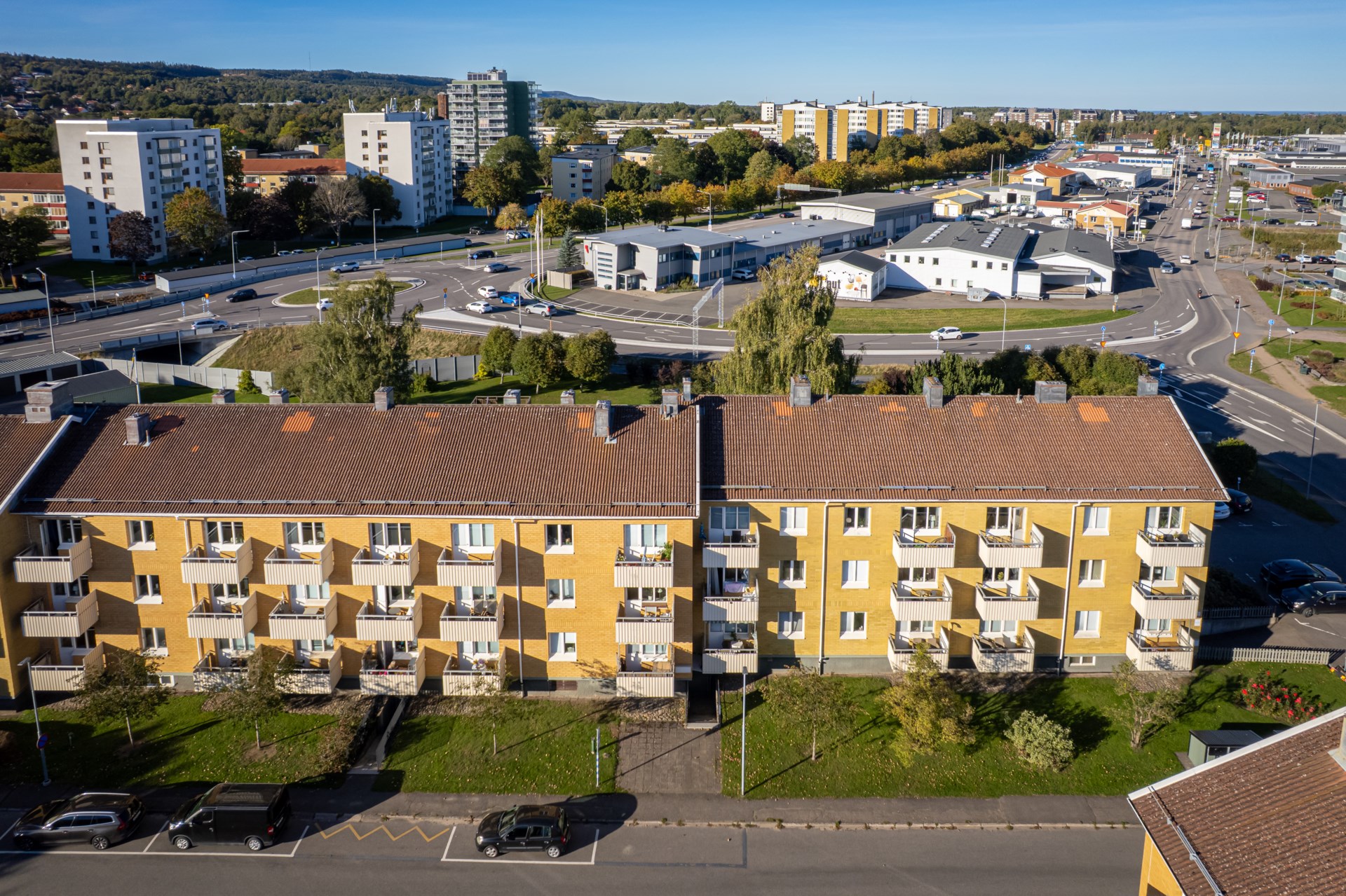 Norrmalmsrondellen. - Parkering: 12 garage och 38 p-platser finns i föreningen, till dessa är det separat kö.