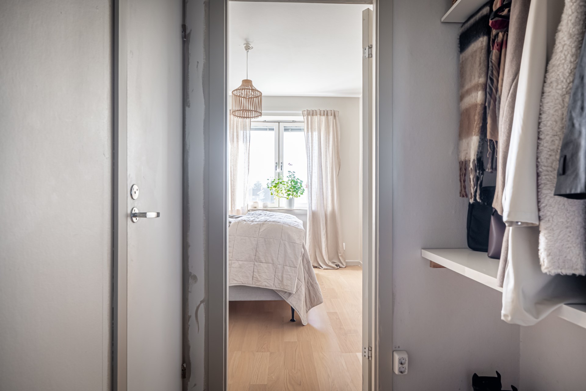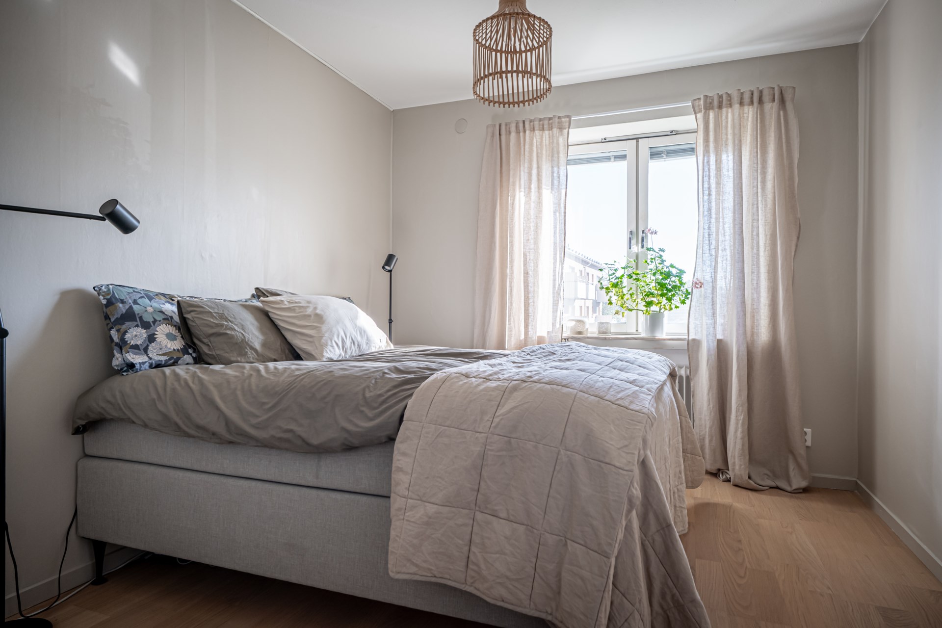 På den högra sidan väntar ett rymligt sovrum med plats för dubbelsäng, medan ni på den vänstra sidan finner ytterligare ett stort sovrum.