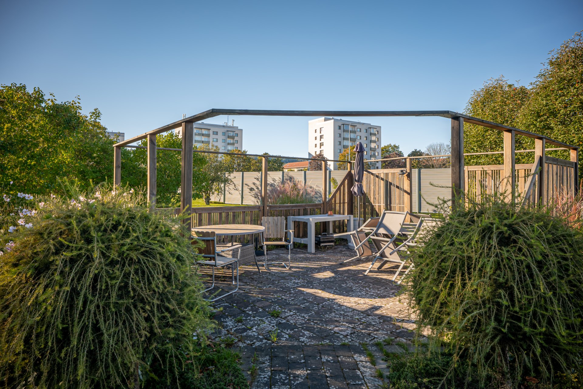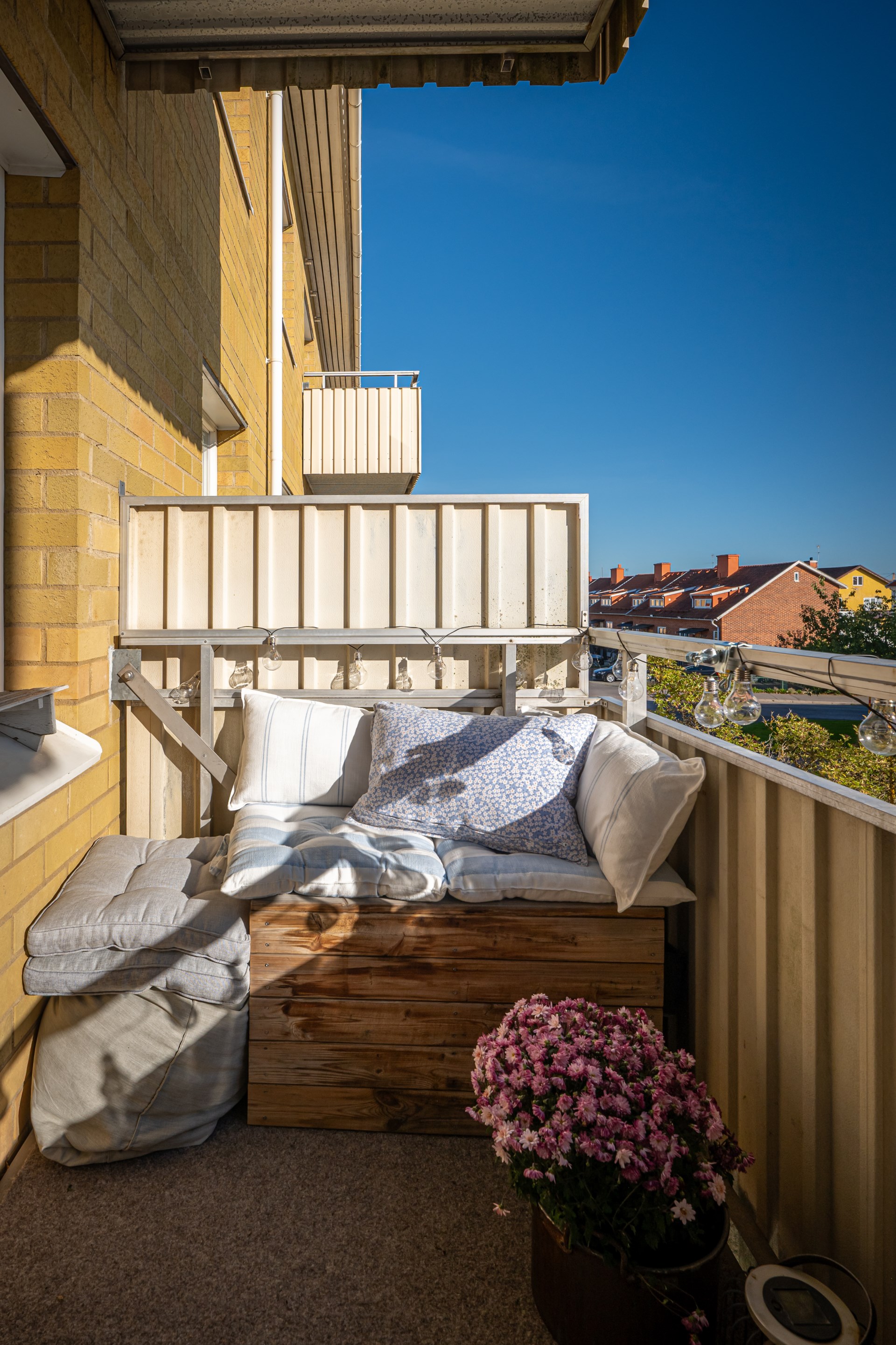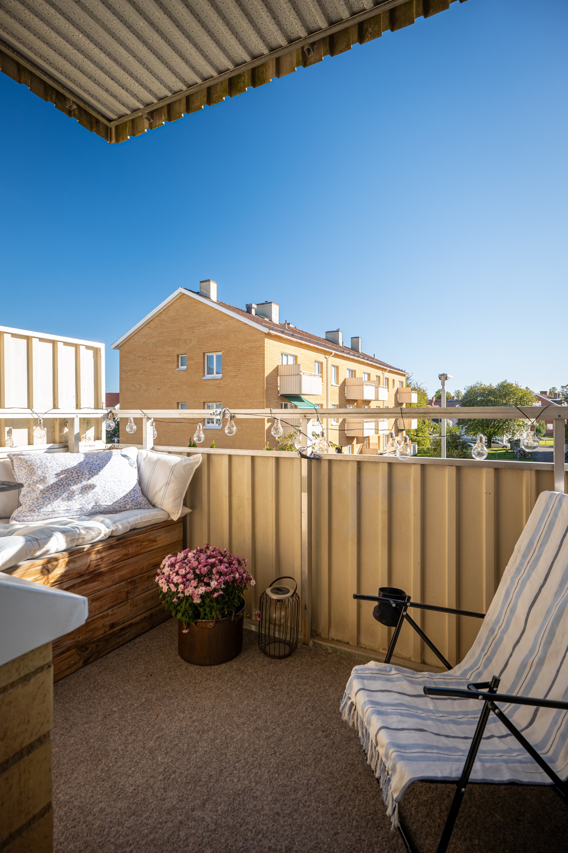 Balkong, uteplats och bilplats