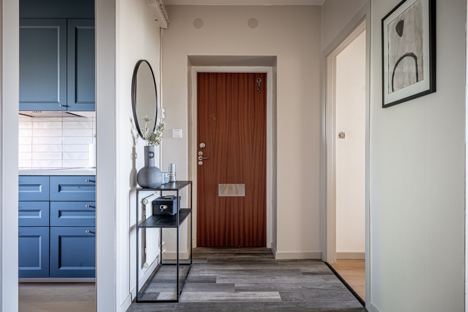 - Allmän beskrivning: Välkommen till denna trivsamma lägenhet med en välplanerad planlösning. Redan i hallen möts ni av en inbjudande känsla och praktisk tillgång till bostadens samtliga rum. Till höger ligger det fina köket med goda arbetsytor och förvaring, och rakt fram finner ni det helkaklade badrummet.