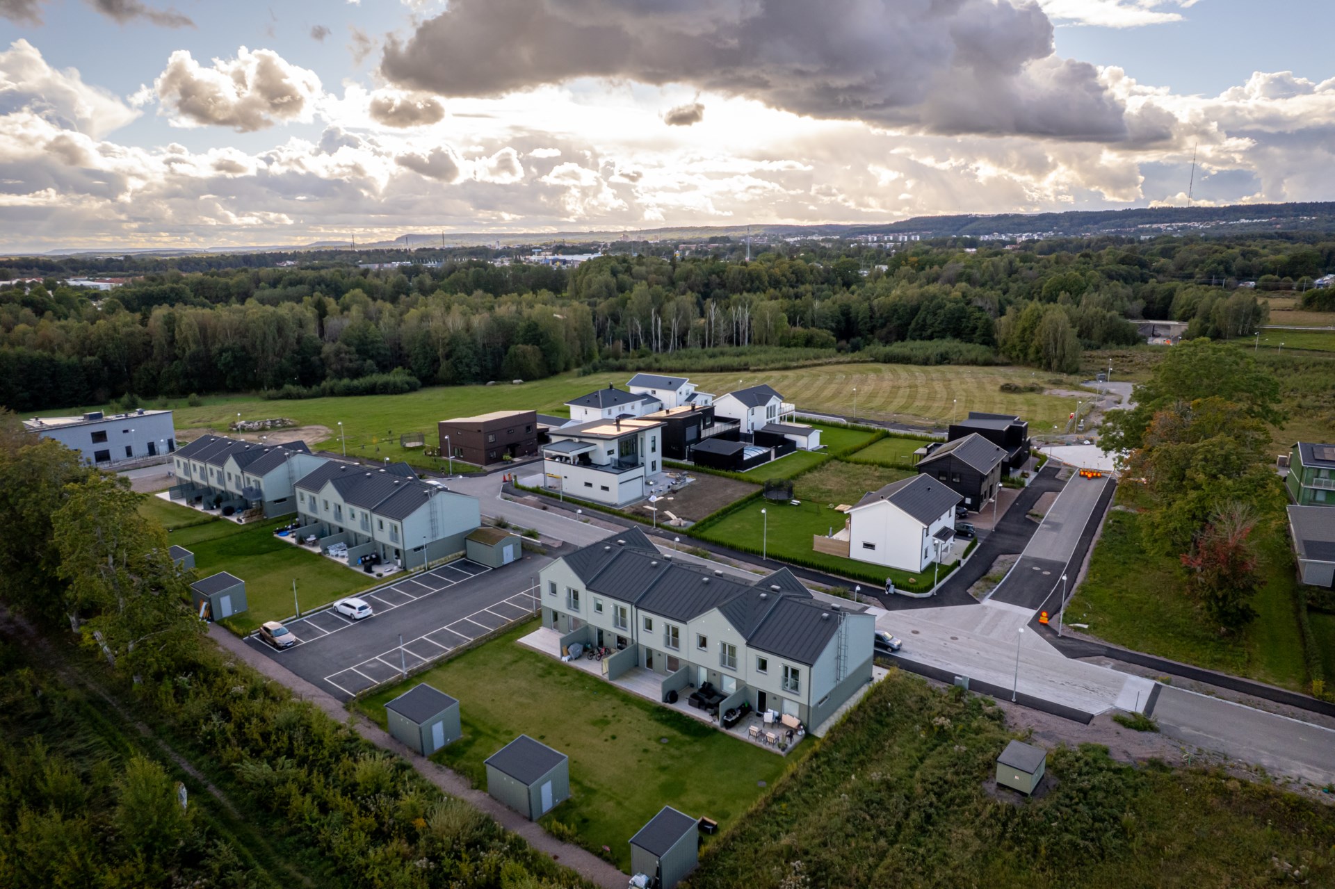 - Allmänt om området: Trädgårdsstaden är Skövdes nyaste stadsdel och följer det klassiska konceptet med trädgårdsstäder. Området är under ständig utveckling och förväntas fortsätta växa och utvidgas under många år framöver. Beläget mellan stadslivet och landsbygden, cirka tre kilometer från stadens centrum, erbjuder Trädgårdsstaden det bästa av två världar. Man kan njuta av närheten till stadens bekvämligheter samtidigt som man får uppleva den natursköna omgivningen och lugnet på landsbygden. I närheten av Trädgårdsstaden finns Stallsikens handelsområde, som erbjuder ett brett utbud av butiker från olika stora kedjor inom livsmedel, kläder, sport, heminredning och elektronik. Här finns allt du behöver för att täcka dina shoppingbehov, och det är bara en kort avstånd från Trädgårdsstaden. För familjer med barn finns det gott om förskolor i området, som öppnades år 2012 och 2018. Dessutom invigdes en skola i området år 2018 (förskoleklass till årskurs 6), vilket gör det till en bekväm plats att bo för barnfamiljer. När det gäller transport finns det goda bussförbindelser och cykelvägar som leder in till stadens centrum. Det gör det enkelt att pendla till och från arbetet eller ta sig till stadens olika attraktioner och aktiviteter utan att vara beroende av bilen. Sammanfattningsvis erbjuder Trädgårdsstaden en unik kombination av stadsliv och natursköna omgivningar. Med kontinuerlig utveckling och tillväxt är det en spännande plats att bo och se fram emot framtiden i.