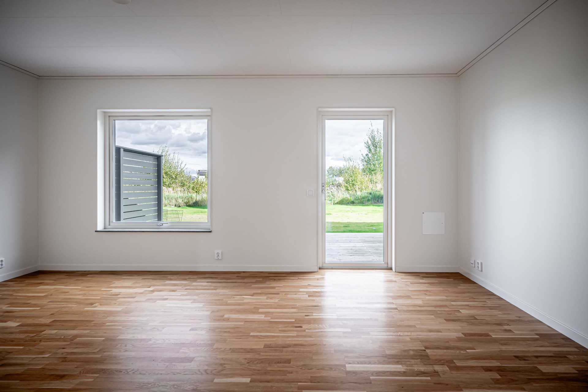 Husets interiör bjuder på ett smakfullt kök från Vedum, fullt utrustat med moderna vitvaror och gott om plats för en matgrupp. Vardagsrummet är generöst tilltaget och rymmer både soffhörna och matsalsmöbel. Här finns två stilrena, helkaklade badrum – det ena kompletterat med tvättmaskin och torktumlare. På övre plan finns tre sovrum och ett allrum som med enkelhet kan göras om till ett fjärde sovrum. Förvaringen är genomtänkt med flera garderober och ett praktiskt förråd under trappan.