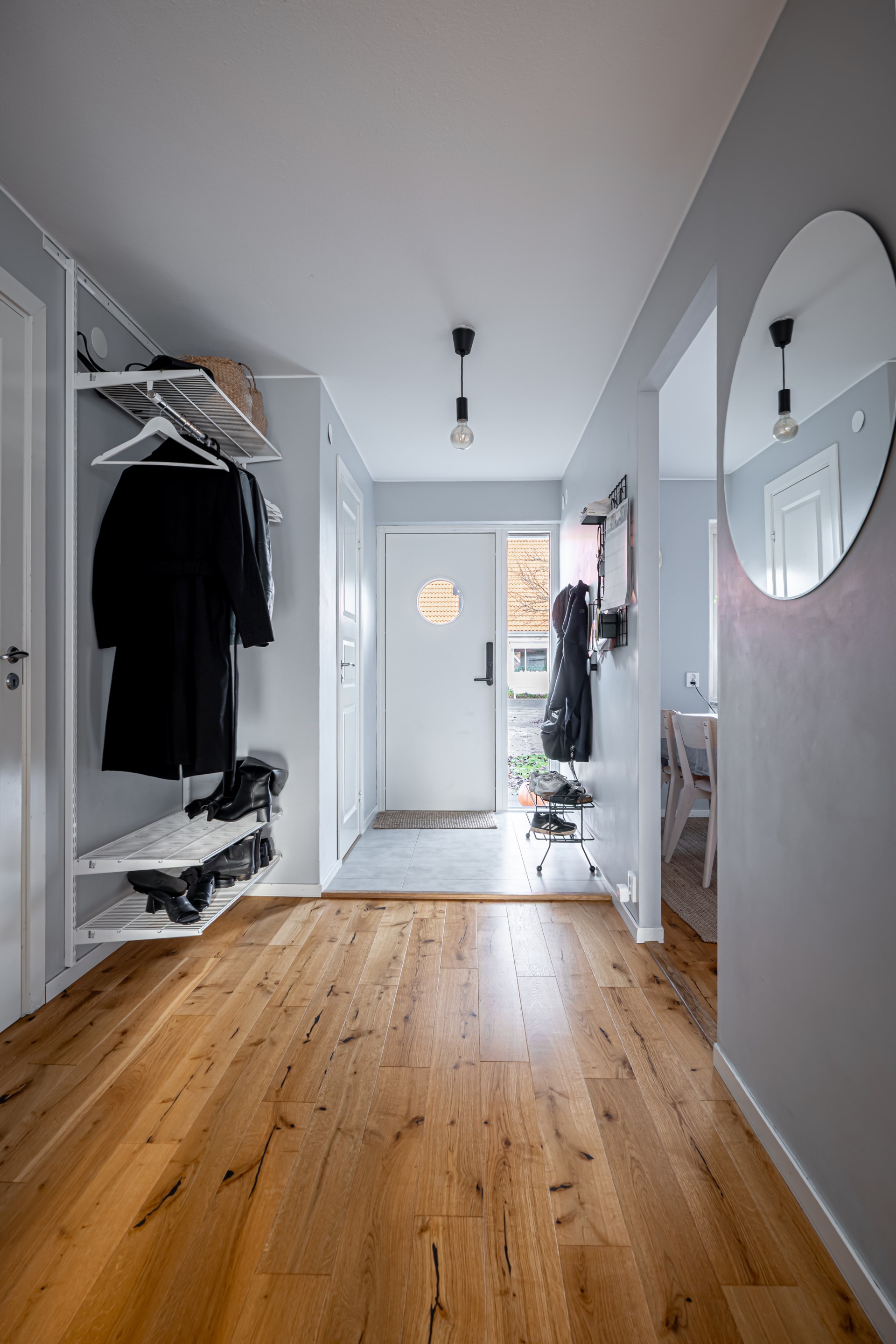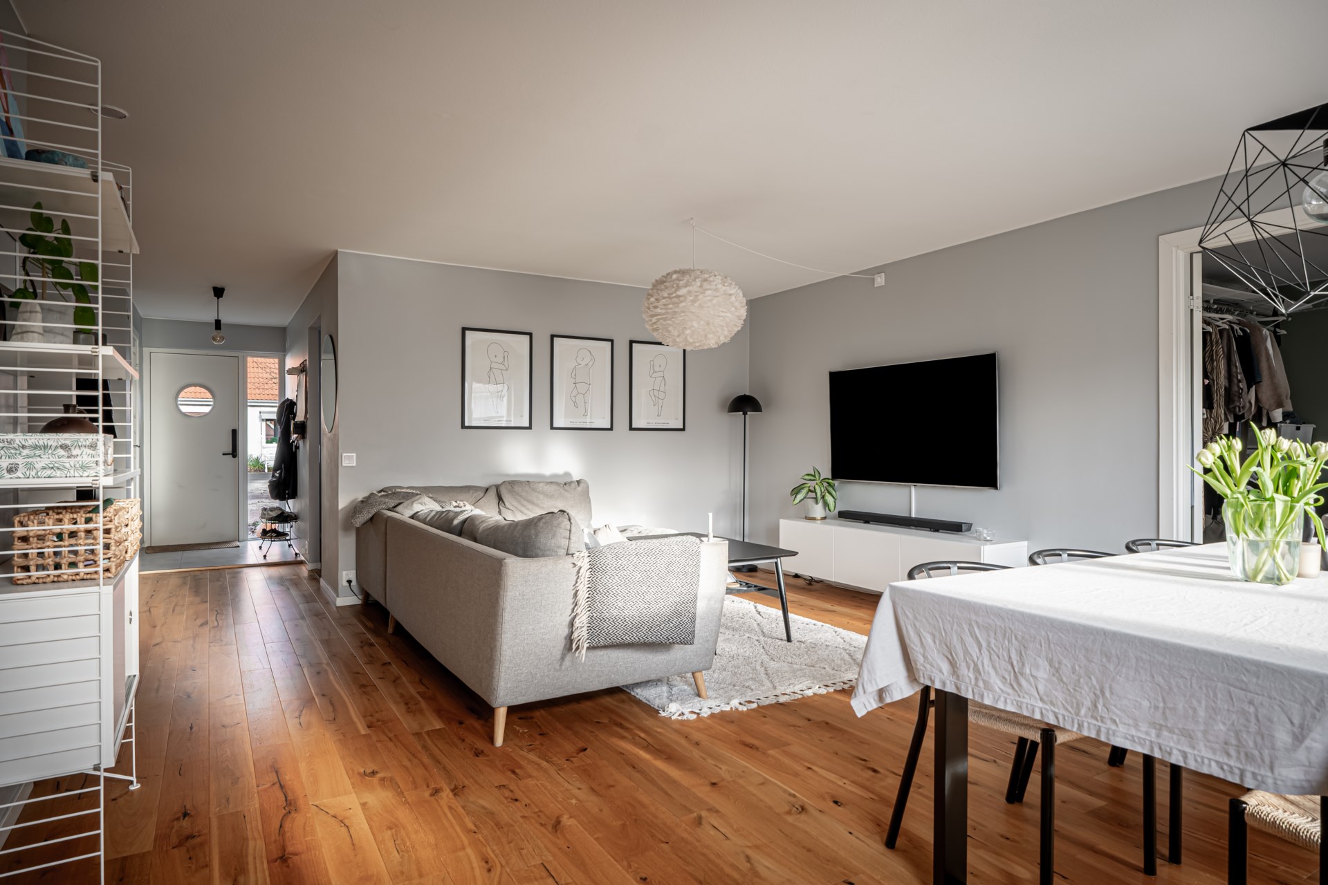 - Allmän beskrivning: Välkomna in i detta trivsamma radhus! Redan i hallen möts ni av en hemtrevlig känsla och plats för avhängning av ytterkläder. På ena sidan finns badrummet och tvättstugan, och på den andra sidan ligger köket. Vidare in i huset öppnar ett fint och ljust vardagsrum upp sig – här flödar ljuset in genom de stora fönstren mot trädgården. Rummet rymmer både soffgrupp och matplats, vilket gör det till en naturlig samlingspunkt för familj och vänner.