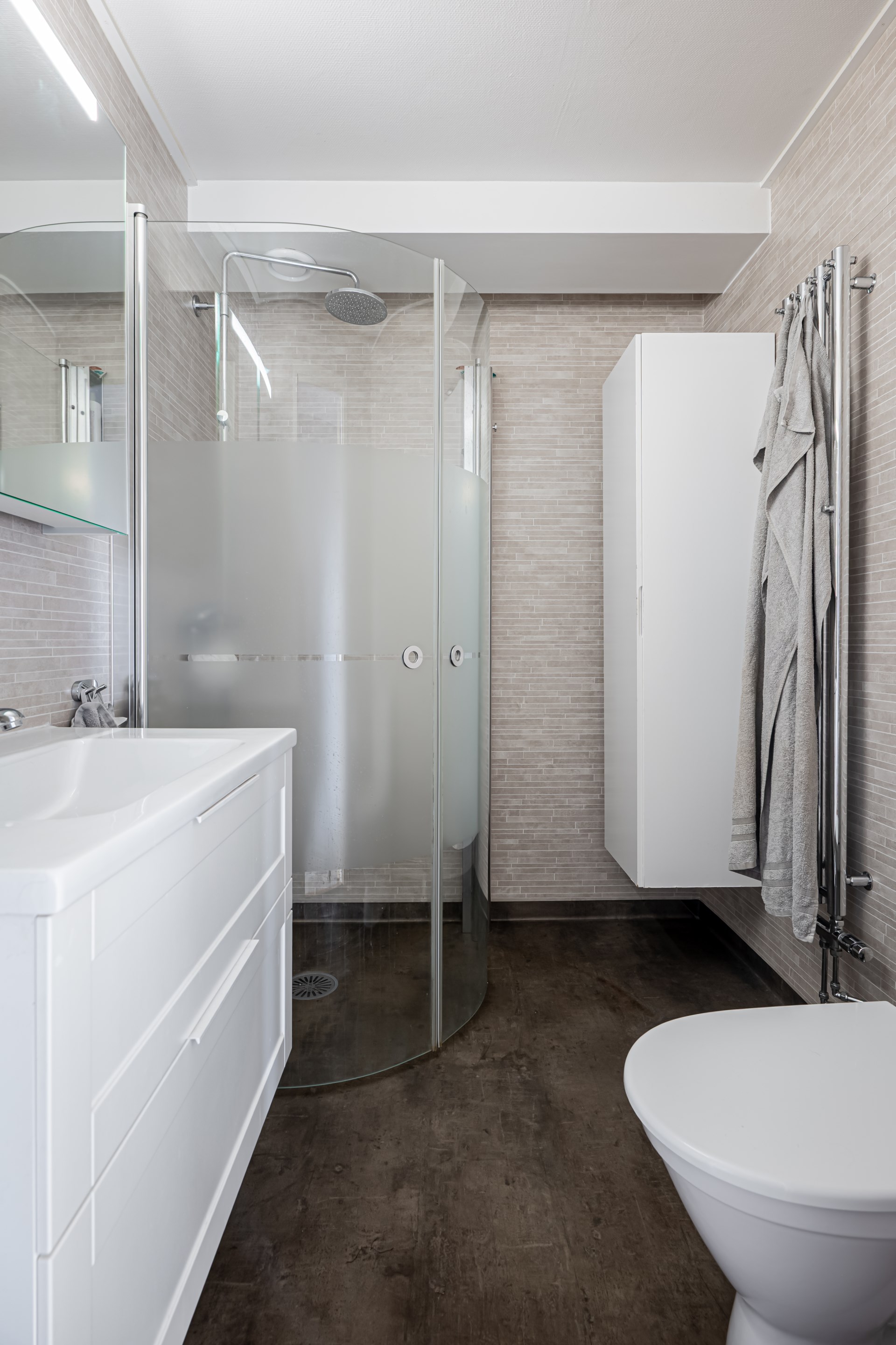 - Badrum: Badrum från 2018 med våtrumsmatta på väggar och golv. I badrummet har ni toalett, kommod, dusch och skåp.