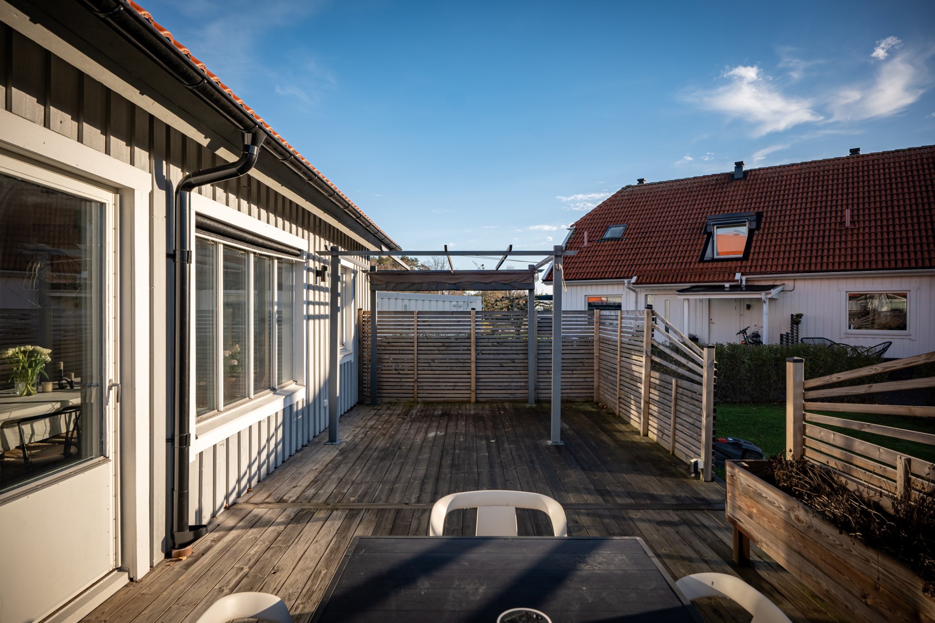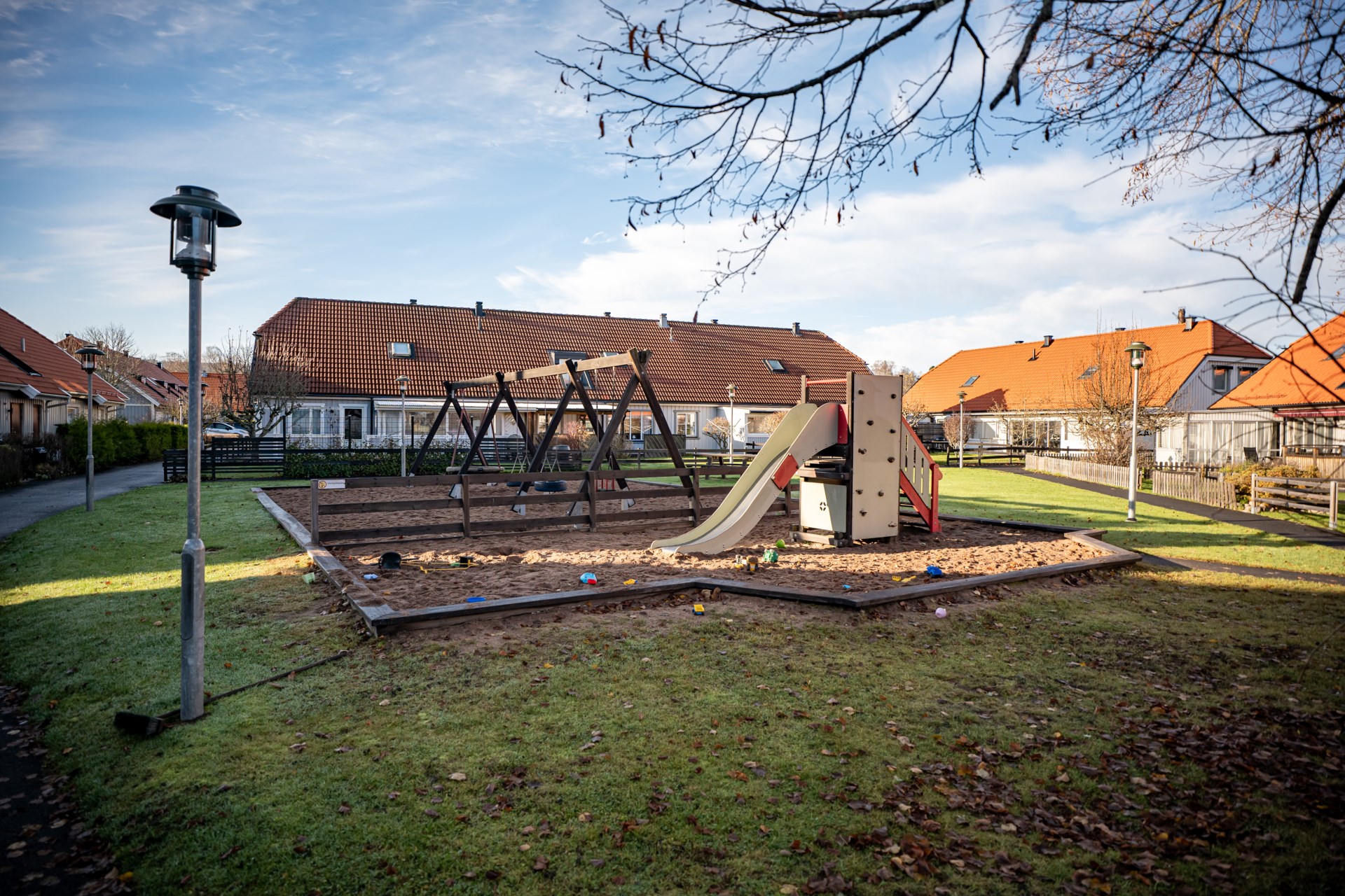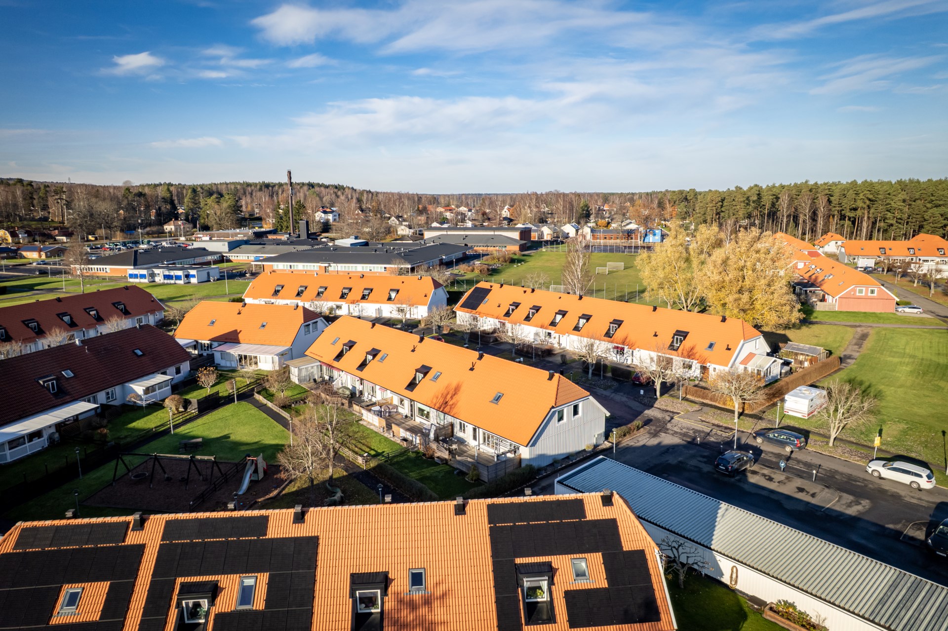 Välkommen till ett trivsamt och välskött radhus med perfekt läge för barnfamiljen! Här bor du bekvämt med genomgående fina färgval, ett renoverat kök och ett badrum från 2018, allt i ett hem som känns både modernt och ombonat.Radhuset har fyra sovrum i bra storlek och en planlösning som gör det enkelt att trivas tillsammans. Det renoverade köket bjuder in till vardagsmat och middagar i gott sällskap, och från vardagsrummet nås den stora altanen på baksidan, en härlig plats för sommarens grillkvällar och lek. Gavelläget ger ett extra ljusinsläpp och en känsla av rymd, samtidigt som tomten erbjuder fin avskildhet. Direkt bakom huset finns en lekplats, så barnen kan leka tryggt medan du har uppsikt från altanen.