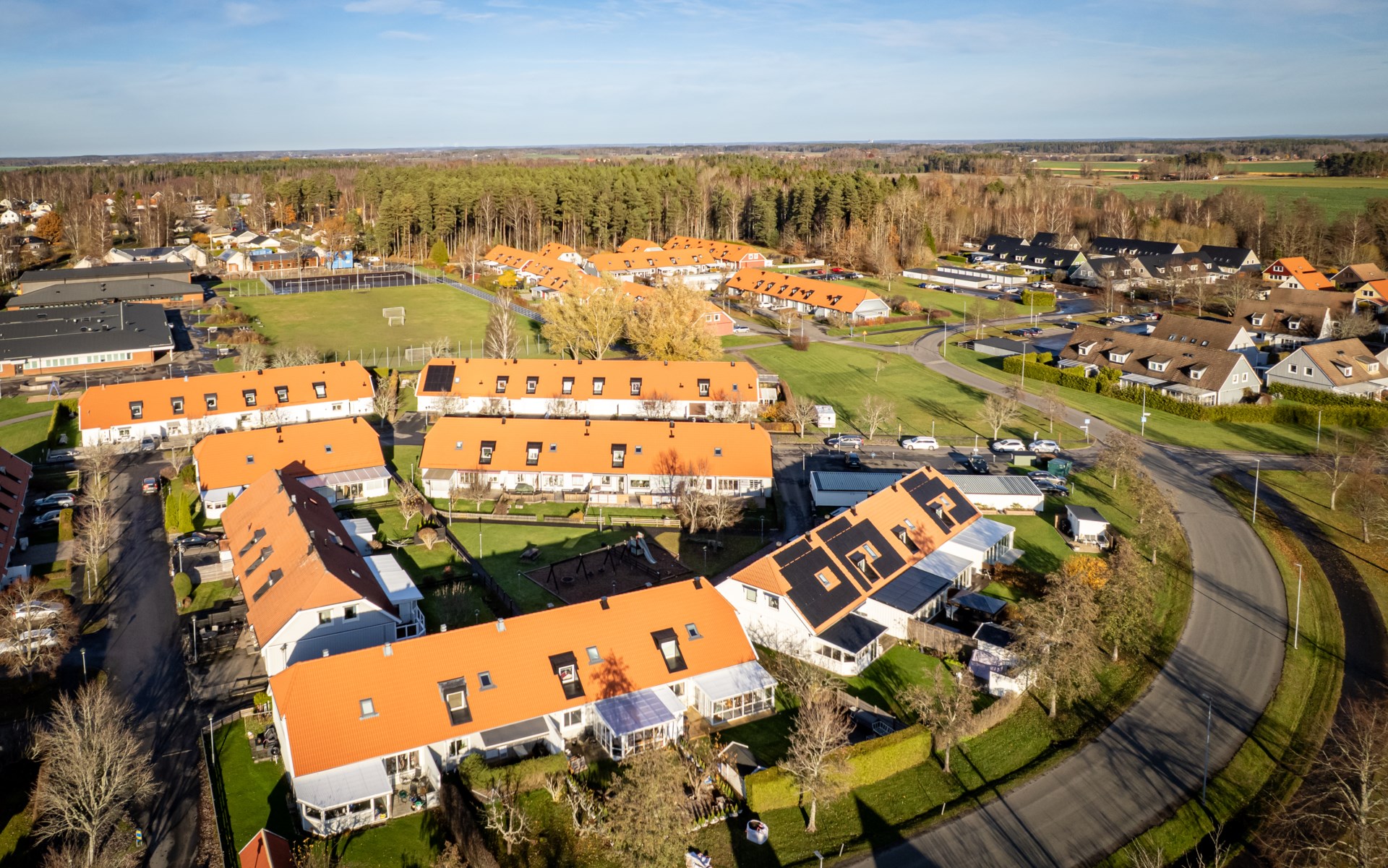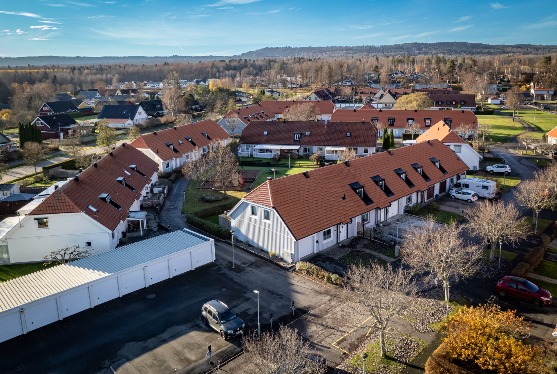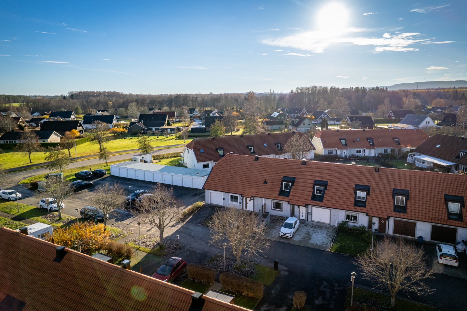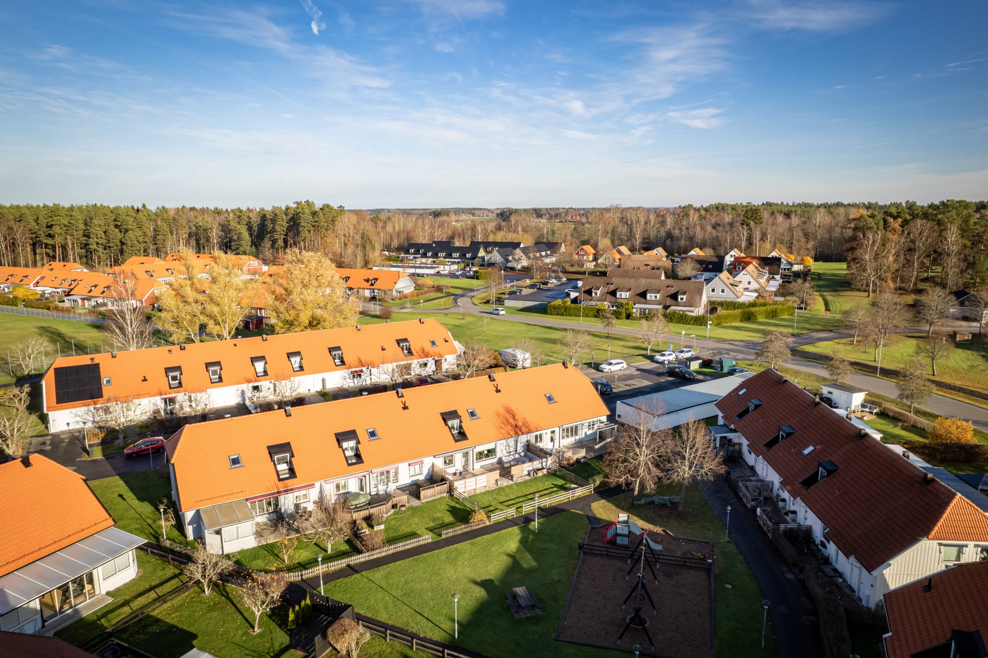 Välkommen till ett trivsamt och välskött radhus med perfekt läge för barnfamiljen! Här bor du bekvämt med genomgående fina färgval, ett renoverat kök och ett badrum från 2018, allt i ett hem som känns både modernt och ombonat.Radhuset har fyra sovrum i bra storlek och en planlösning som gör det enkelt att trivas tillsammans. Det renoverade köket bjuder in till vardagsmat och middagar i gott sällskap, och från vardagsrummet nås den stora altanen på baksidan, en härlig plats för sommarens grillkvällar och lek. Gavelläget ger ett extra ljusinsläpp och en känsla av rymd, samtidigt som tomten erbjuder fin avskildhet. Direkt bakom huset finns en lekplats, så barnen kan leka tryggt medan du har uppsikt från altanen.