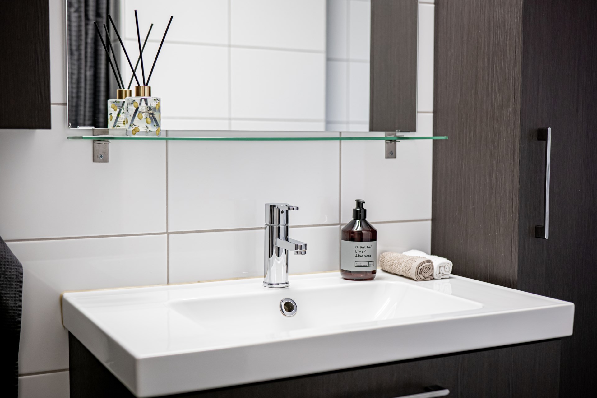 Det helkaklade badrummet är fräscht och lätt att trivas i, och från lägenheten når du den mysiga balkongen med utsikt mot Vasastans allé. Här kan du njuta av stilla morgnar, grönskan utanför och stadens liv i bakgrunden.