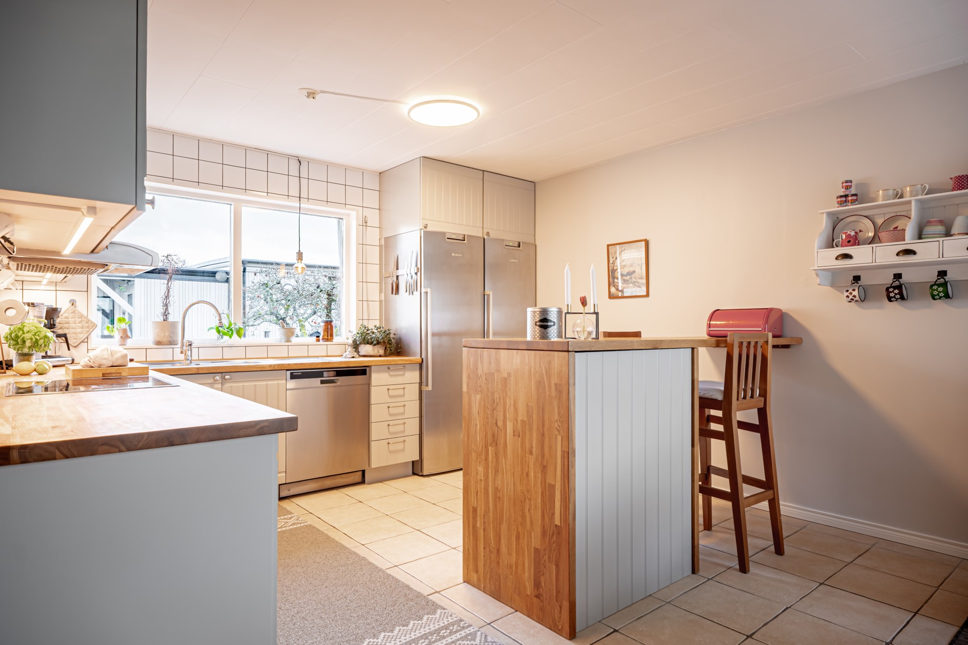 - Kök: Trivsamt kök med bra yta för matlagning. Köket är utrustat med spishäll, fläkt, ugn, diskmaskin samt kyl och frys i fullhöjd.