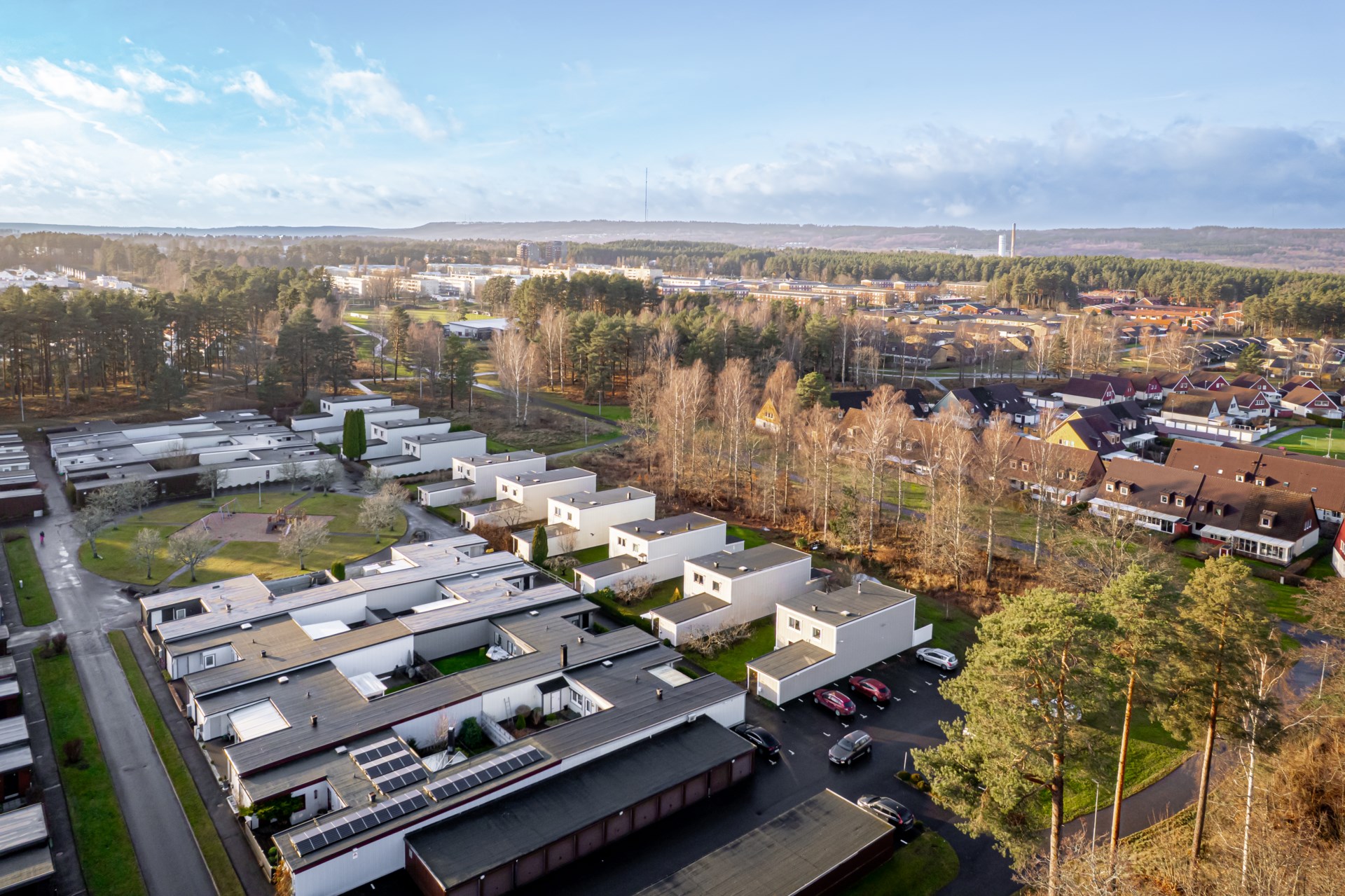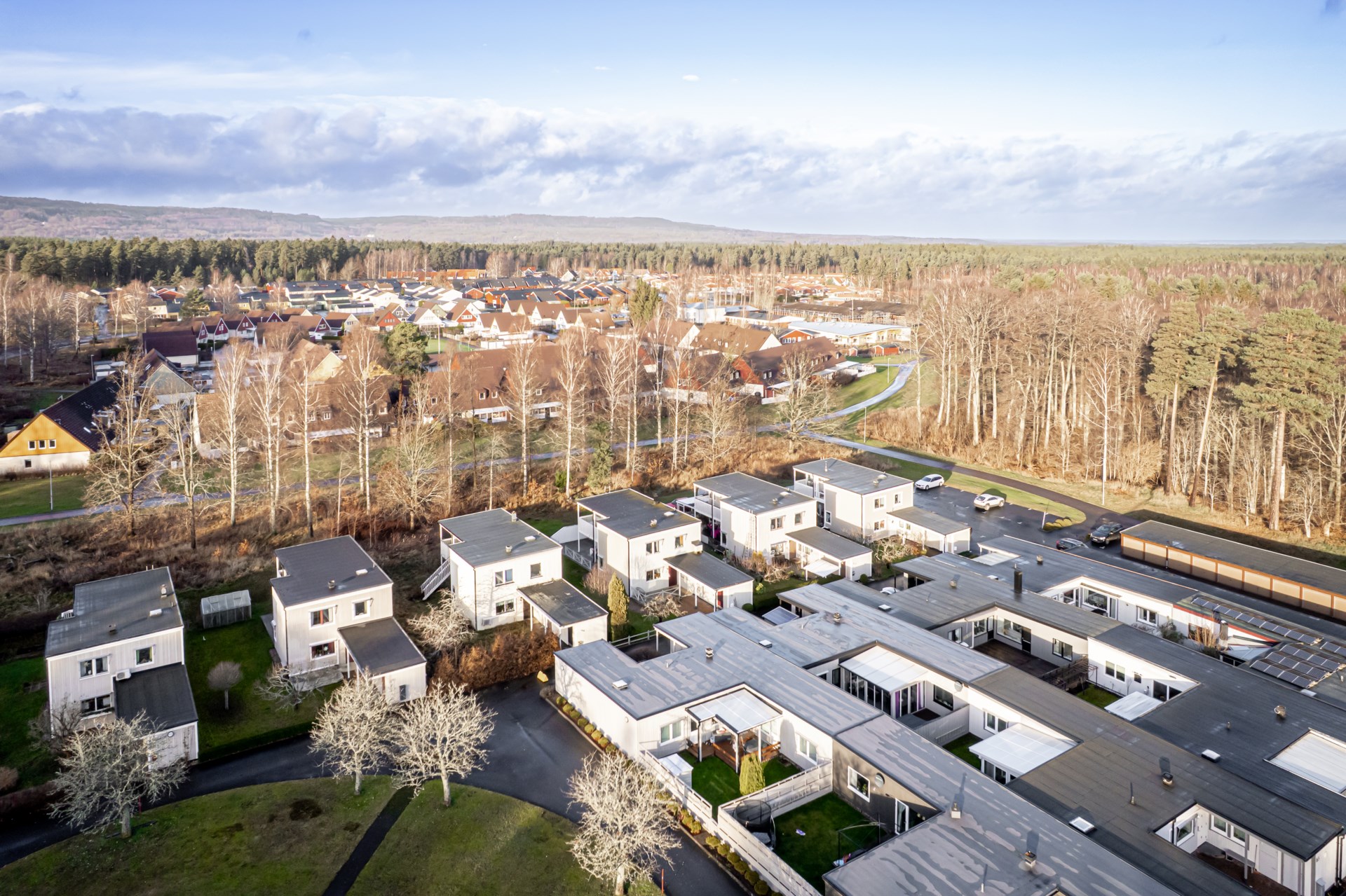 Området är barnvänligt och tryggt, med en bilfri gata där barnen får utrymme att leka fritt och ta sina första cykeltag i lugn och ro.