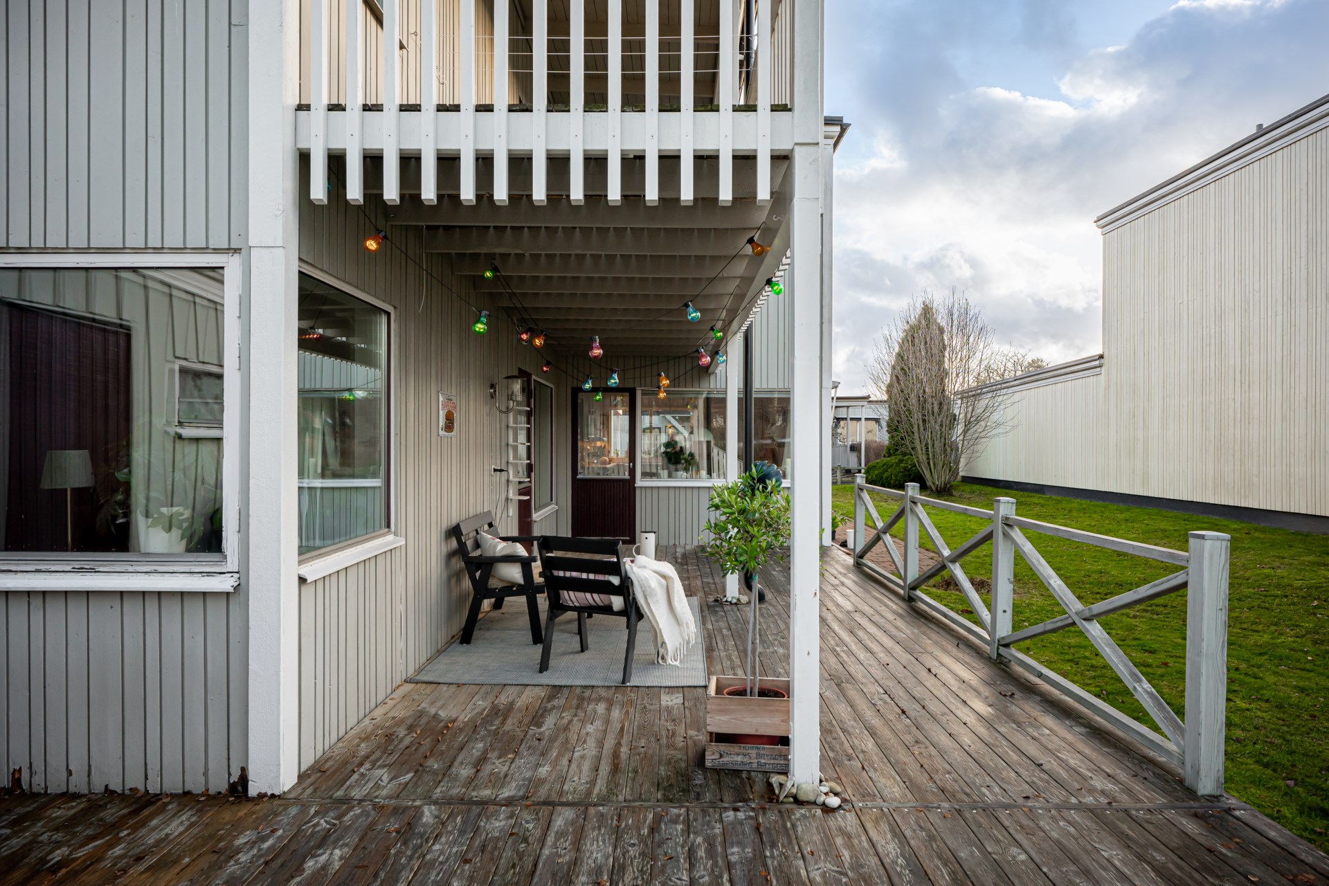 - Beskrivning uteplats: Till huset hör två härliga altaner. Den på framsidan erbjuder morgonsol och här njuter man gärna av en god kaffe på morgonen. Längs med huset har ni den andra uteplatsen där ni kan följa solens strålar under dagen tills kvällen kommer.
