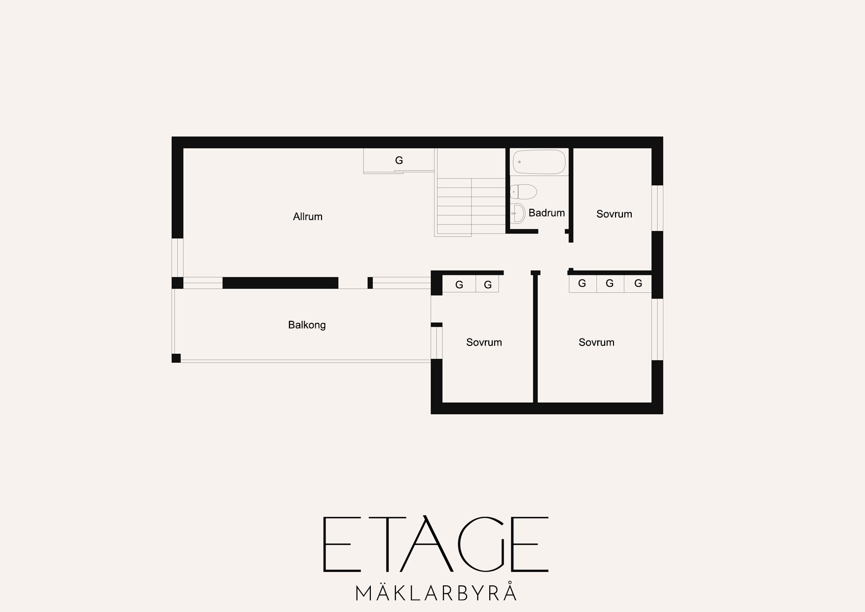 - Antal rum: 5, varav 3 sovrum
