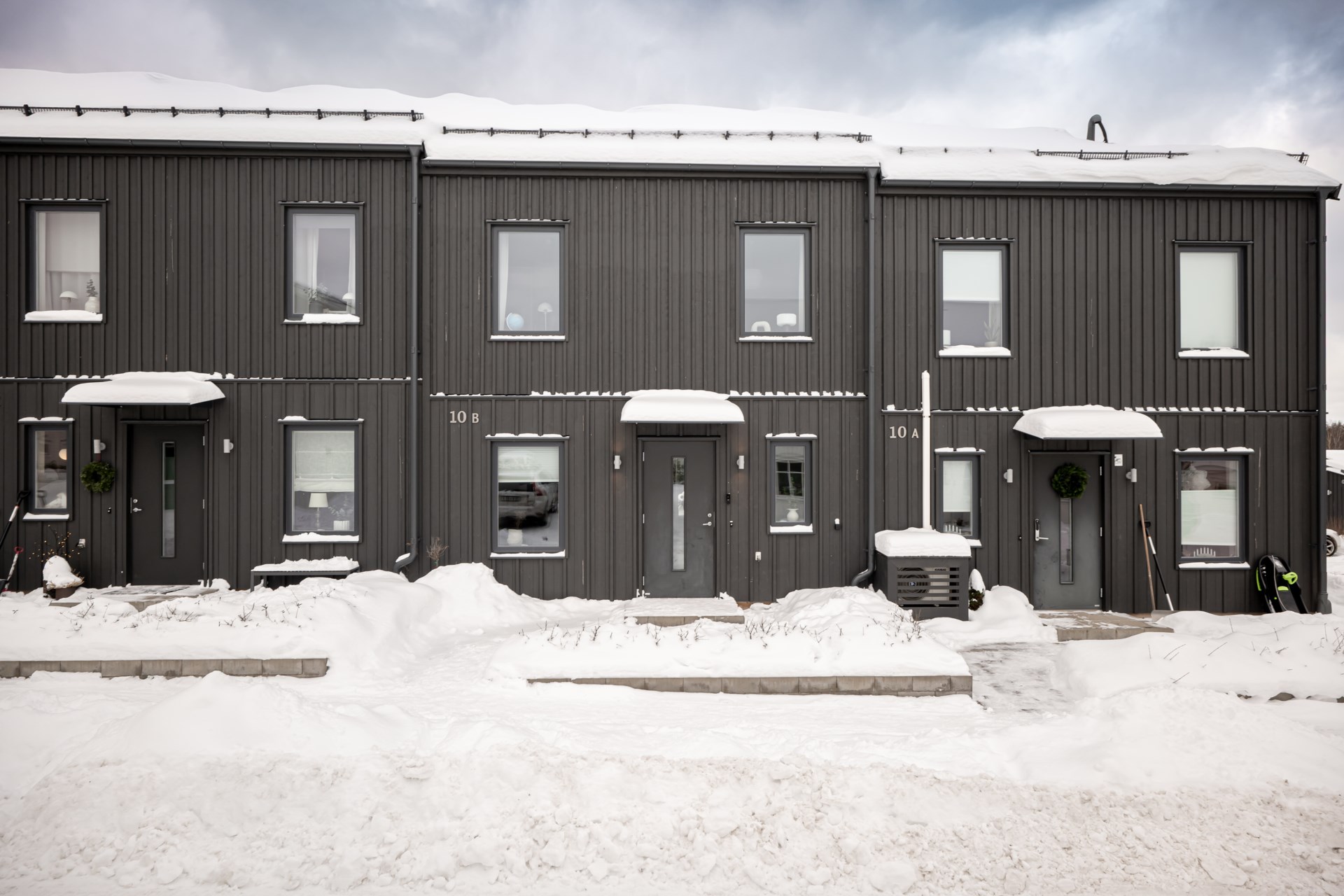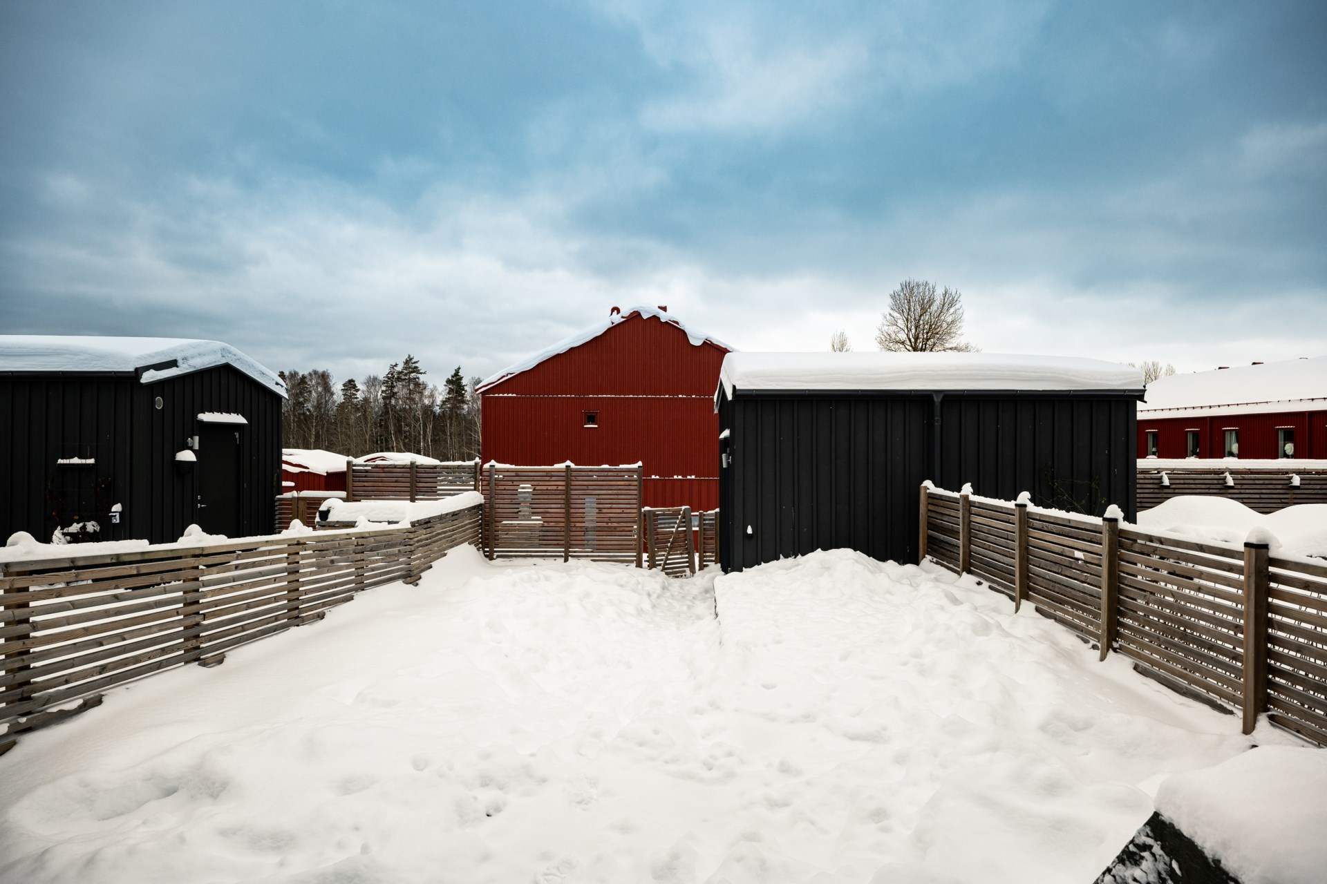 Föreningen höjde avgiften i september 2023. - Parkering: De mörka husen har en parkeringsplats var. De röda husen har två parkeringsplatser var utanför dörren.