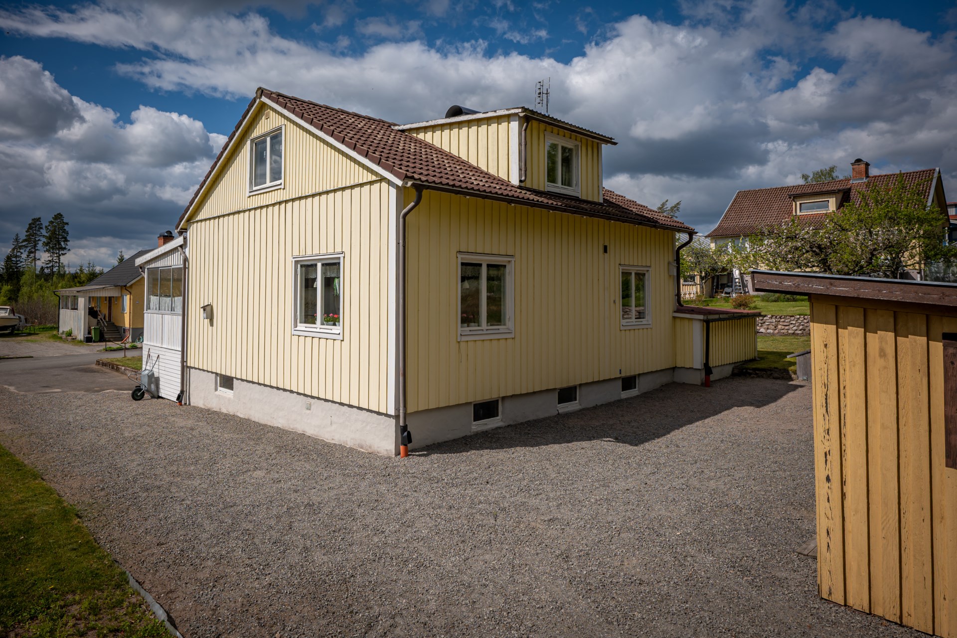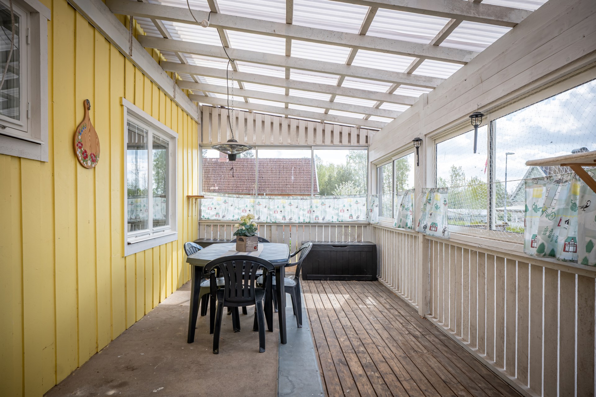Välkommen till detta trivsamma 1,5-planshus med källare – ett hem med charm, funktion och fina möjligheter! Här bor du i ett väl omhändertaget hus med generösa ytor för hela familjen och gott om plats för både vardag och fritid. Uppvärmningen sker via bergvärme, vilket ger både låga driftskostnader och ett behagligt inomhusklimat året om.Husets entréplan erbjuder ett hemtrevligt boende med välplanerade ytor och en härlig uteplats under tak – perfekt för långa middagar, sommarfrukostar eller regniga dagar när man vill sitta ute men ändå skyddat.