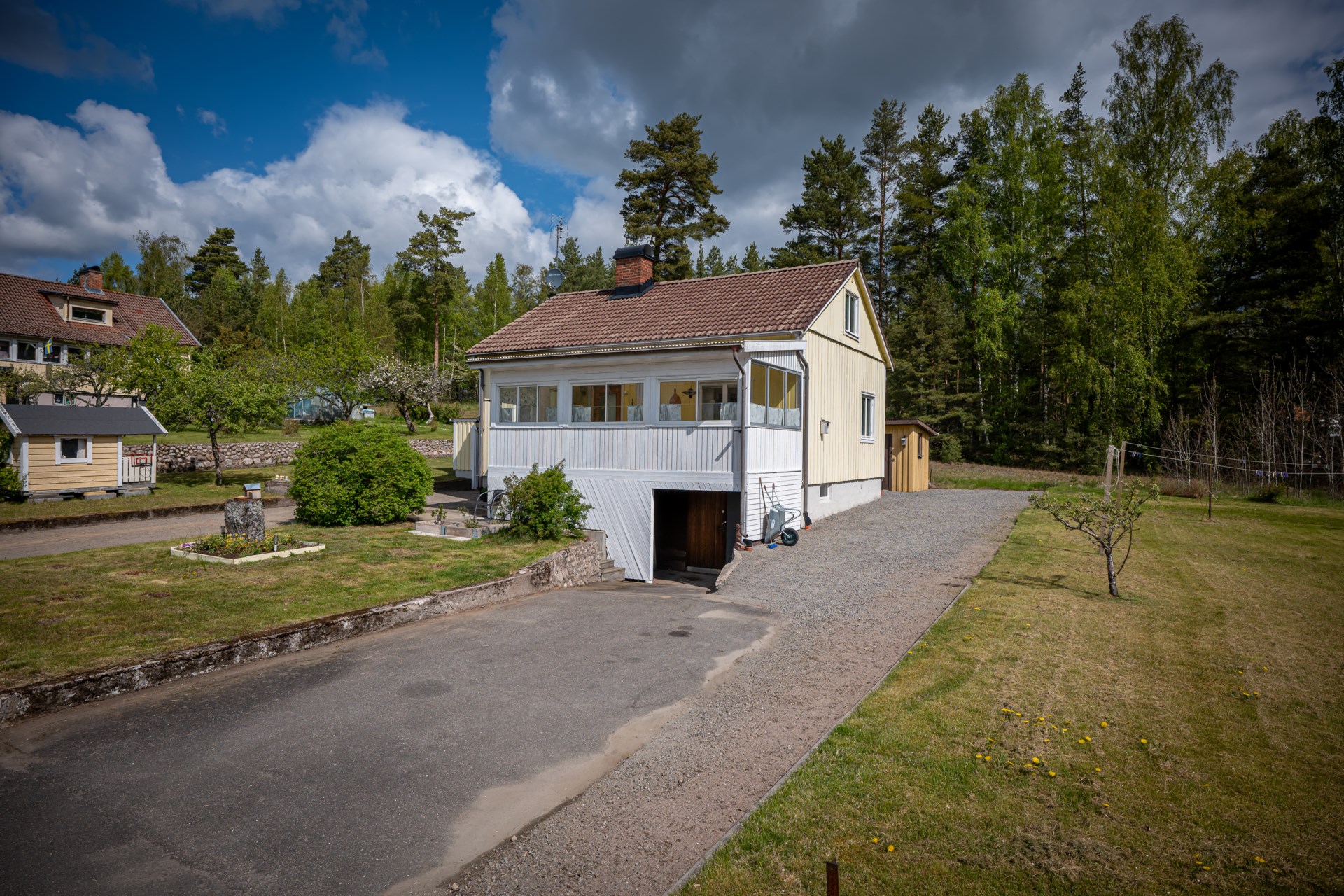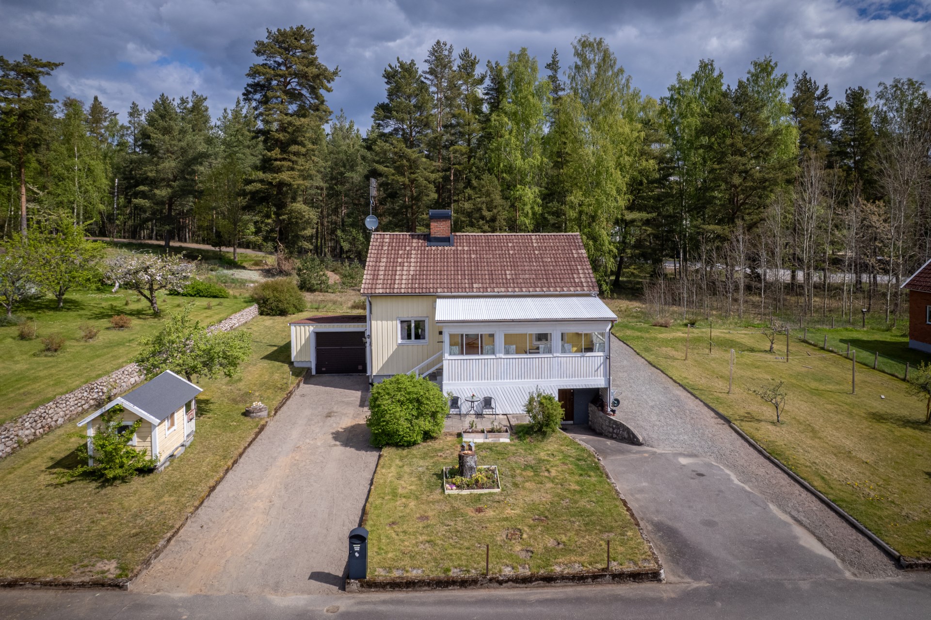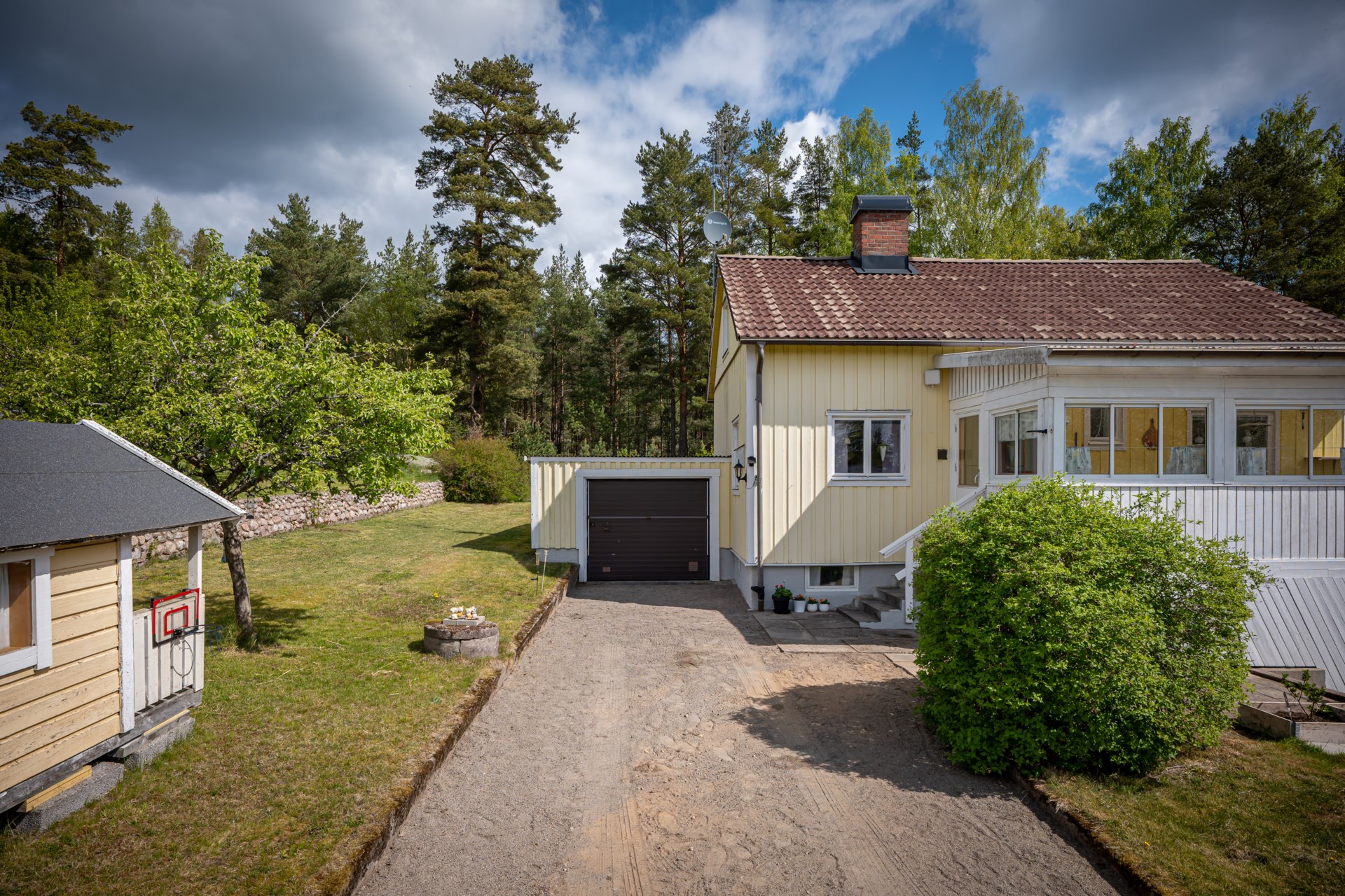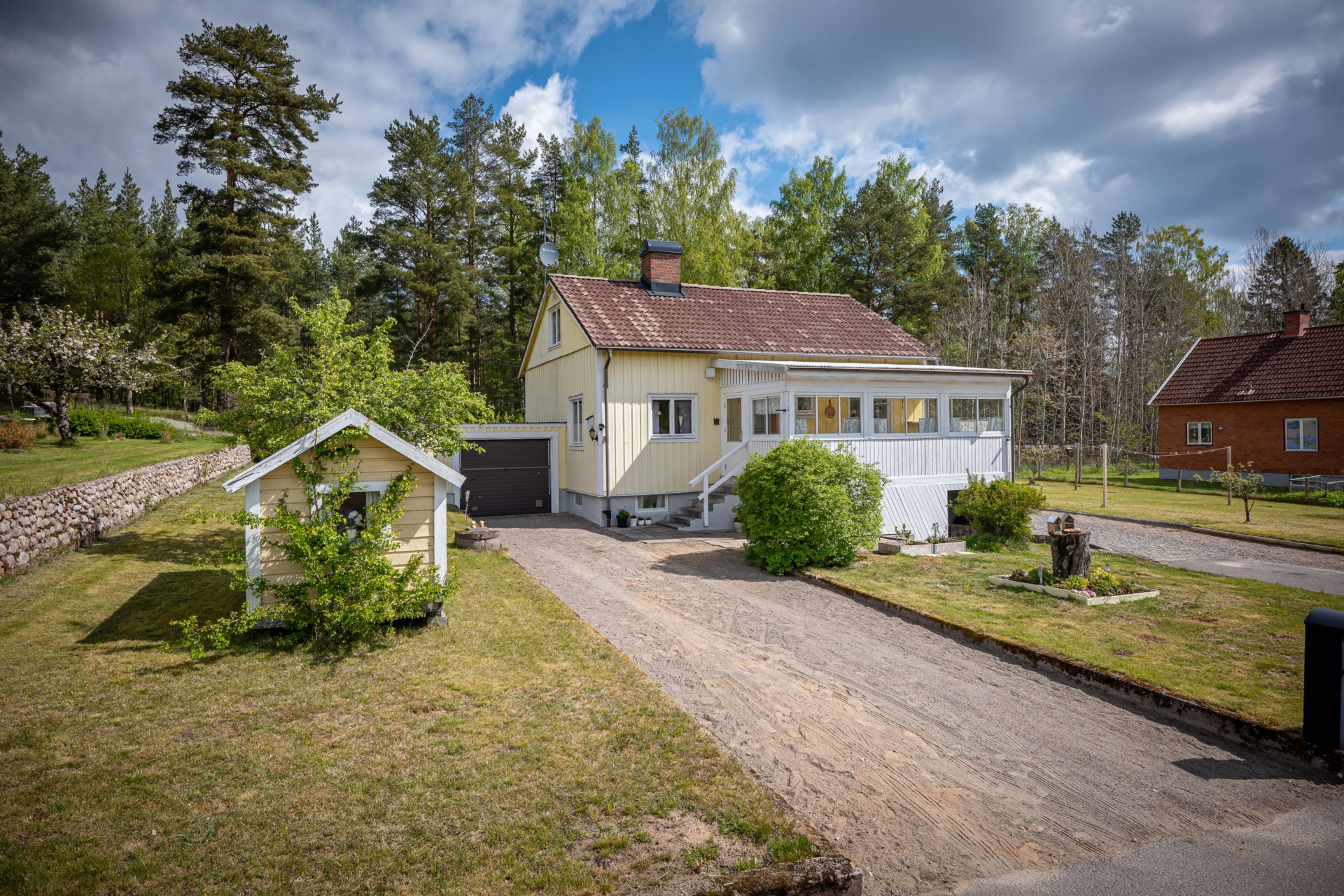Till huset hör även ett praktiskt garage som ger både trygg parkering och extra utrymme.