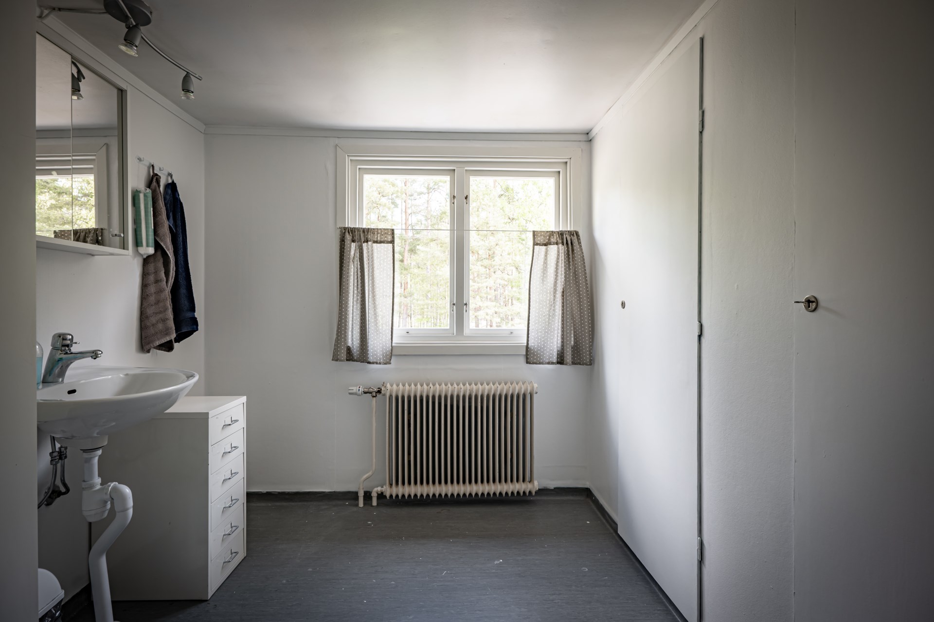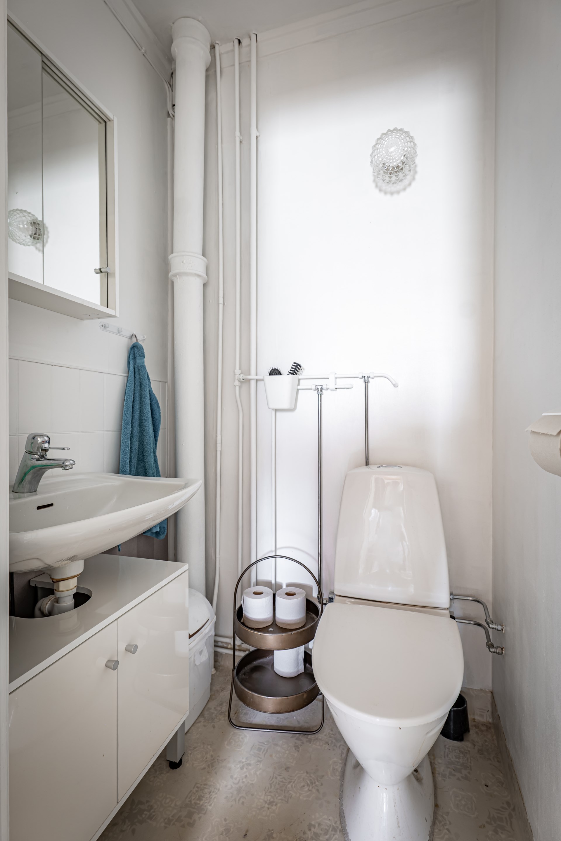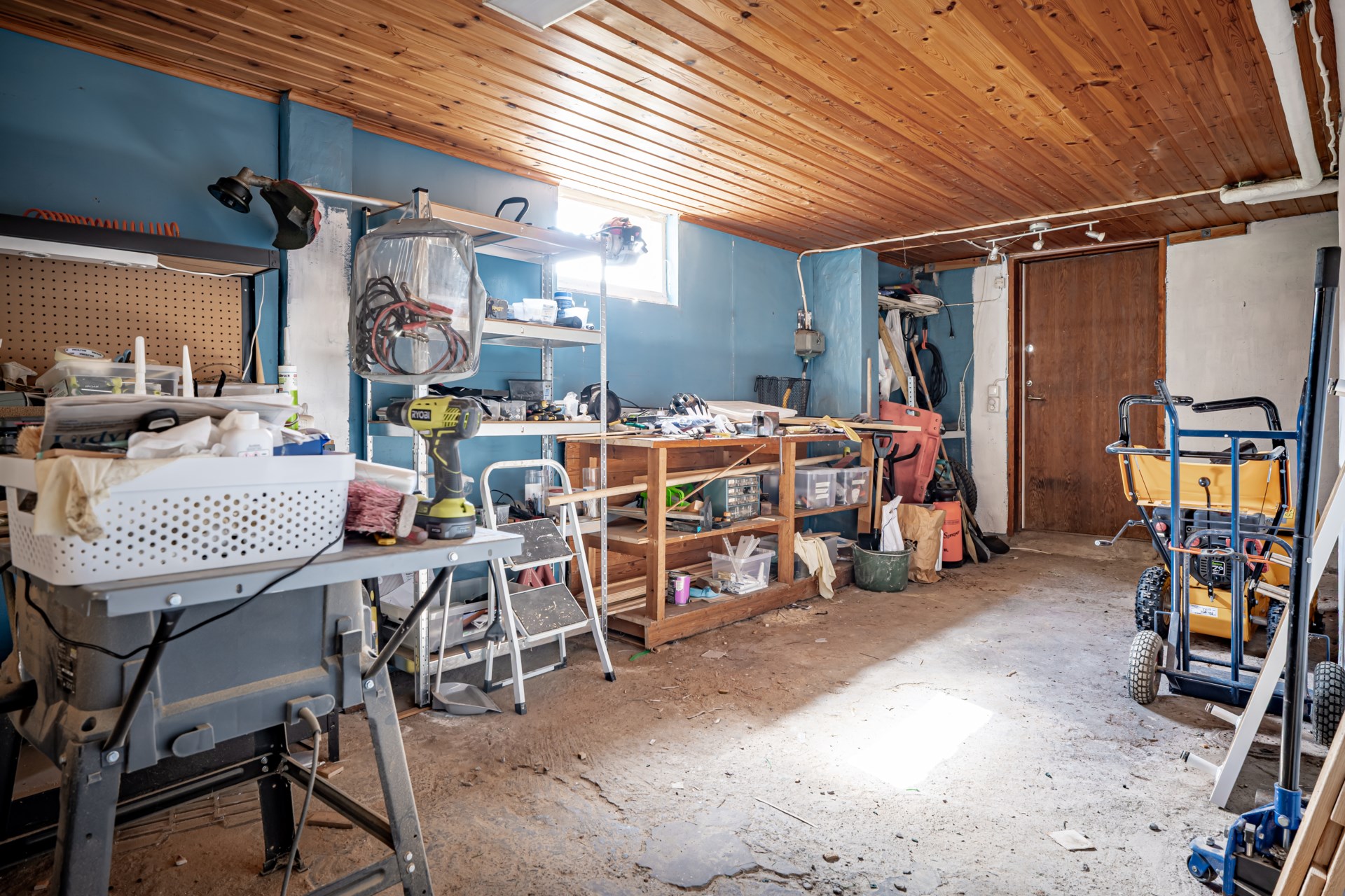 - Tvättstuga: Tvättstugan är belägen i källaren och här ar ni tvättmaskin, tvätthos samt skåp för förvaring. I tvättstugan finns även gott om plats att hänga upp tvätt.