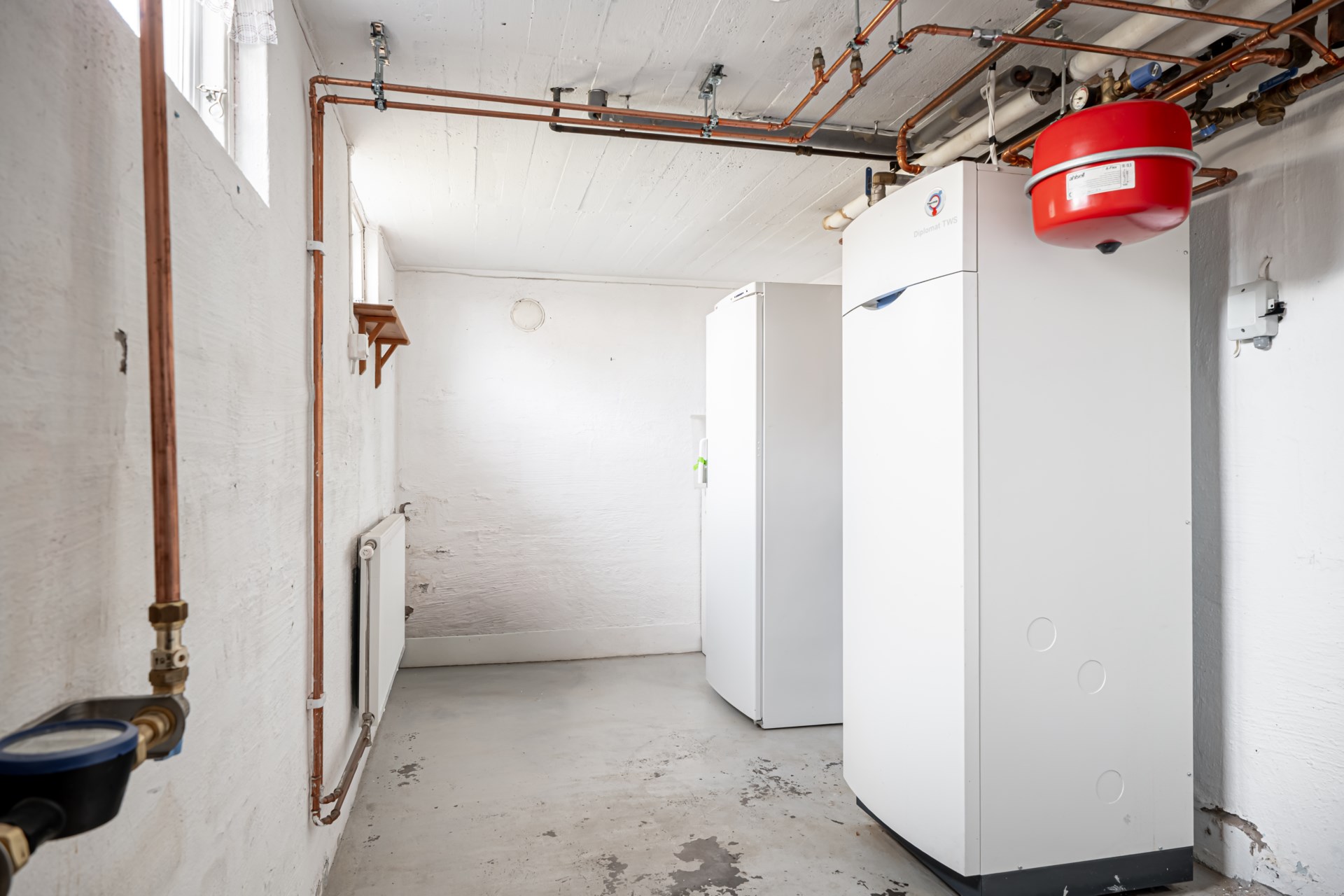 I husets nedre plan finns gott om praktiska utrymmen. Här finns en tvättstuga med arbetsytor och tvättmöjligheter, pannrum samt flera förrådsutrymmen som ger utmärkta förvaringsmöjligheter.