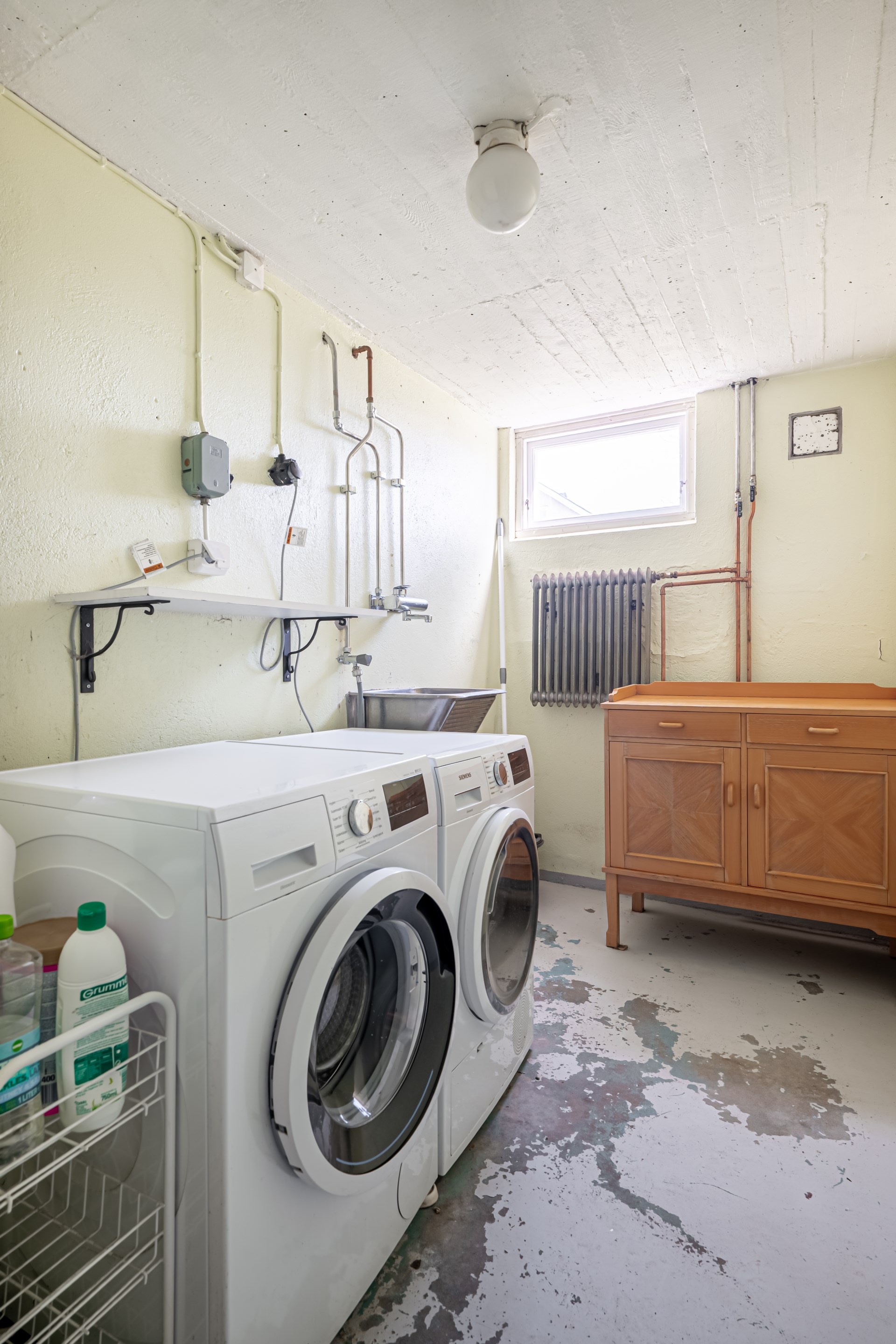 - Tvättstuga: I källaren finns en tvättstuga med tvättmaskin och torktumlare.