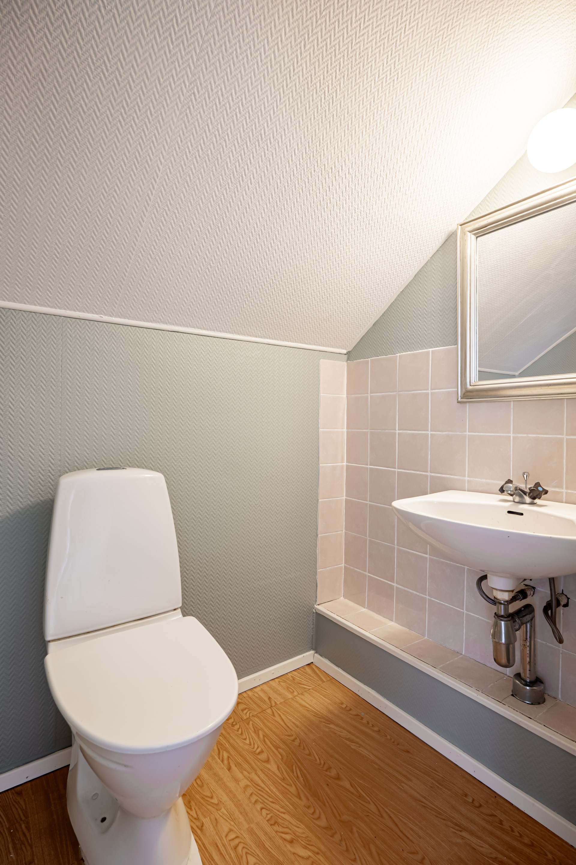 - WC: På övre plan finns en WC praktiskt placerad vid sovrummen, här finns toalett och handfat.