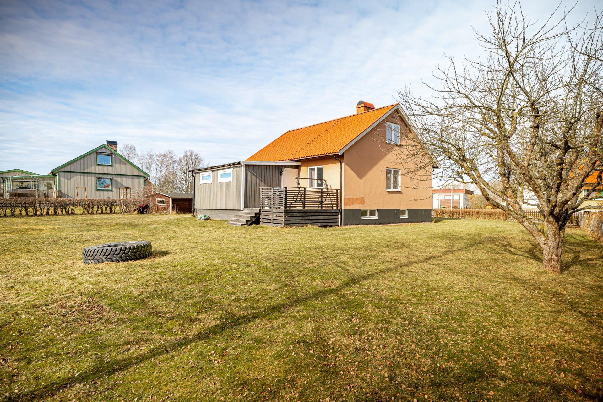 - Övrigt tomt: Från huset når du altanen med plats för grillen och från altanen tar ni er ner till trädgården. Här finns en härlig gräsyta med plats för barnens lek.