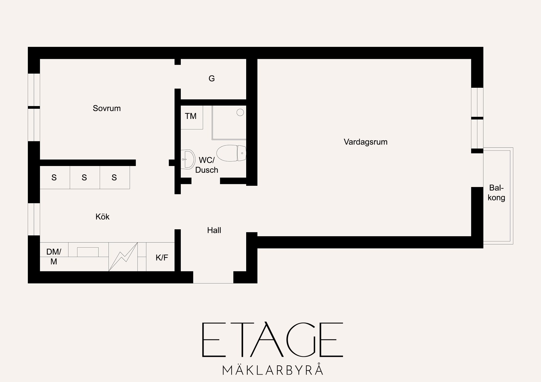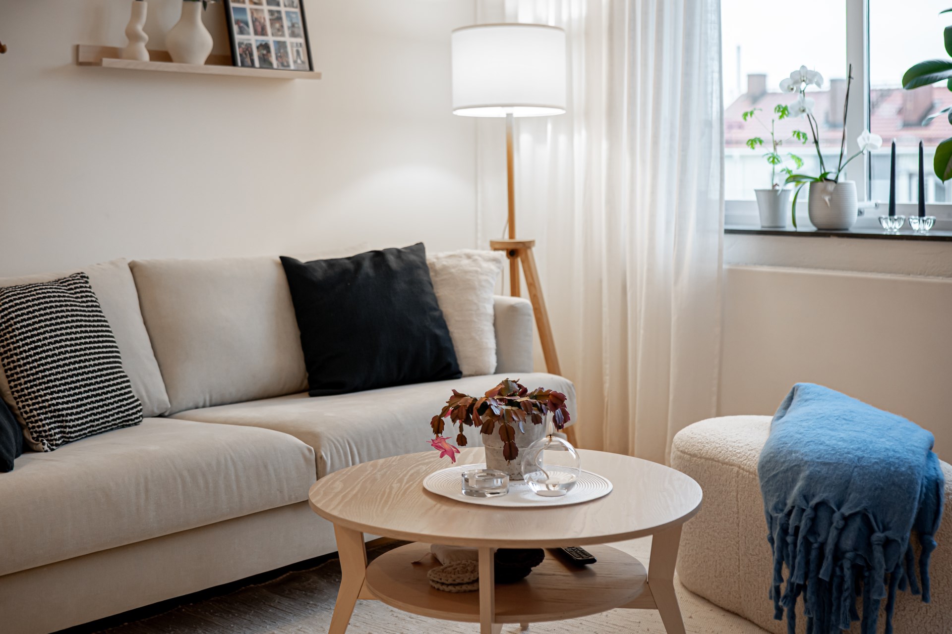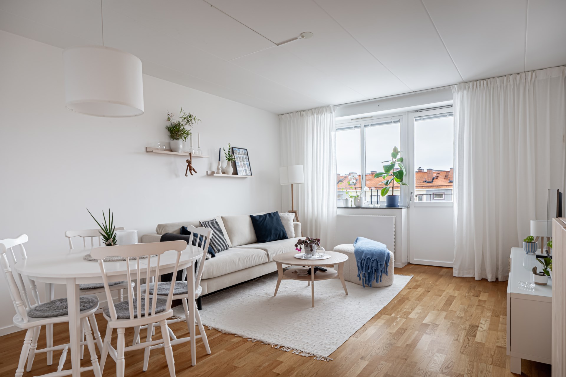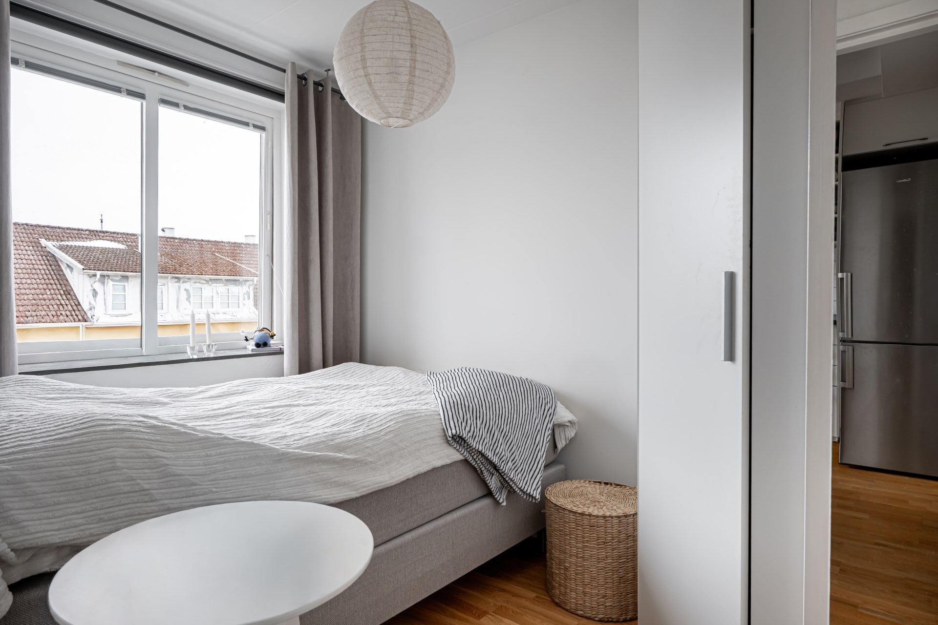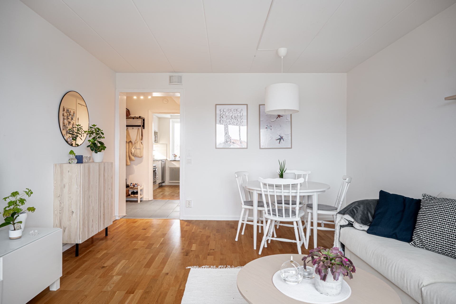 Sovrummet ligger smart placerat innanför köket och rymmer enkelt säng samt erbjuder bra förvaring för kläder. Vardagsrummet har en generös storlek med fint ljusinsläpp från fönsterpartiet mot balkongen. Här finns gott om plats för både soffa och matbord, perfekt för såväl hemmakvällar som middagar med vänner.