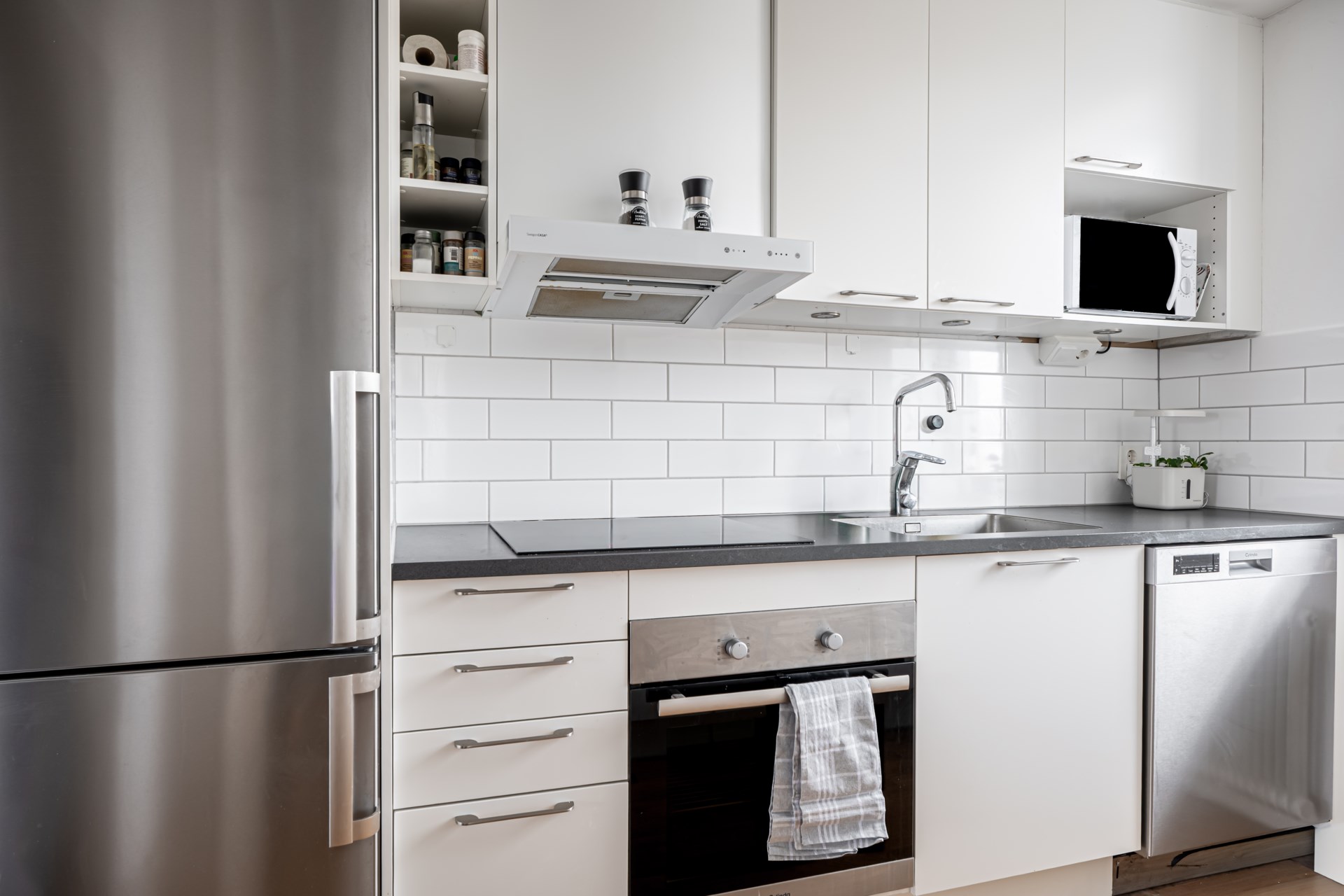 - Kök: Fint och ljust HTH-kök från 2018 med vita köksluckor. Köket är utrustat med induktionshäll, fläkt, diskmaskin, varmluftsugn samt kyl/frys. Samtliga vitvaror är i rostfritt.