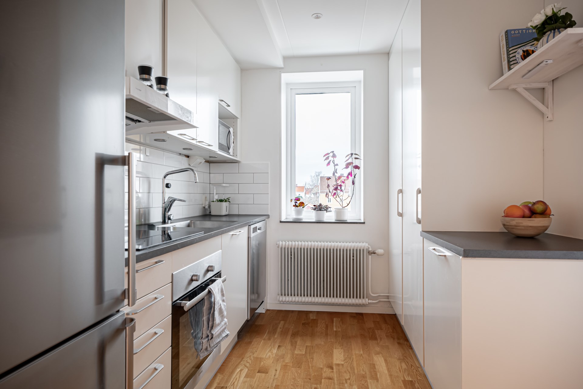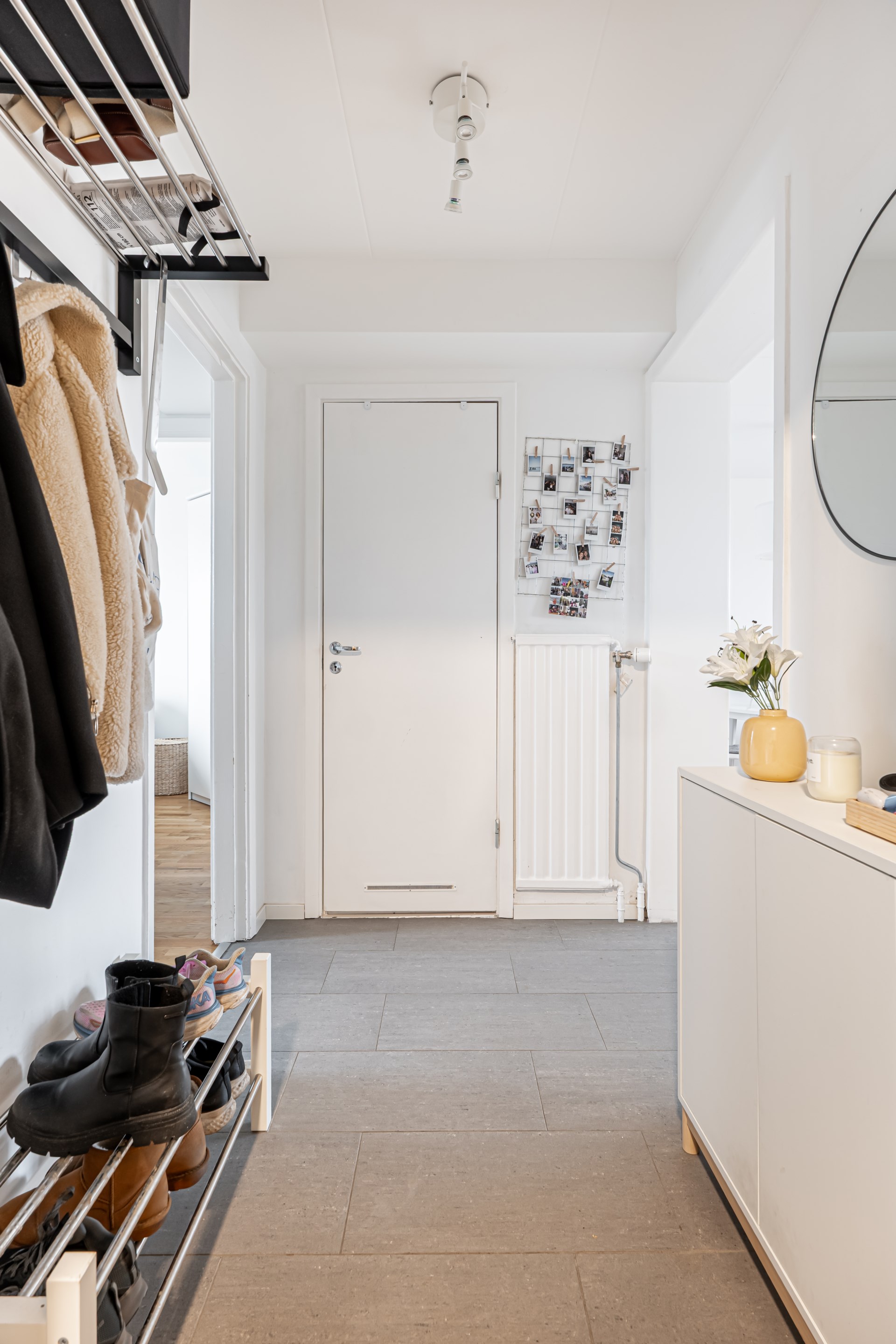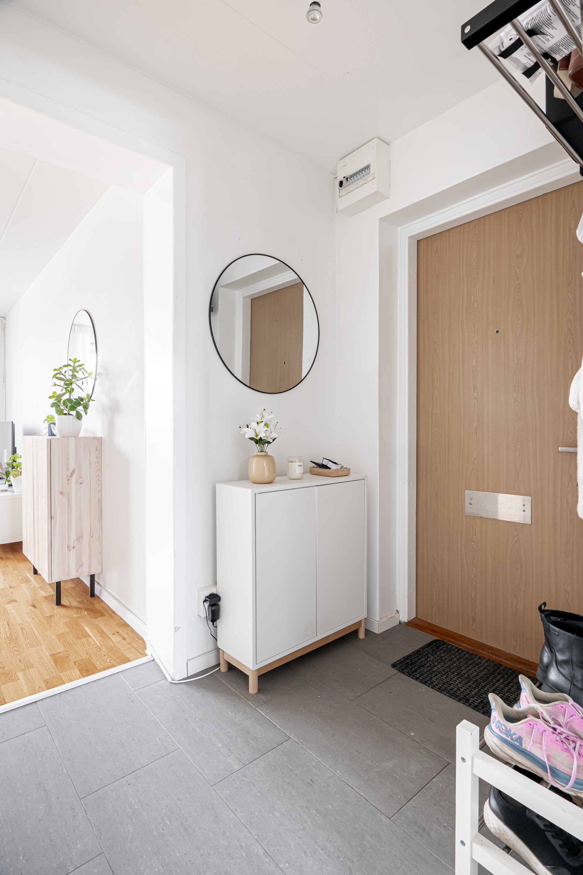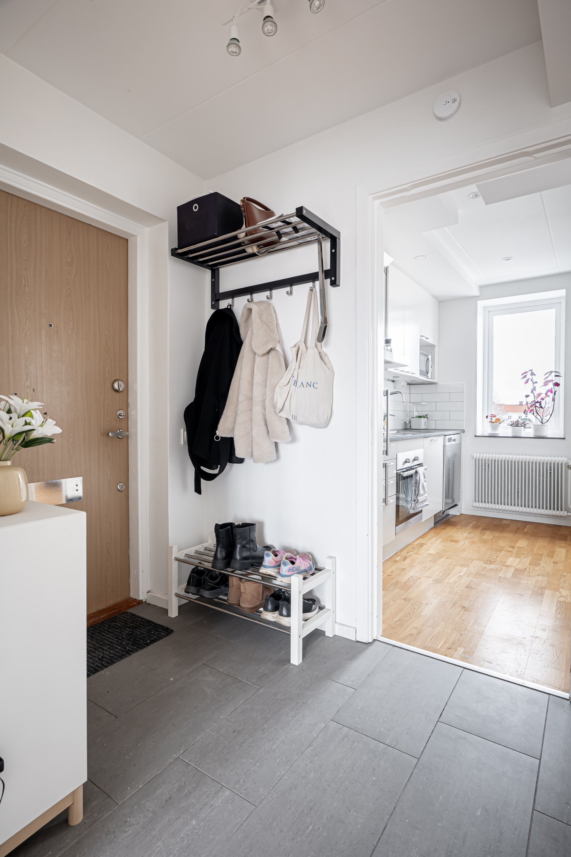 - Allmän beskrivning: Lägenheten genomgick en totalrenovering 2018 och det märks direkt när du kliver in. Hallen välkomnar med vita väggar och klinkergolv. Rakt fram når du det helkaklade badrummet badrummet och till vänster öppnar köket upp sig.