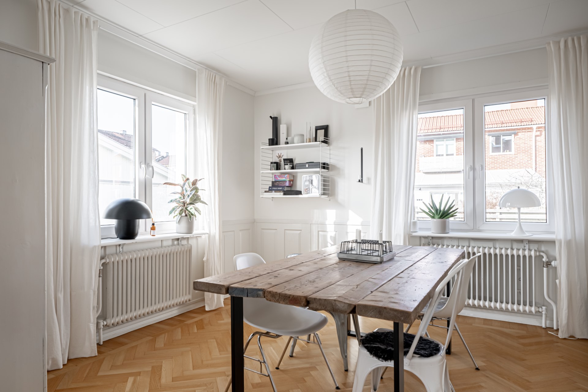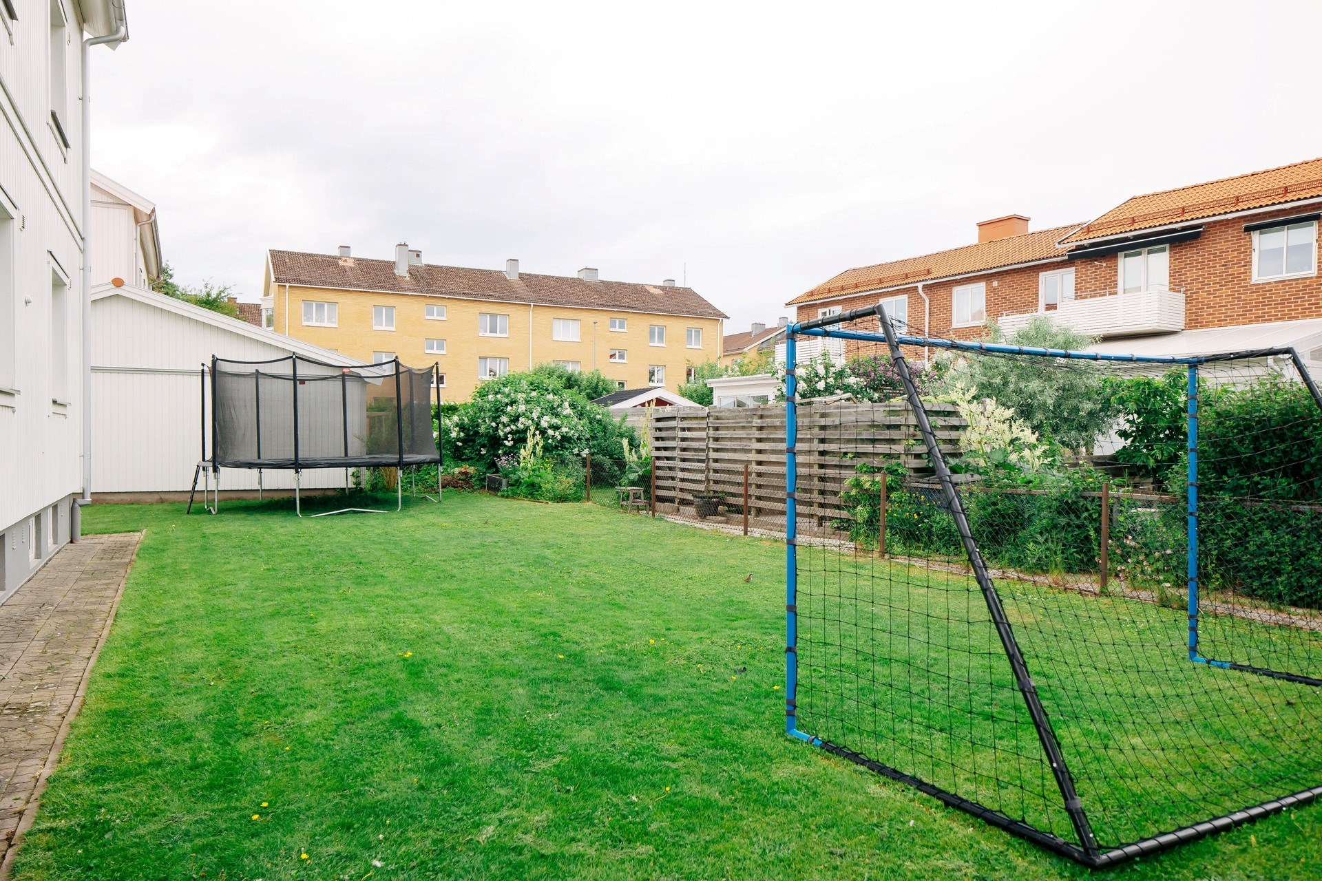 Välkommen till ett sällsynt tillfälle mitt på Norrmalm, en vacker och gediget renoverad fastighet med ett attraktivt läge och stora möjligheter! Här erbjuds idag två smakfullt renoverade lägenheter, smart fördelade med en bostad per plan samt ett charmigt vindsutrymme. De två lägenheterna disponeras om generösa fyra rum och kök med fina ljusinsläpp, välplanerade ytor och en bra standard som tilltalar både boende och hyresgäster. Huset lämpar sig även utmärkt som en rymlig enfamiljsbostad, med generösa ytor som ger gott om plats för hela familjen.Den lummiga trädgården är en grön oas mitt i stan, med uppvuxna fruktträd och flera fina uteplatser som bjuder in till både avkoppling och sociala stunder. Här kan du njuta av solen, odla, umgås eller bara landa i en lugn miljö, trots det centrala läget. Fastigheten är belägen på attraktiva Norrmalm, på en lugn och trivsam gata med ett optimalt läge mellan centrum och Elins Esplanad. Här bor du med bekvämt gång- och cykelavstånd till centrum, shopping, restauranger och service, ett läge som alltid är efterfrågat.