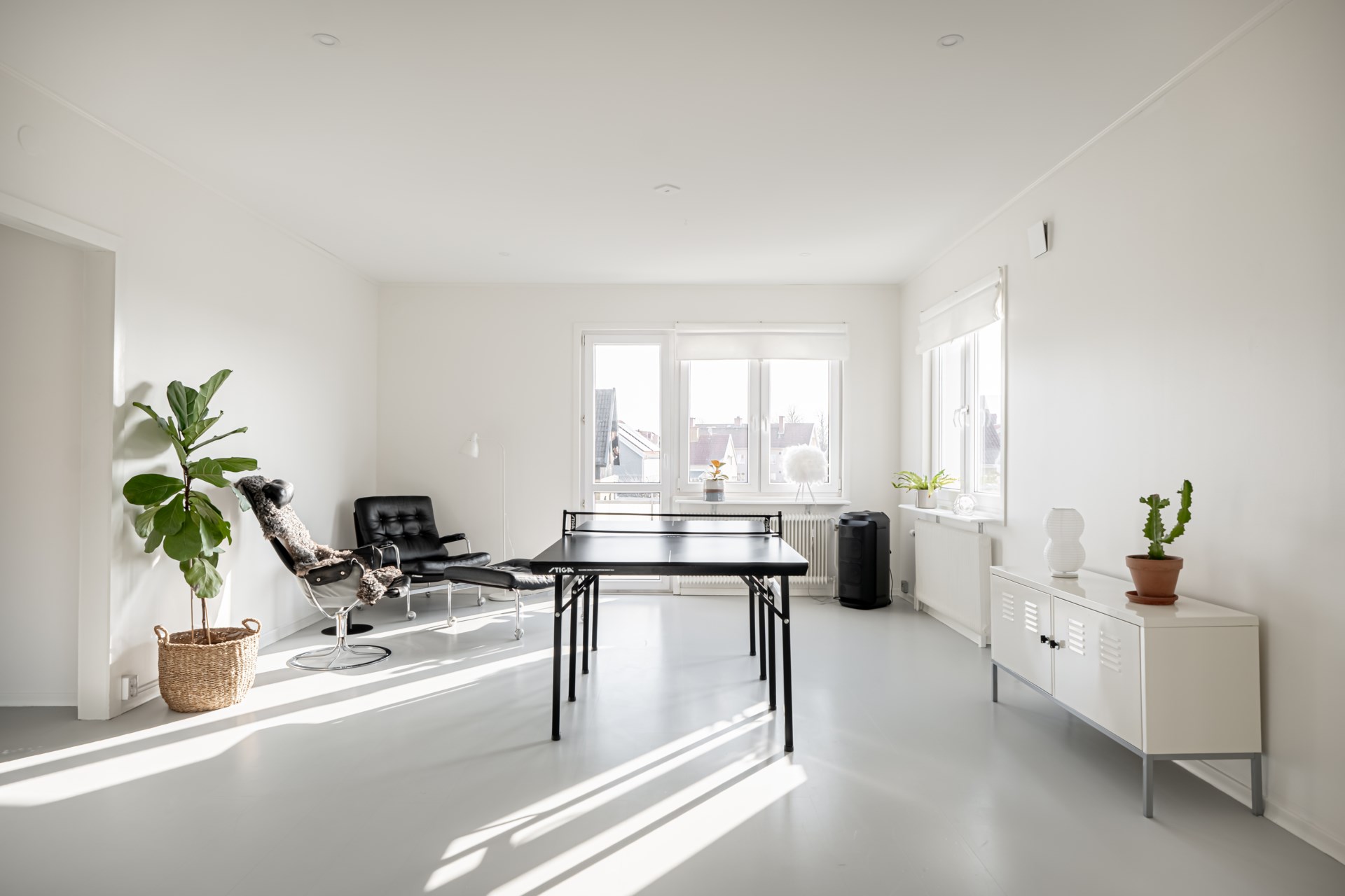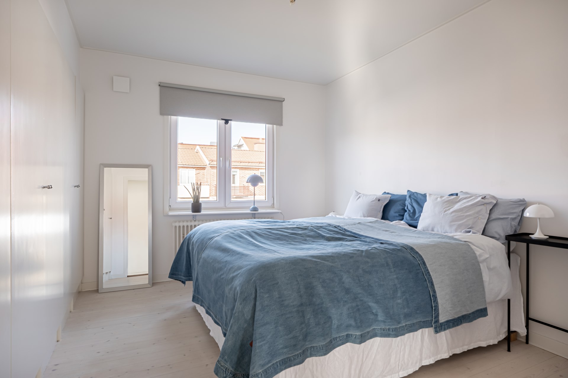 - Våning 2: På våning två välkomnas du till en trivsam och välplanerad lägenhet med en inbjudande atmosfär. Här möts du av två sovrum i ljusa, harmoniska toner som skapar en lugn och rofylld känsla. Det generösa vardagsrummet erbjuder gott om plats för både soffgrupp och en rymlig matplats. Här finns alla förutsättningar för sociala stunder och långa, trevliga middagar med familj och vänner. De öppna ytorna gör det enkelt att möblera efter egen smak och skapa en naturlig samlingspunkt i hemmet. Köket är smakfullt renoverat och erbjuder bra arbetsytor samt plats för matbord – en självklar plats för frukostar i vardagen såväl som middagsförberedelser inför helgens gäster. Lägenheten rymmer även ett helkaklat badrum