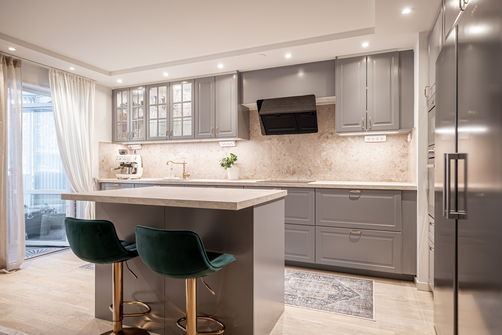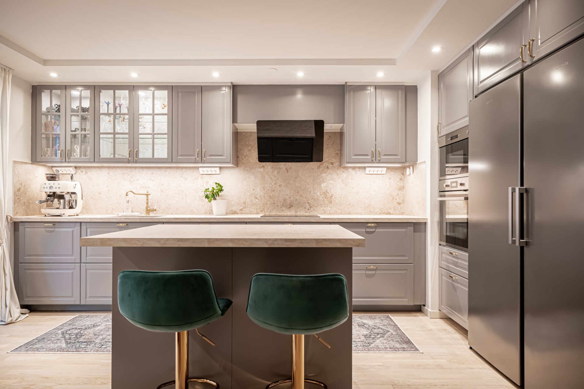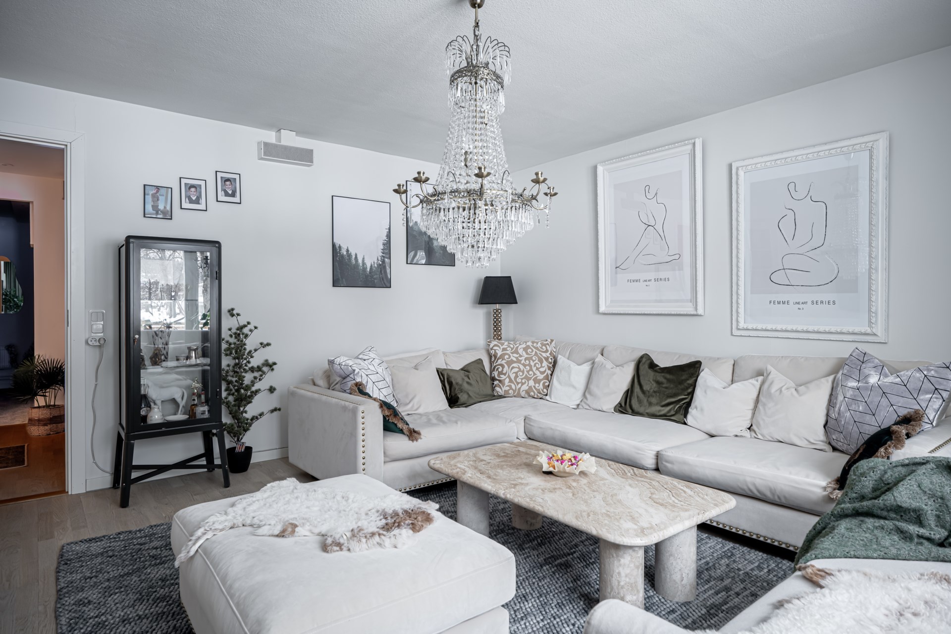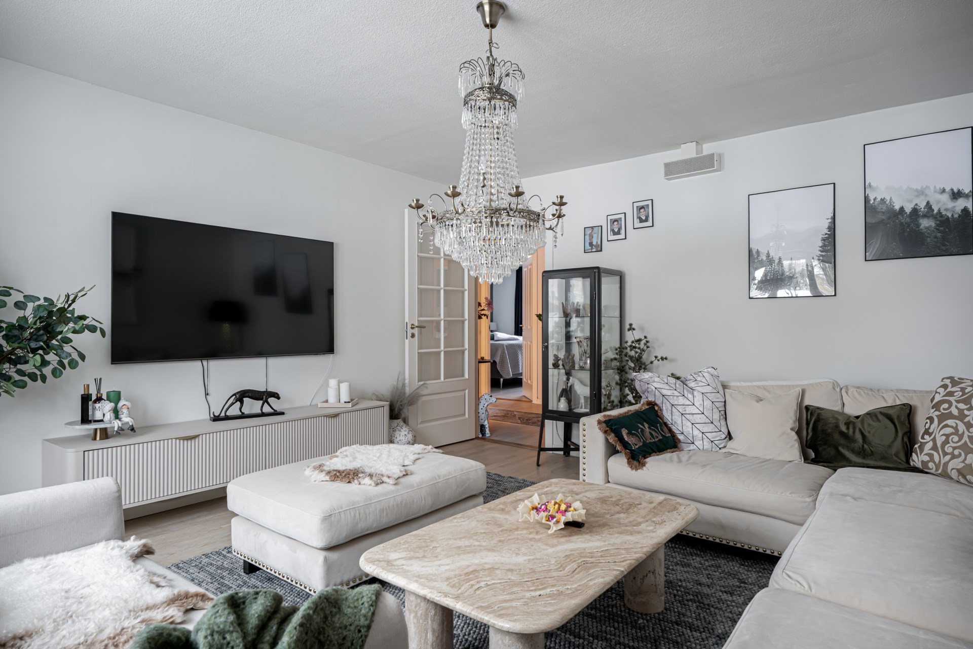 Rakt fram från hallen nås det renoverade badrummet, medan det inbjudande köket ligger till vänster och bjuder in till både vardag och matlagning. På hallens vänstra sida öppnar det rymliga vardagsrummet upp sig, lättmöblerat med plats för både soffgrupp och tv-möbel. På motsatt sida av hallen finner ni sovrummet, som rymmer en dubbelsäng och kompletteras av garderober längs ena väggen för extra förvaring. En genomtänkt bostad med fina ytor och ett trivsamt helhetsintryck. - Kök: Köket är rymligt och fint renoverat, här blir hela veckans matlagning en fröjd. Köket har bra ytor för matlagningen och förvaring tack vare köksön. Köket är utrustat med spishäll, fläkt, integrerad diskmaskin, inbyggd ugn och micro samt kyl och frys i fullhöjd. Från köket har ni utgång till det inglasade uterummet och trädäcket.