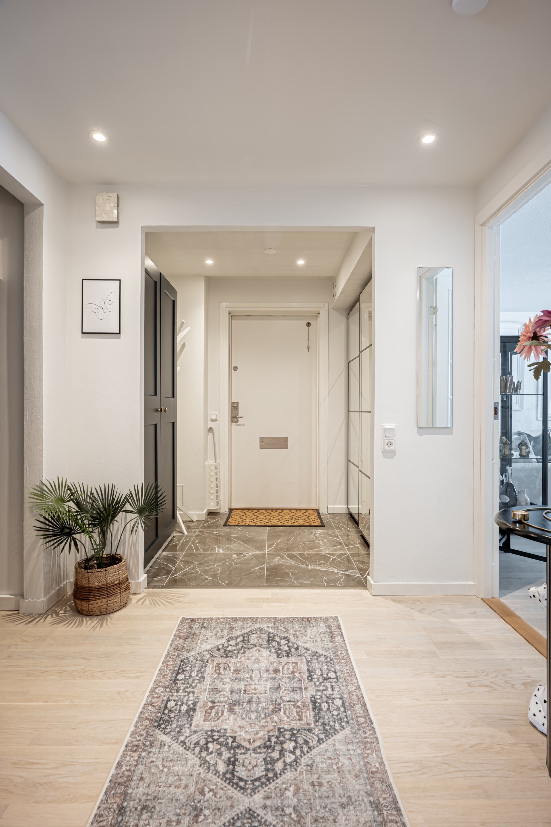 - Allmän beskrivning: Välkomna in i denna välplanerade och smakfullt renoverade tvåa. Redan i hallen möts ni av ett praktiskt klinkergolv som på ett fint sätt övergår i ett enhetligt och ljust parkettgolv som löper vidare genom hela lägenheten och skapar ett harmoniskt intryck. Hallen erbjuder mycket goda förvaringsmöjligheter med både skjutdörrsgarderob och två garderober. Längre in i bostaden finns dessutom en rymlig klädkammare, idag inredd med garderober längs ena väggen, perfekt för den som uppskattar ordning och struktur.