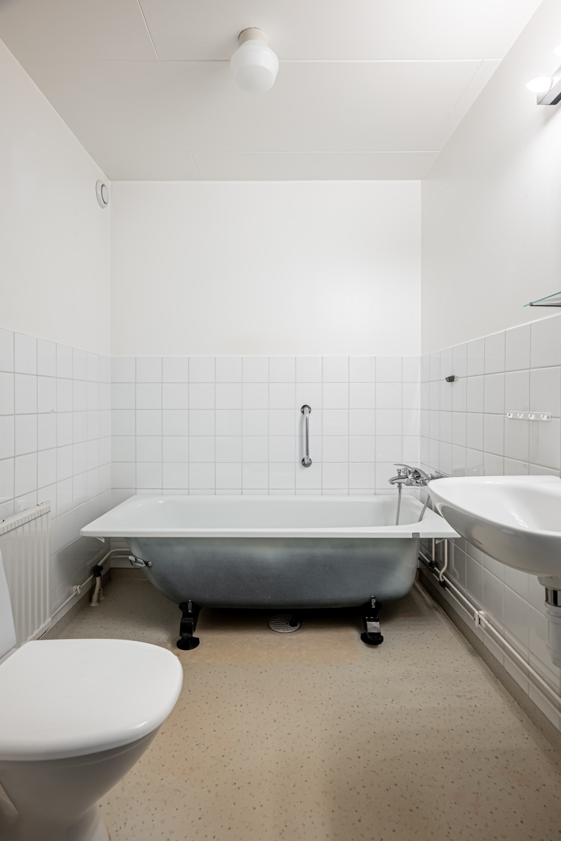 • Badrum: Badrummet på övre plan är praktiskt placerat vid sovrummen. I badrummet har ni toalett, handfat och badkar.