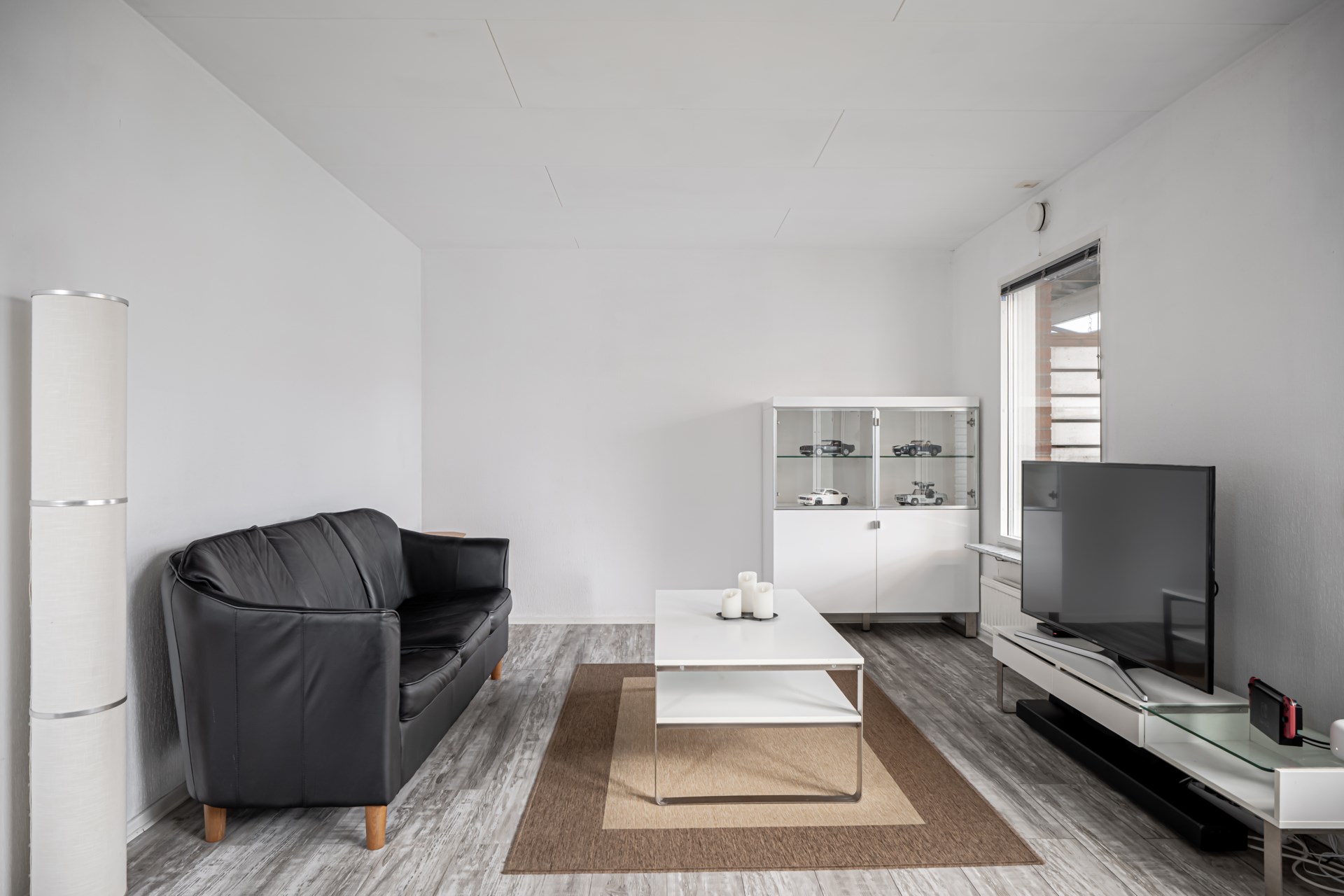 Vidare in i huset öppnar planlösningen upp sig med ett stort och socialt vardagsrum. Här finns generösa ytor för både soffgrupp och matsalsmöblemang. Från vardagsrummet nås dessutom uteplatsen och den egna trädgården.