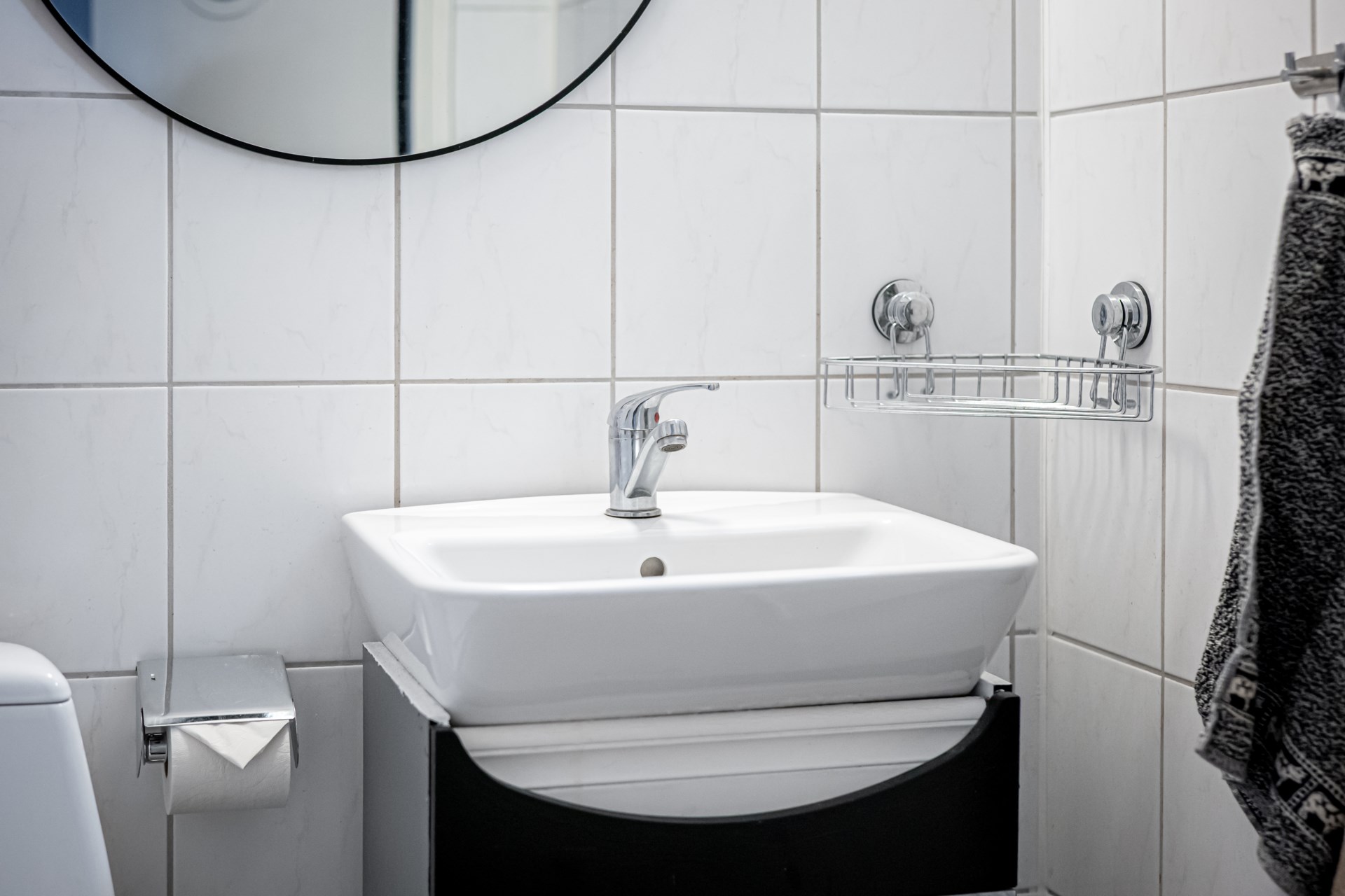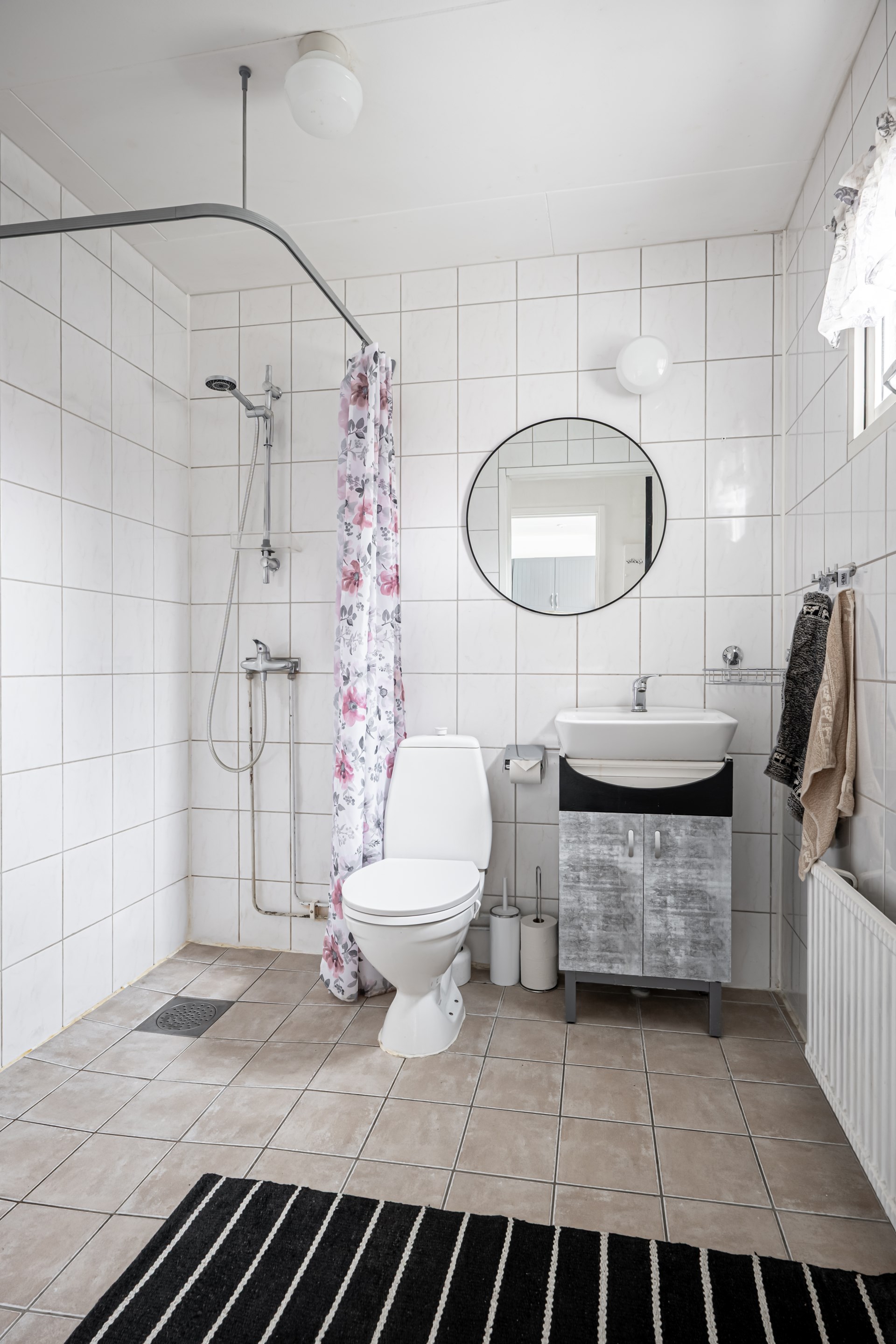 • Badrum: Badrum med kaklade väggar och klinker på golvet. I badrummet har ni toalett, kommod och dusch.