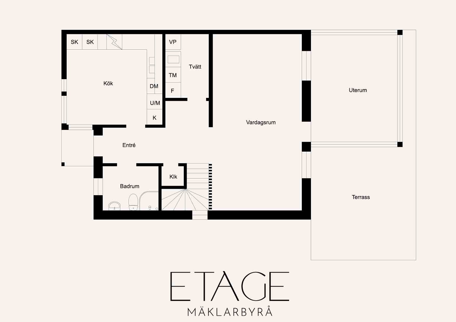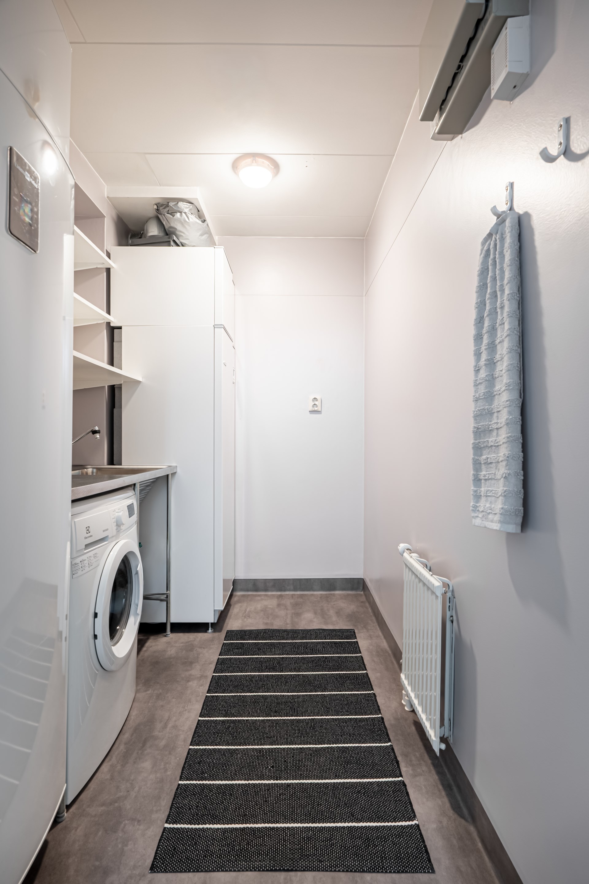 - Tvättstuga: I bostaden har ni en separat tvättstuga som är utrustat med tvättho och tvättmaskin. Här finns även värmepannan och frys.