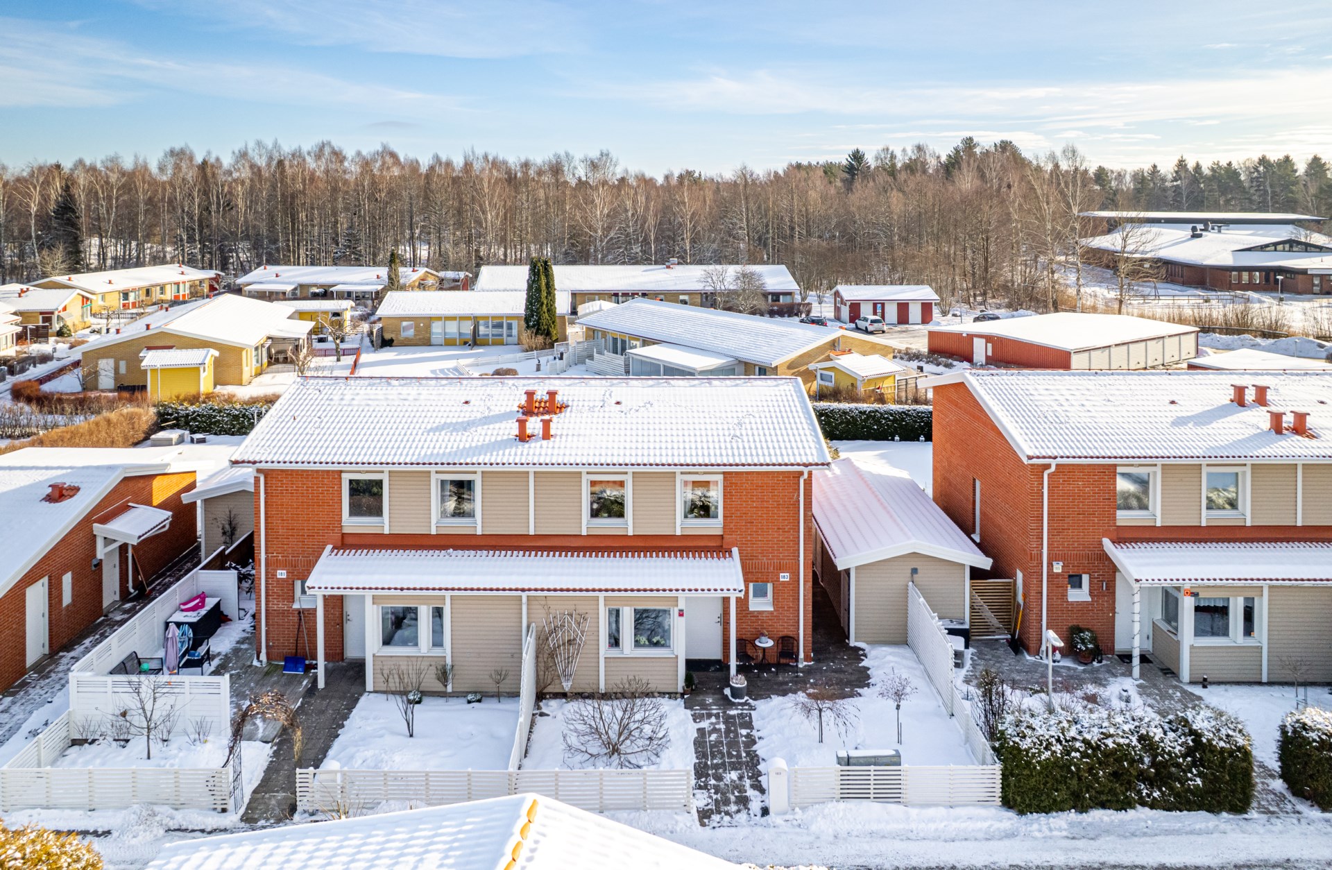 - Övrigt: Varje bostad har nyttjanderätt till en tomt. Buskar och träd får inte växa ut på gångvägen.