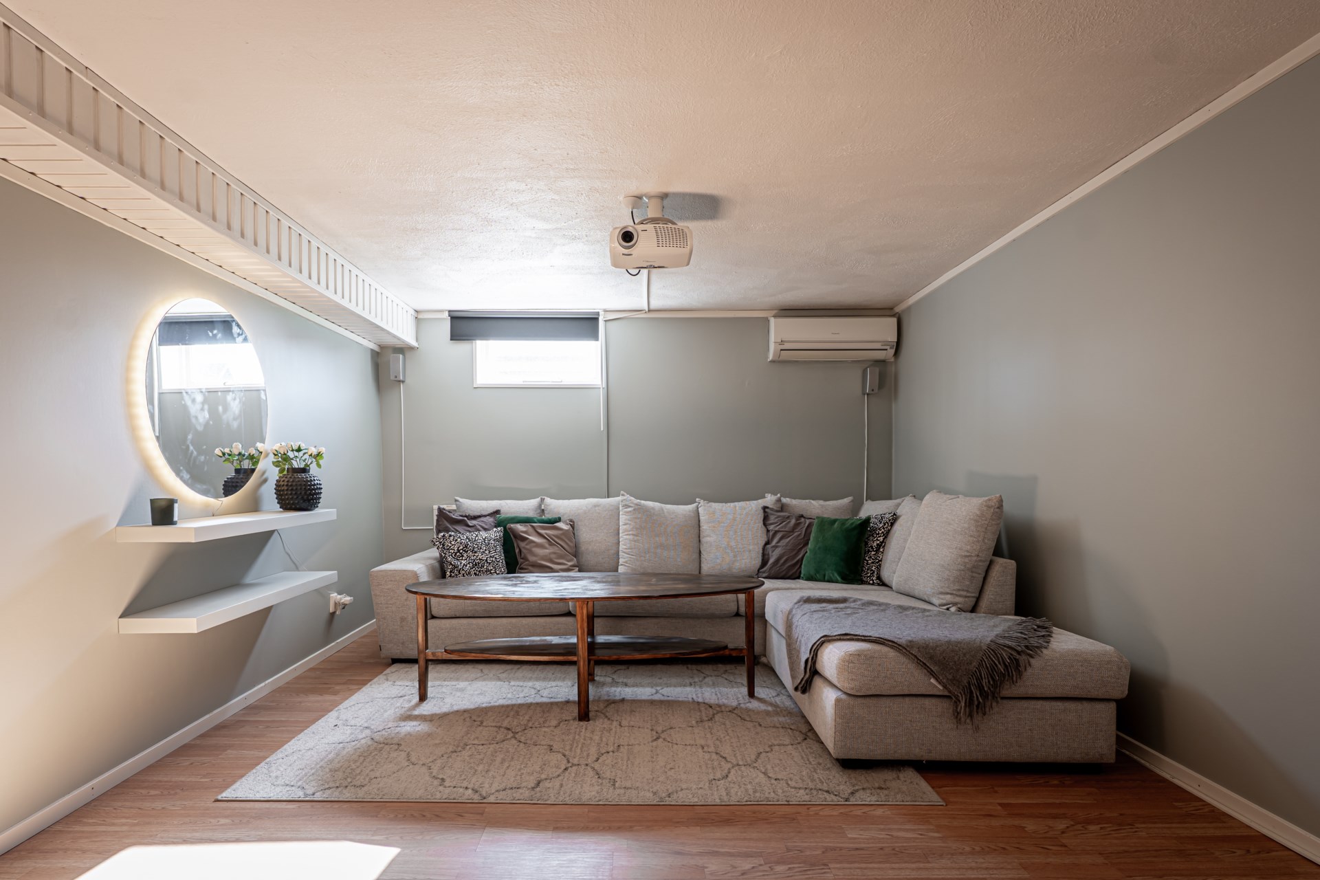 Vem har inte drömt om att ha en egen bar hemma? Här på Smedjevägen blir den drömmen verklighet. När du kliver ner i källaren möts du av ett helt eget rum med en inbjudande bar – den självklara platsen för umgänge, skratt och trevliga kvällar med vänner.