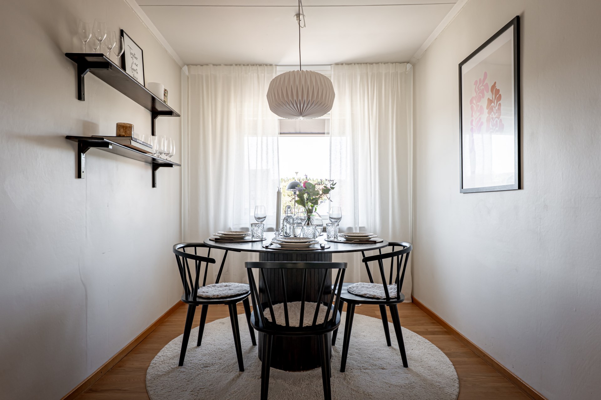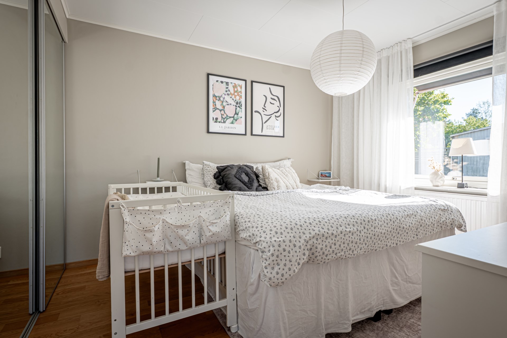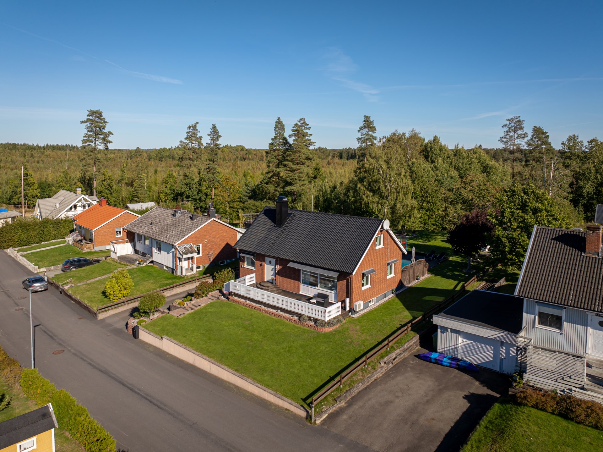 Invändigt möts du av ett hem där de genomgående fina färgvalen skapar en harmonisk känsla. Här finns tre bra sovrum och ett rymligt, helkaklat badrum i modern stil. Huset rymmer även en källare med många möjligheter. Här finns idag en bar som sätter guldkant på helgen, perfekt för att bjuda in vännerna till en kväll med skratt och umgänge.