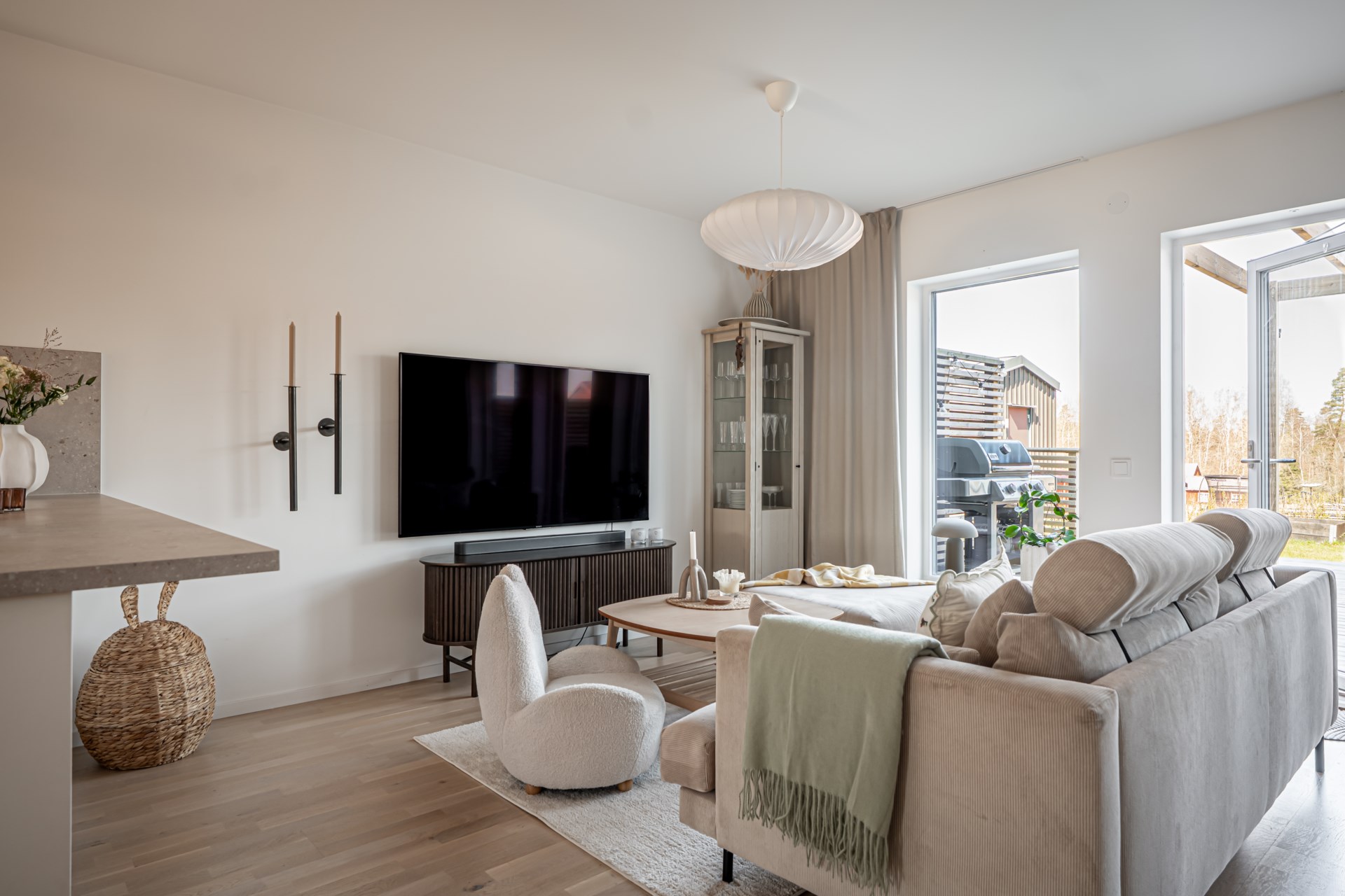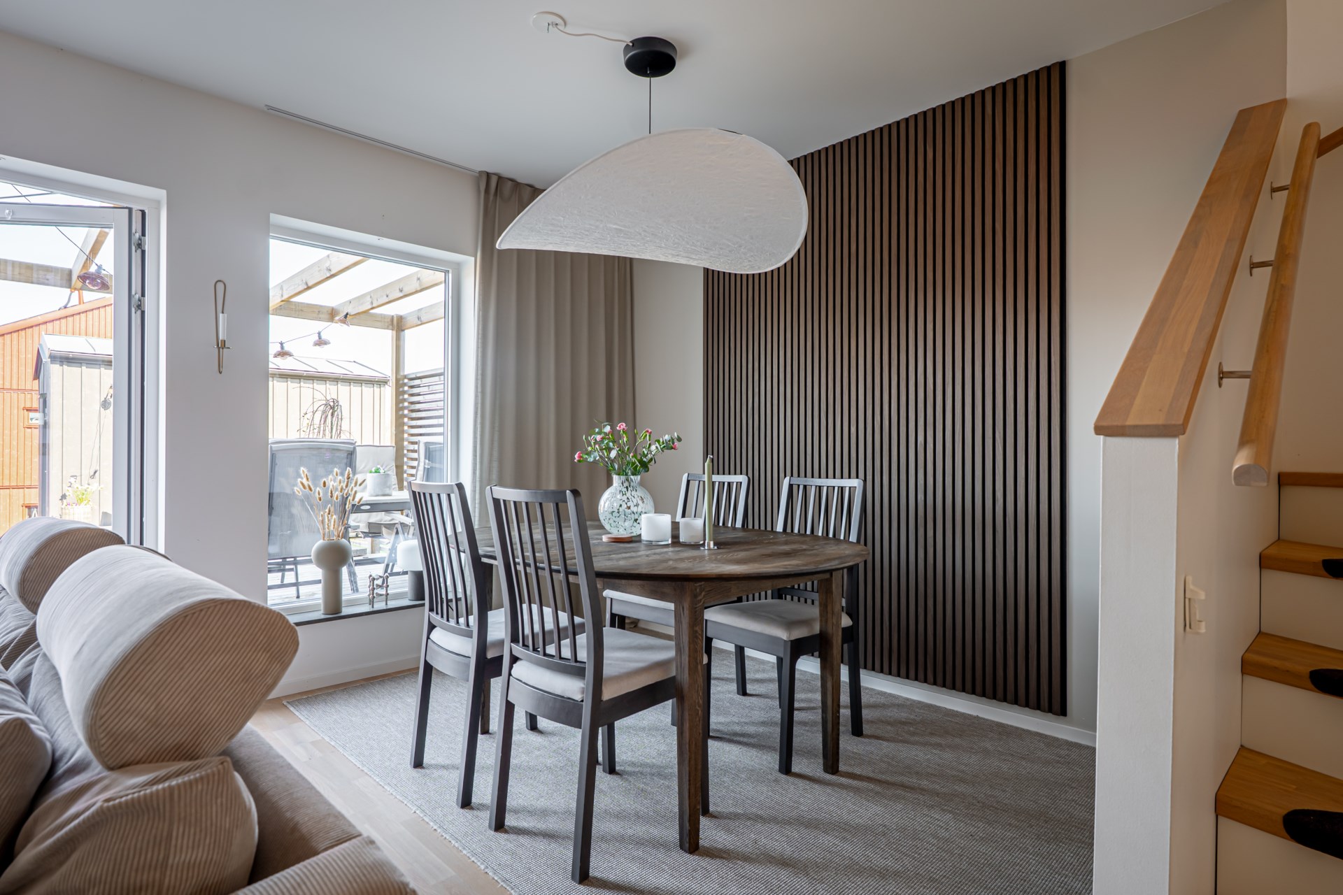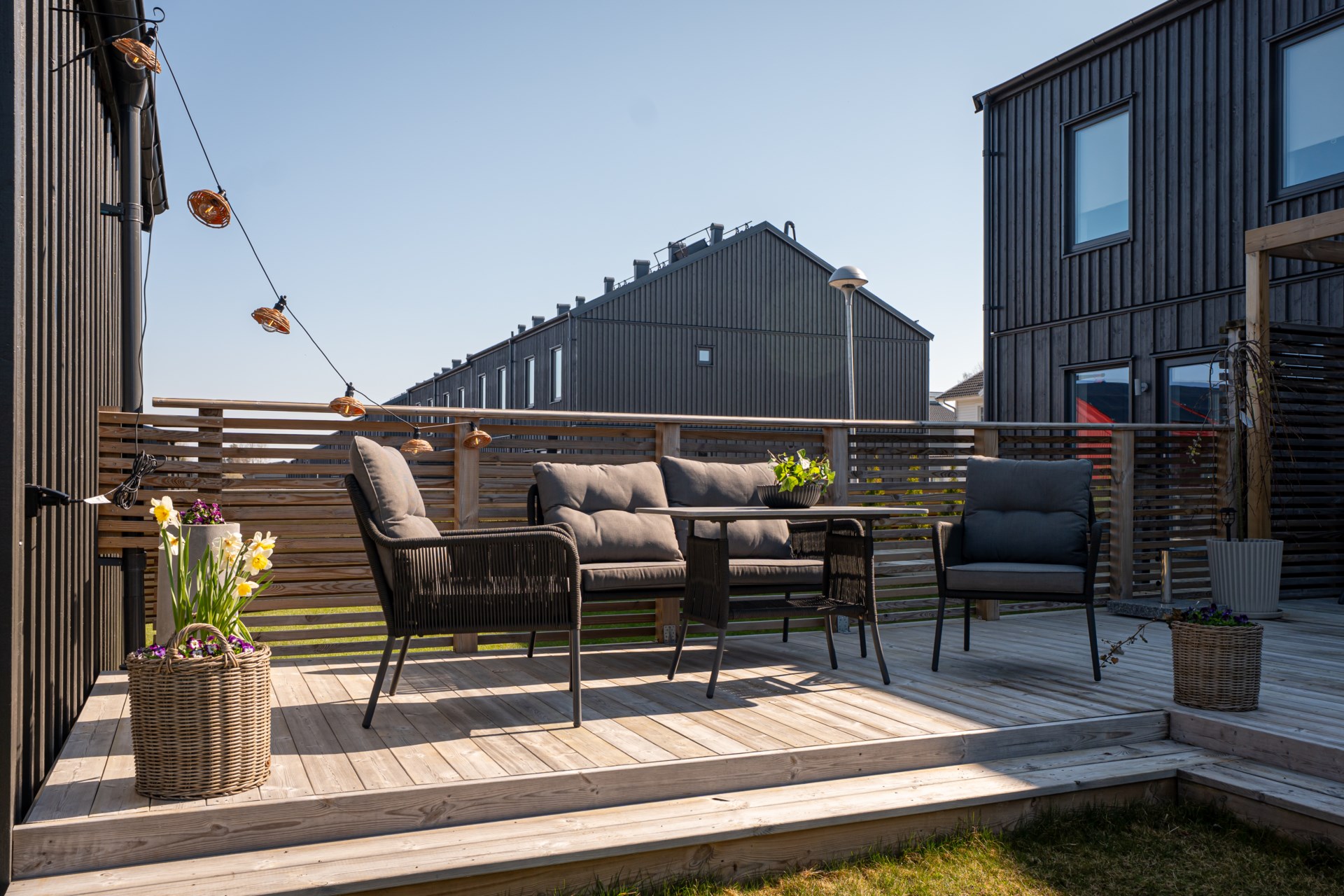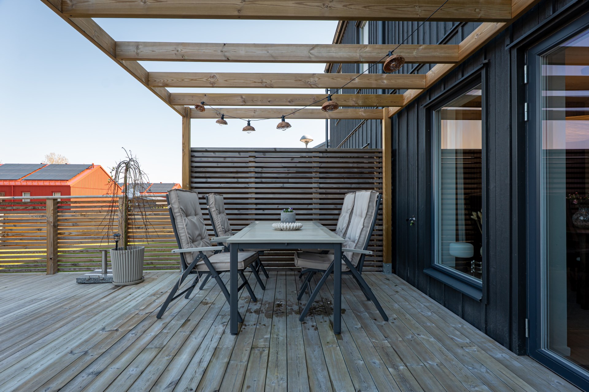 Från vardagsrummet kliver ni ut till altanen på baksidan, en perfekt plats för sommarens grillkvällar, avkoppling och stunder i solen.