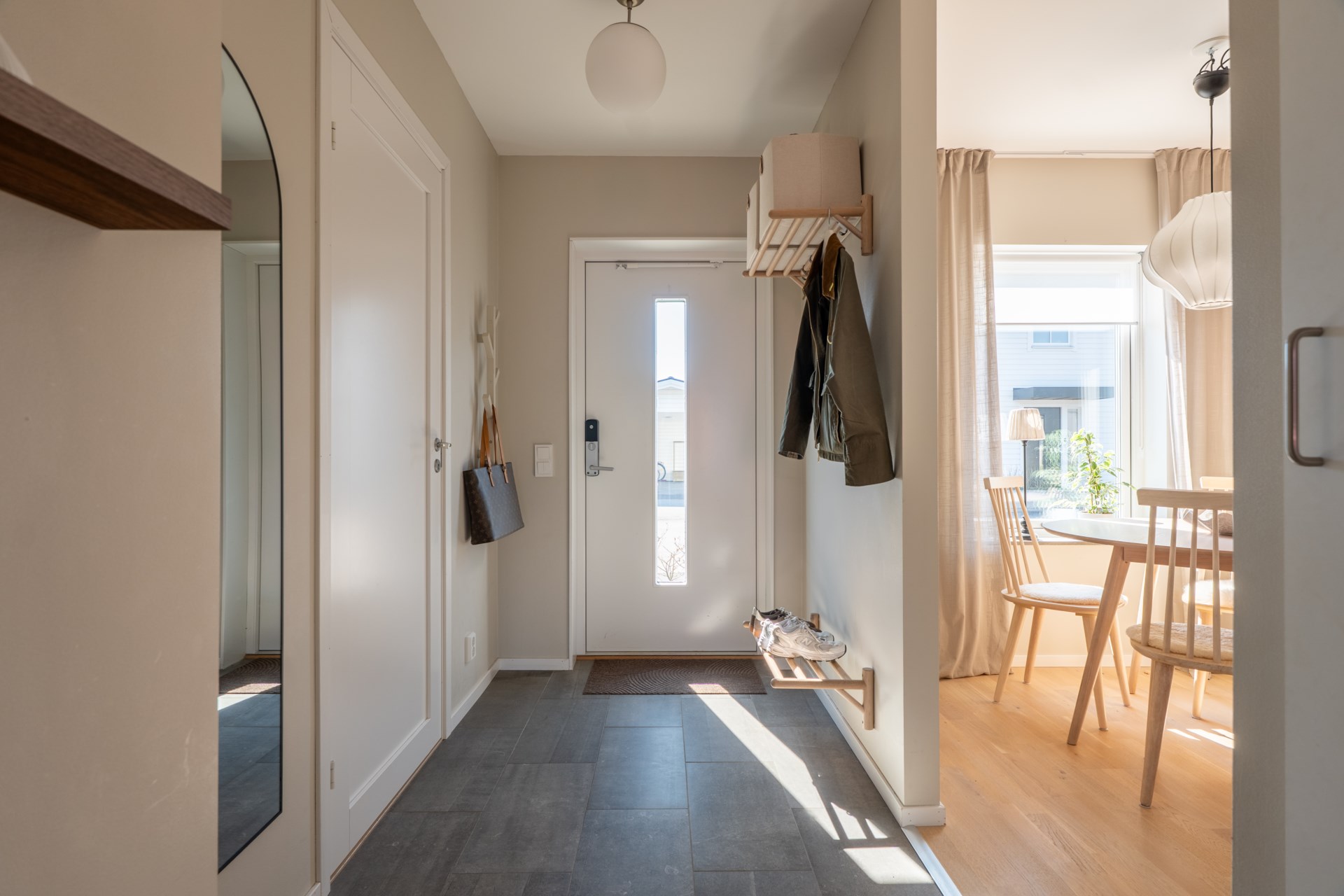 - Allmän beskrivning: Välkomna in i detta fina och välplanerade hem! Redan i hallen möts ni av en praktisk entré med plats för ytterkläder på hatthylla samt en inbyggd garderob som ger extra förvaring.